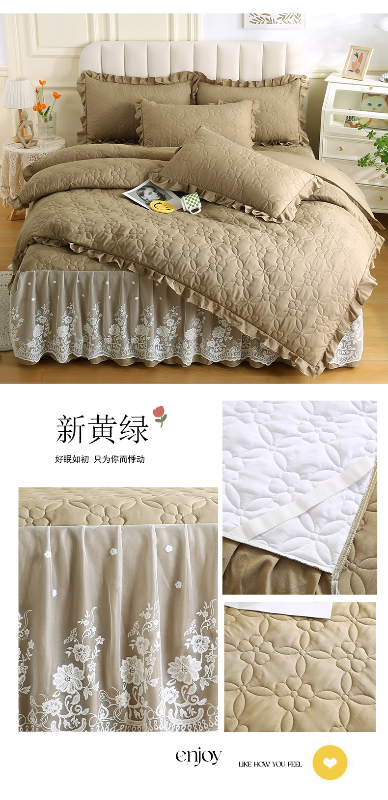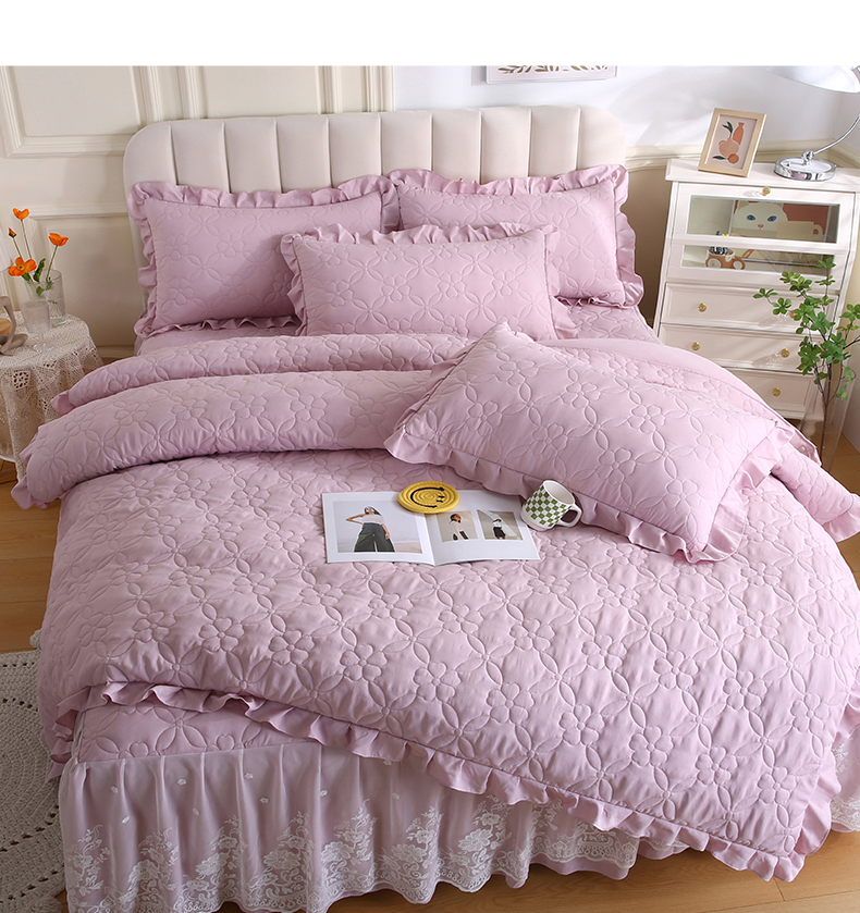 (总)源梦家纺 2024新款幸运草夹棉床裙四件套,纯白,大红,粉色,灰色,兰色,米黄,玉色,豆沙