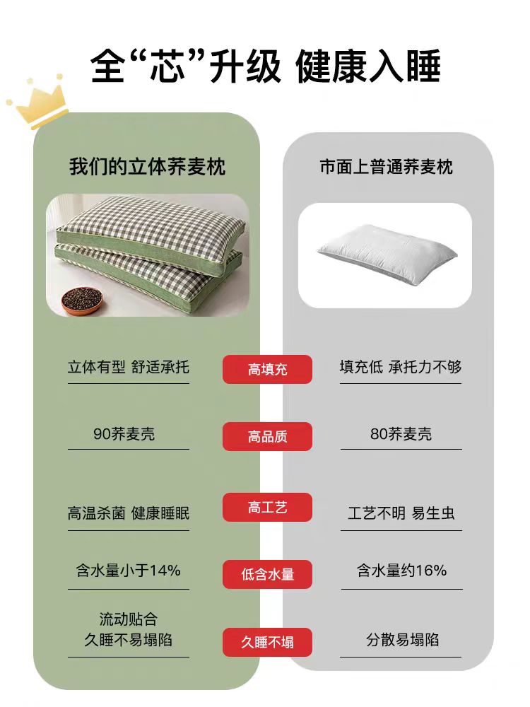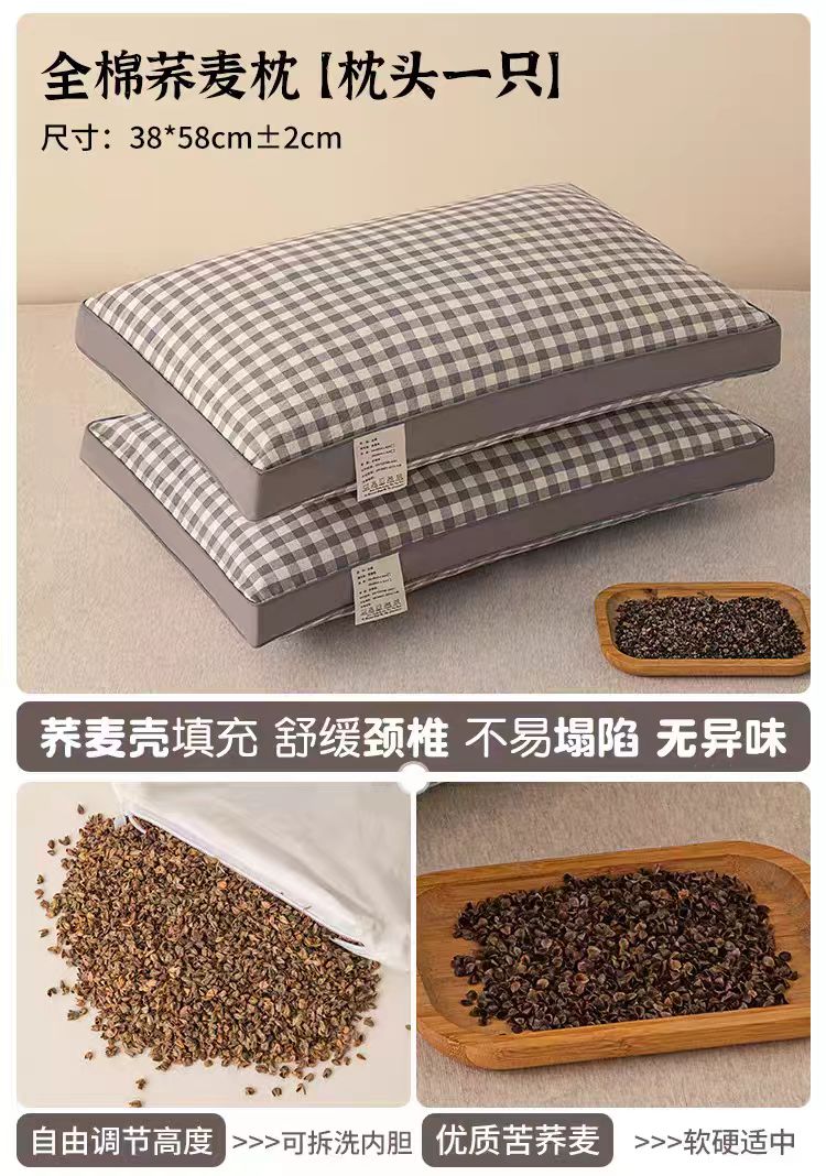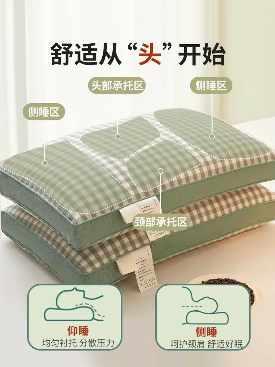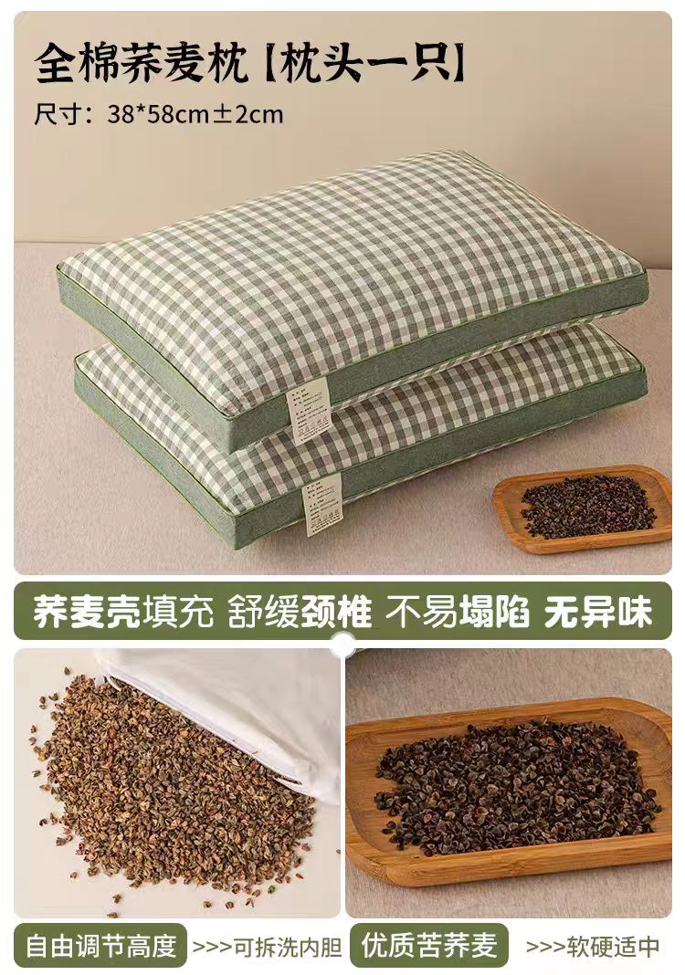 商品名称:云熙枕业 2026年新款全棉立体天然纯荞麦枕头枕芯 绿色