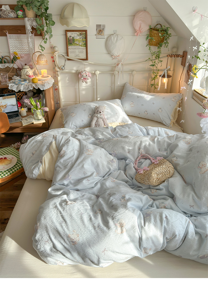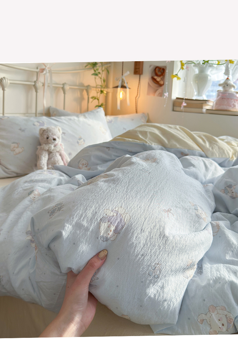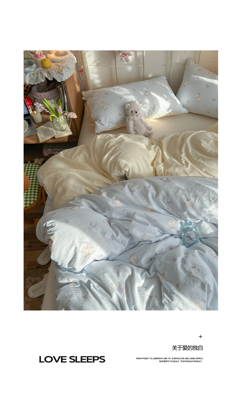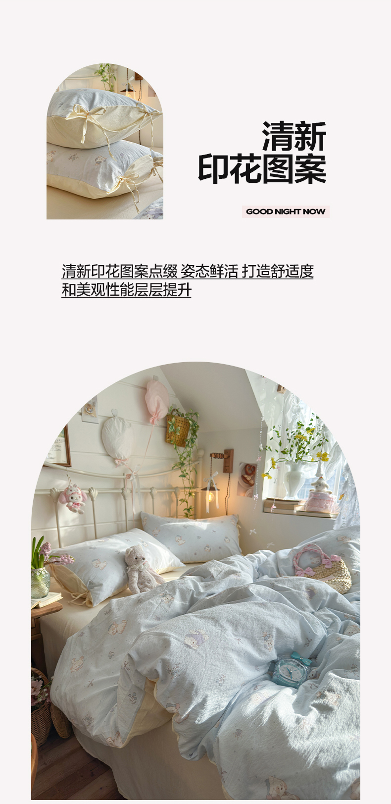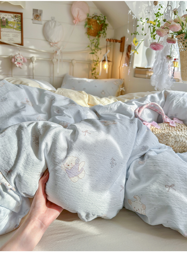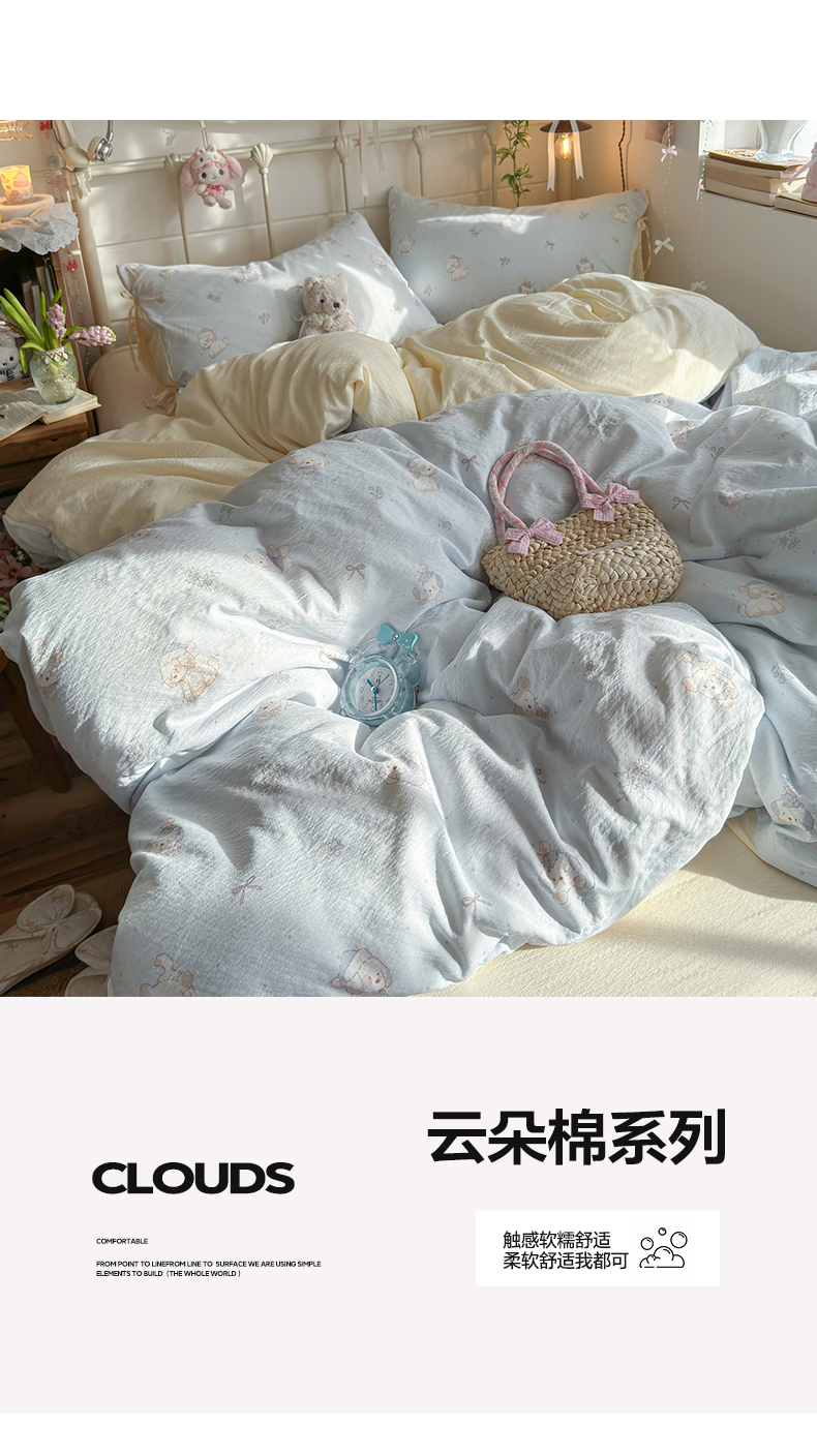 当前位置: 91家纺网 > 商品网购 > 床品套件 > 四件套 > 双层纱四件套 > 优选 2026新款小清新直播热卖款云感双层纱木棉四件套系列(小红书热款推荐) 幸运狗狗