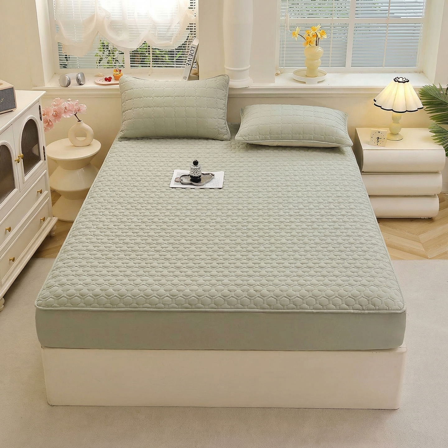 • 91家纺网 家纺一手货源 找家纺 彩亿家纺 2026新款A类古法水洗仿棉夹棉床笠三件套全包防滑床垫保护套-水立方 水立方-苹果绿