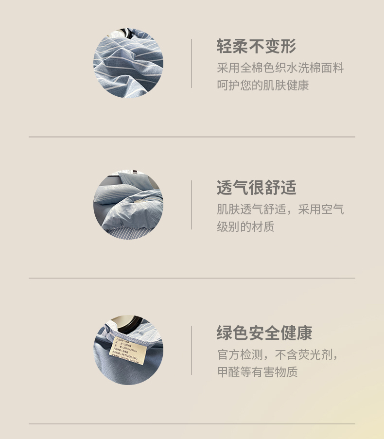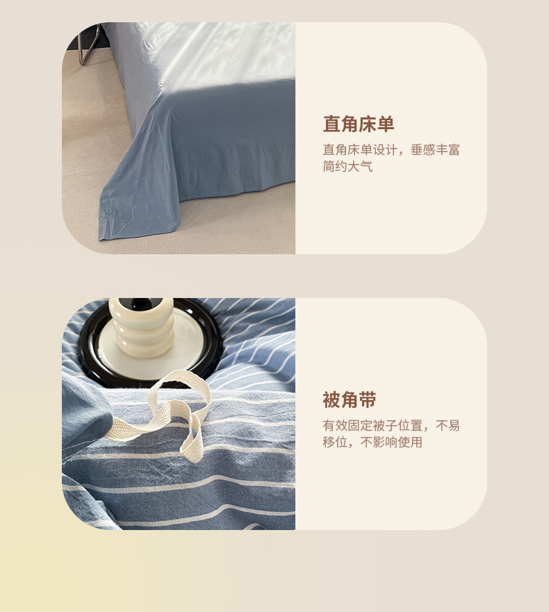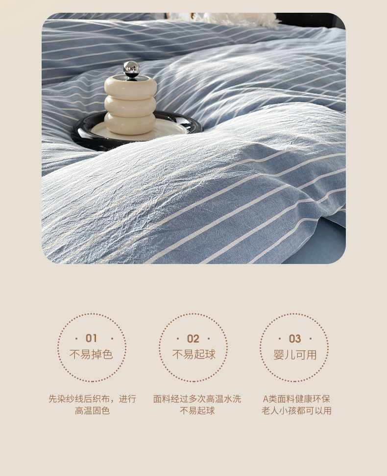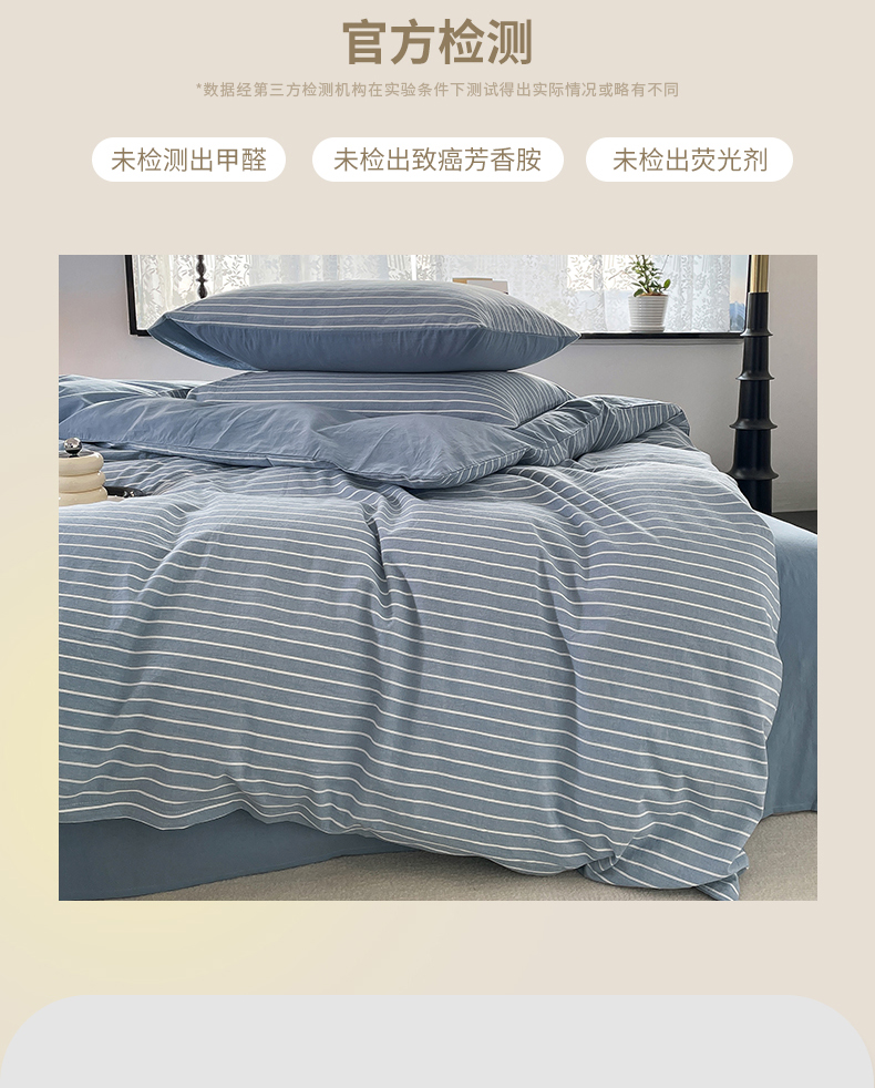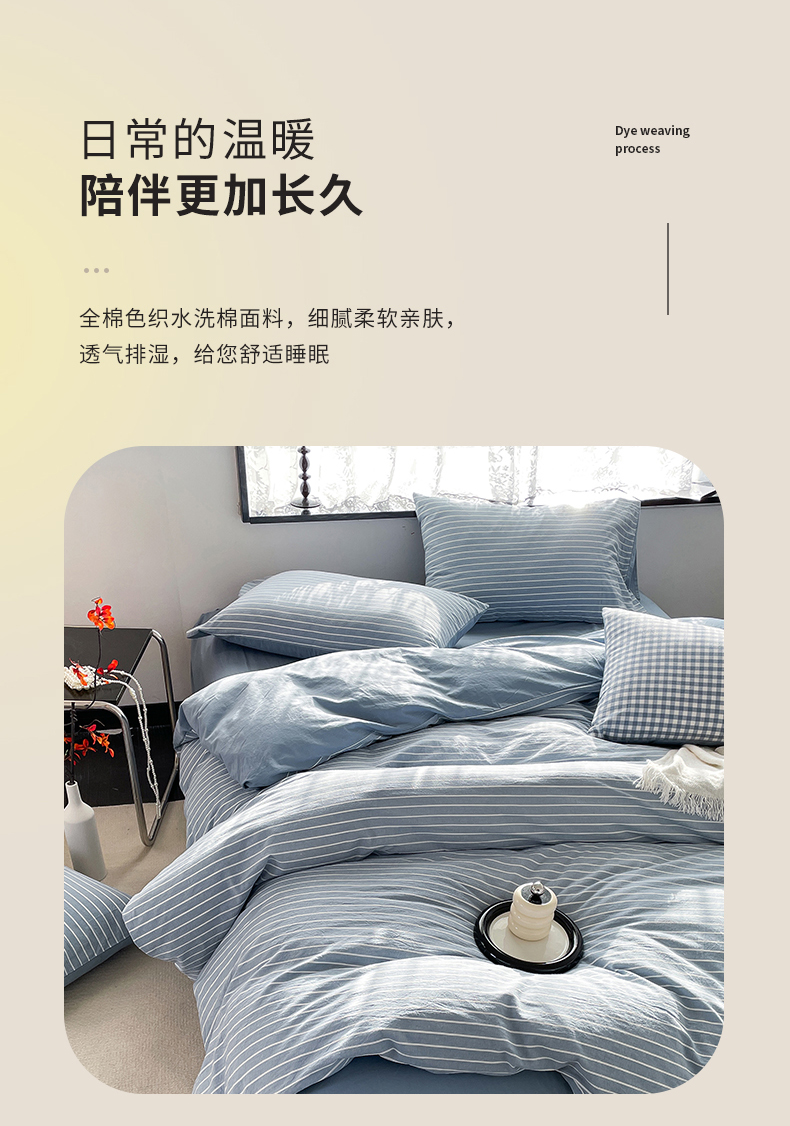 当前位置: 91家纺网 > 商品网购 > 床品套件 > 四件套 > 全棉普通四件套 > 春皖家纺 2026新款色织AB版水洗棉三件套四件套单品系列(四件套风格一) 素雅-蓝条