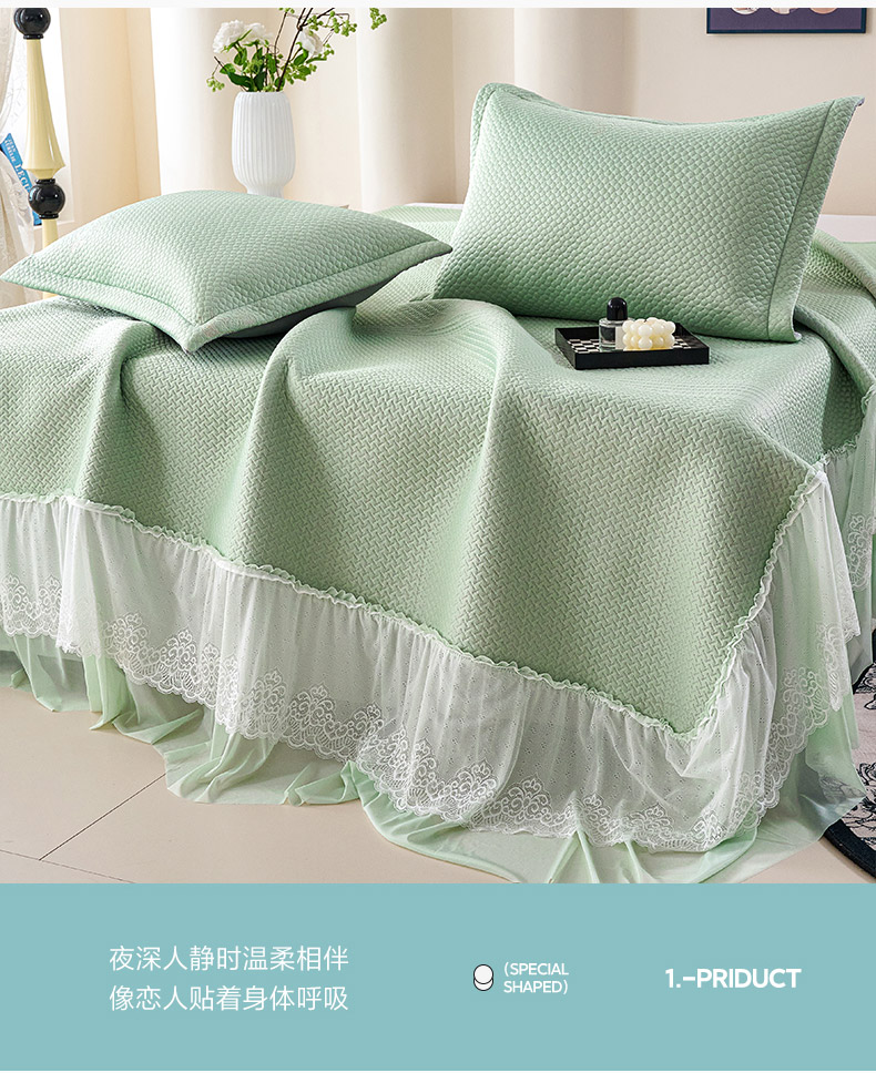 (总)青雅席业 2025新款舒适亲肤凉感冰豆豆网纱花边凉席,粉色,灰色,咖色,蓝色,绿色
