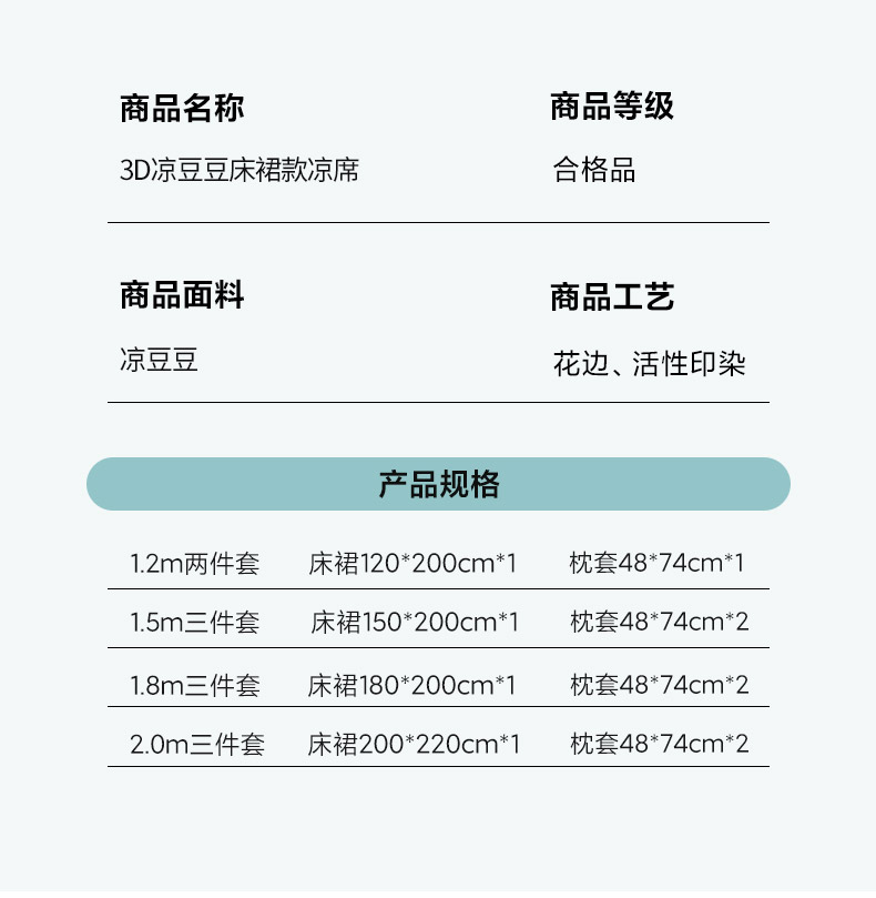 商品名称:青雅席业 2026新款A类凉感豆豆席凉席席子-床裙款 床裙款-飘摇-绿