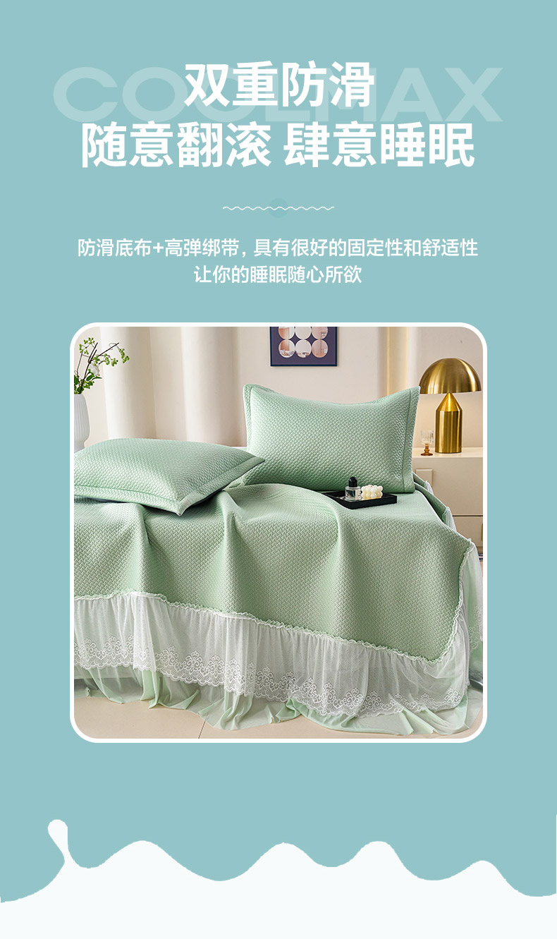 (总)青雅席业 2026年新款A类提花工艺(提花双面)凉感豆豆席床裙款,床裙款-雾里看花-粉,床裙款-雾里看花-灰,床裙款-雾里看花-香槟,床裙款-雾里看花-蓝,床裙款-雾里看花-绿