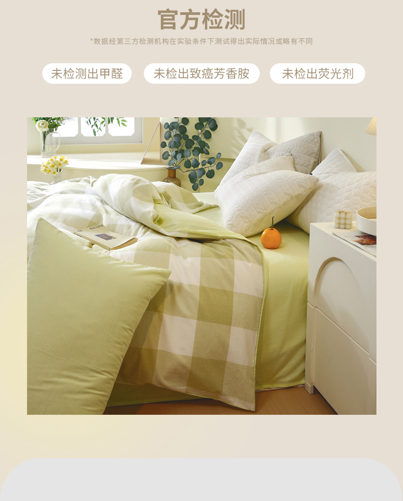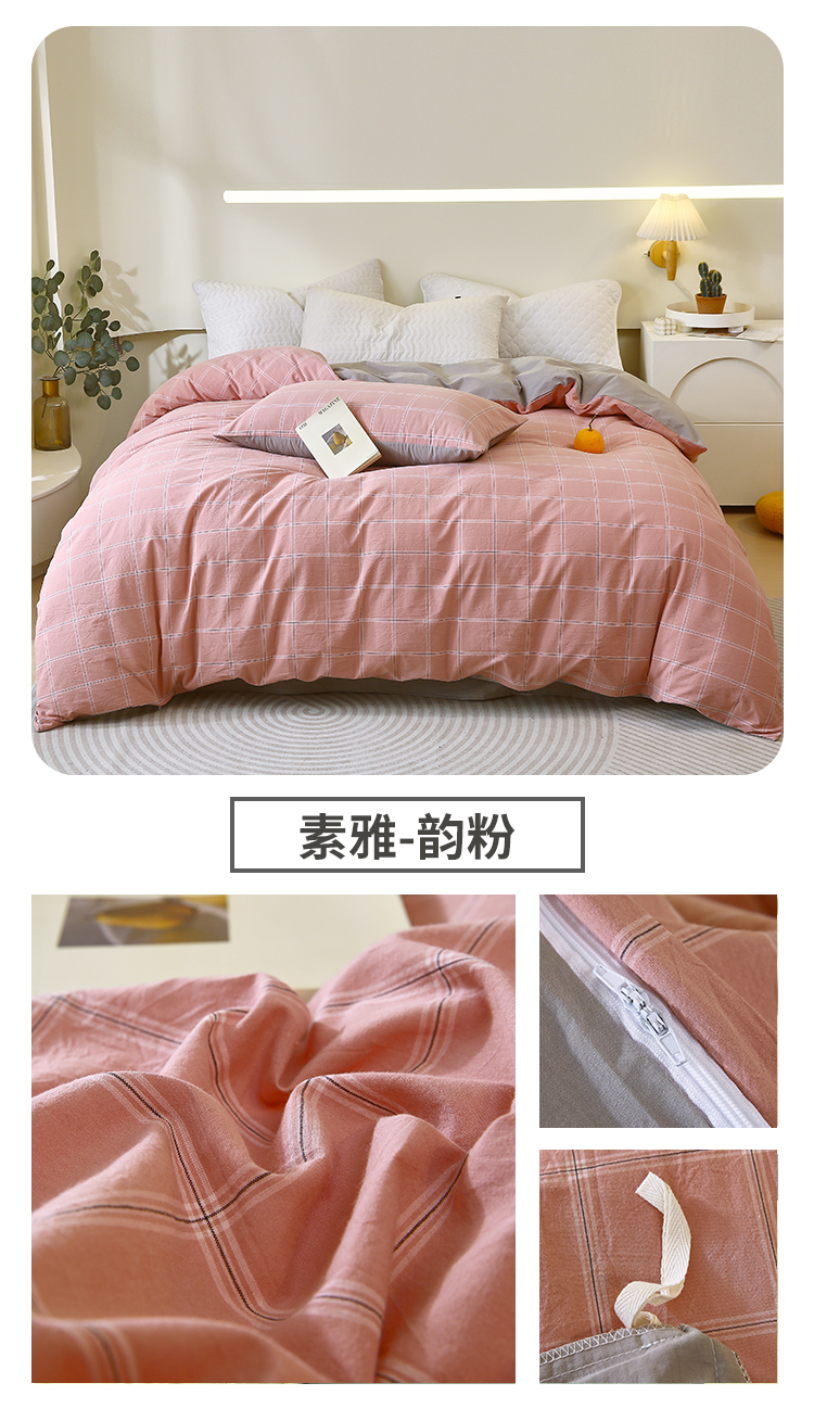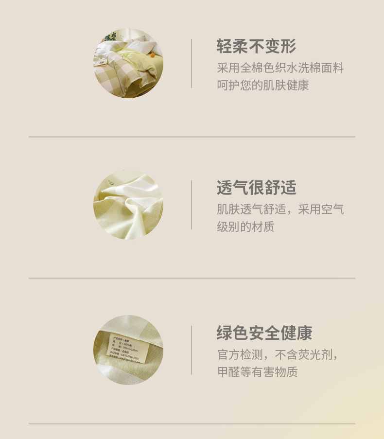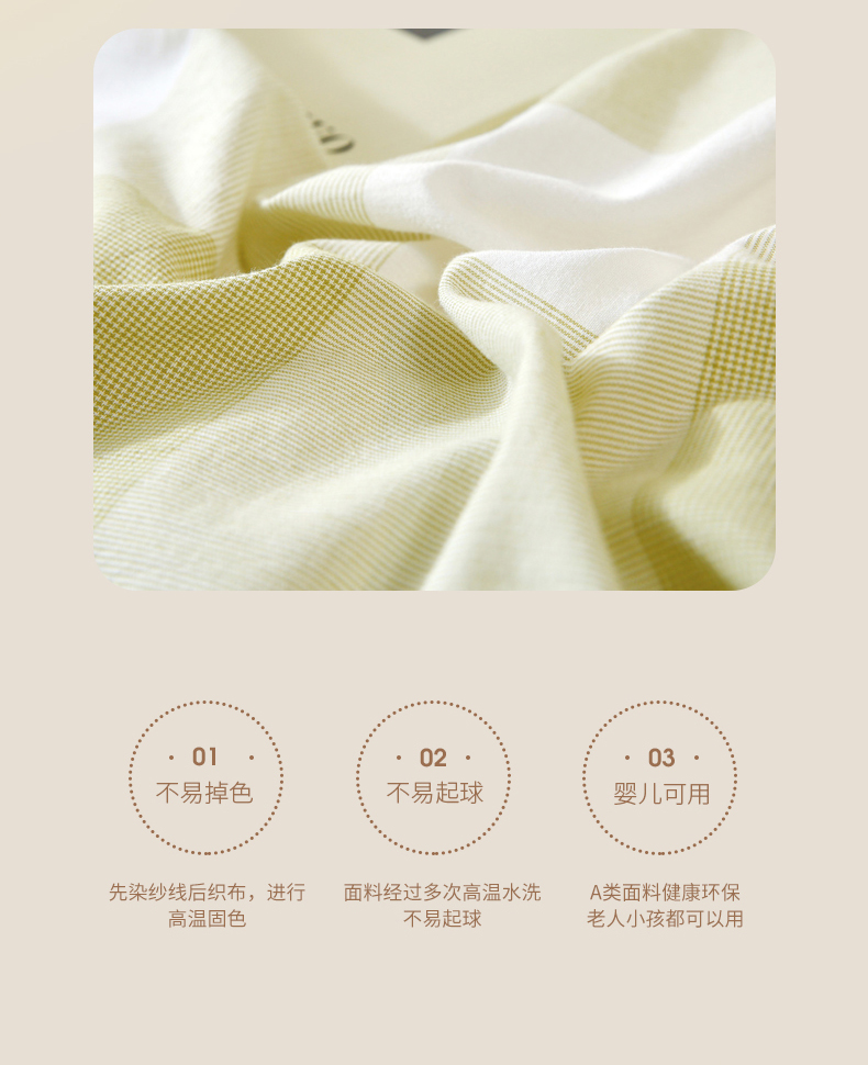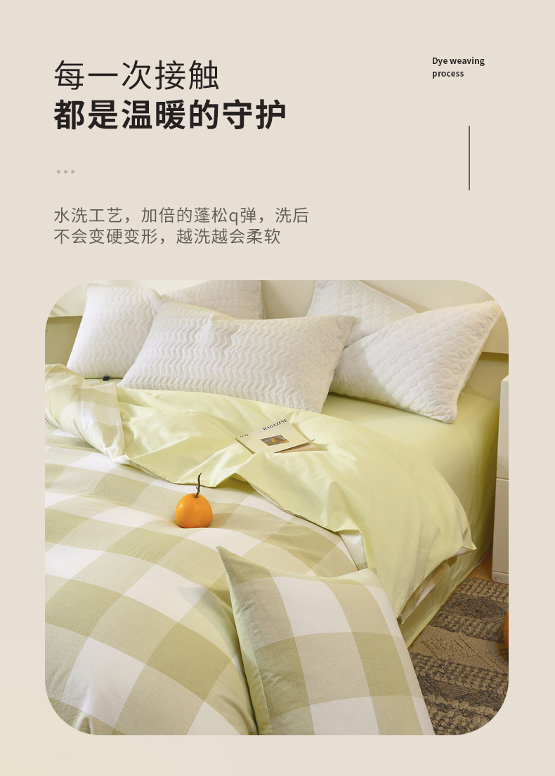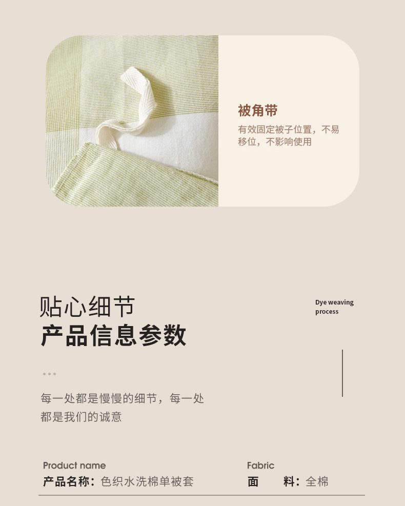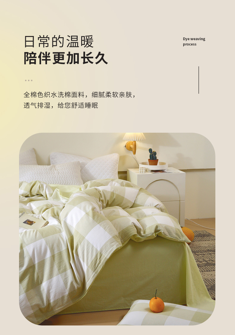 商品名称:春皖家纺 2026新款色织AB版水洗棉三件套四件套单品系列(单被套风格一) 素雅-芳绿