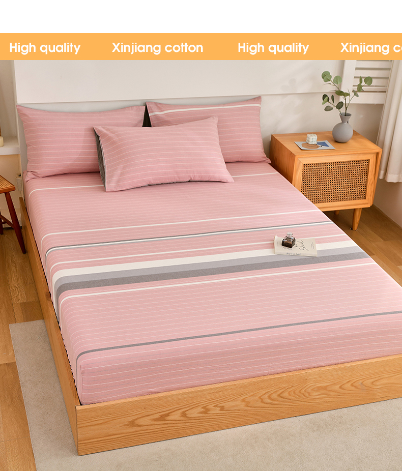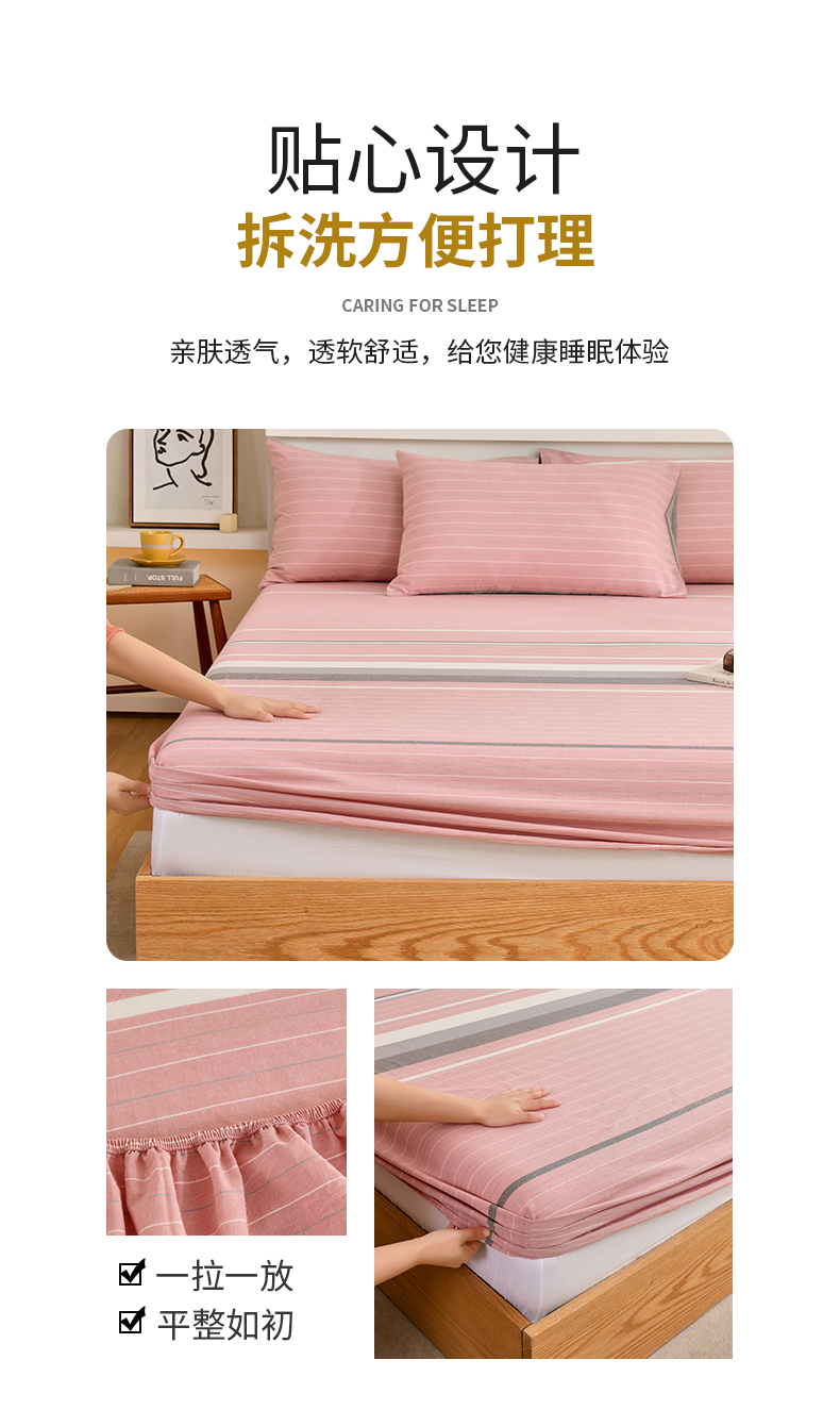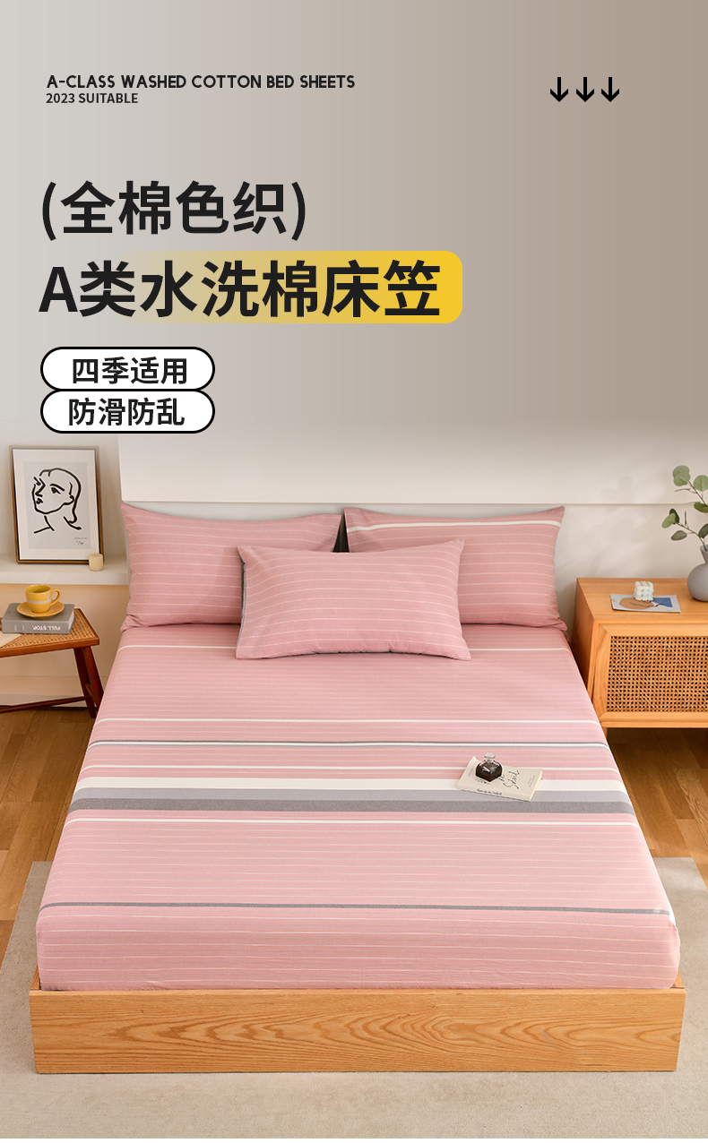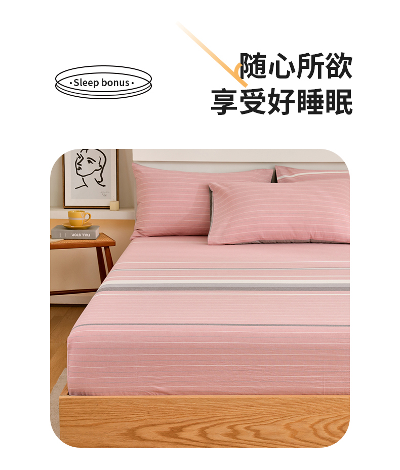 春皖家纺 2026新款色织AB版水洗棉三件套四件套单品系列(单床笠-A版风格一) 素雅-蔻粉