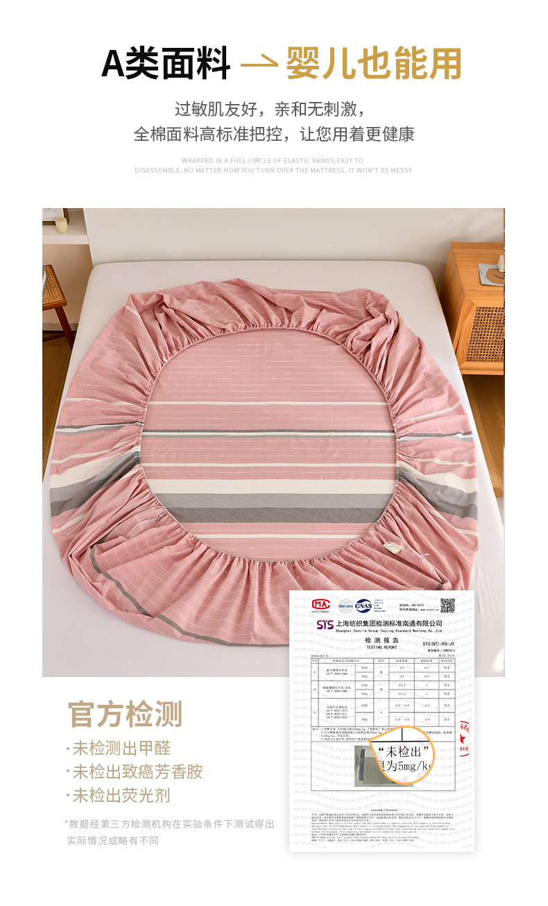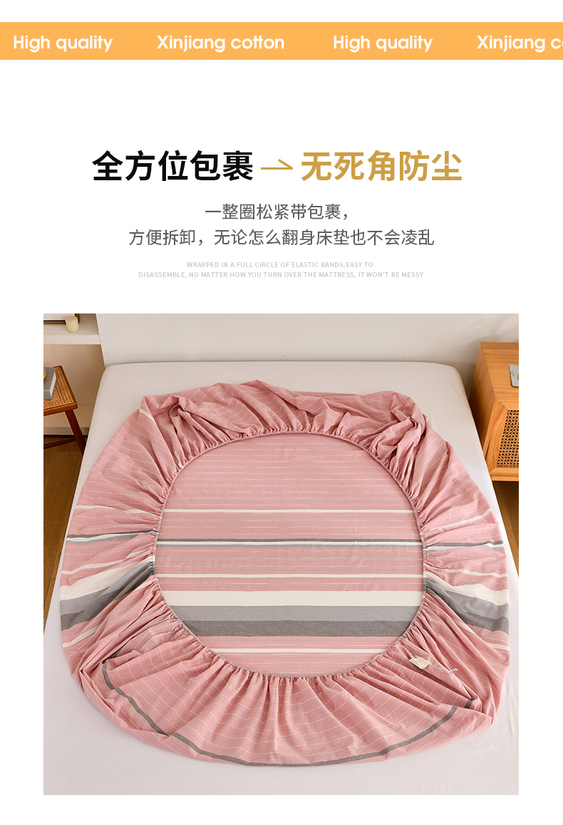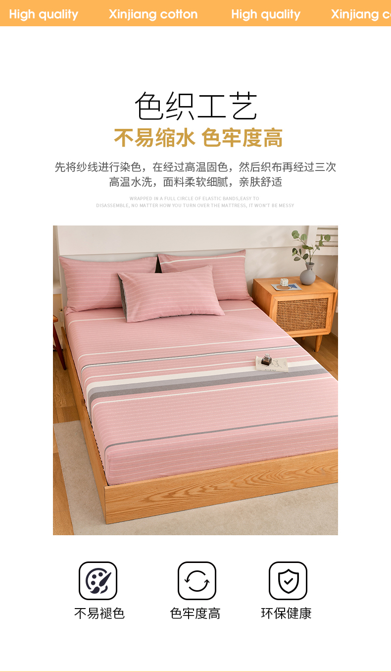 春皖家纺 2026新款色织AB版水洗棉三件套四件套单品系列(单床笠-A版风格一) 素雅-蔻粉