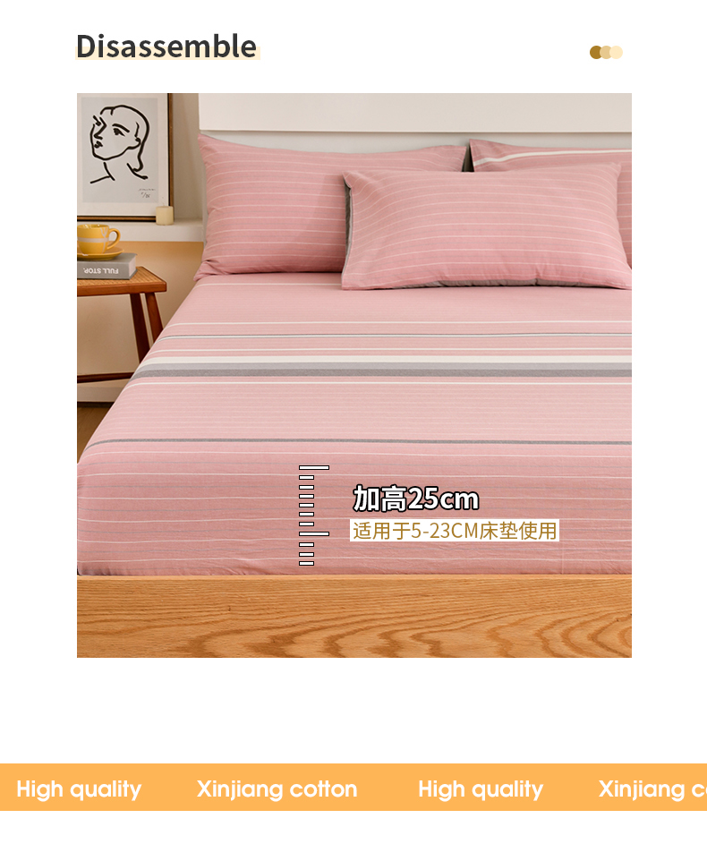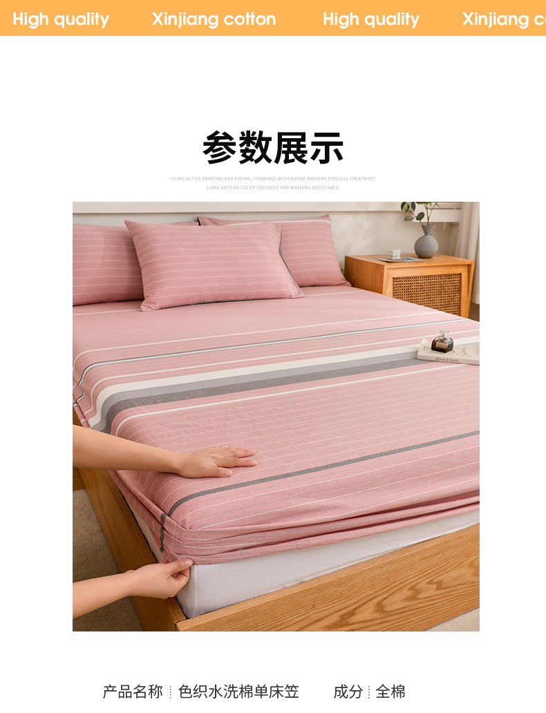 商品名称:春皖家纺 2026新款色织AB版水洗棉三件套四件套单品系列(单床笠-A版风格一) 素雅-蔻粉