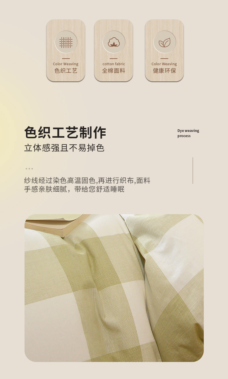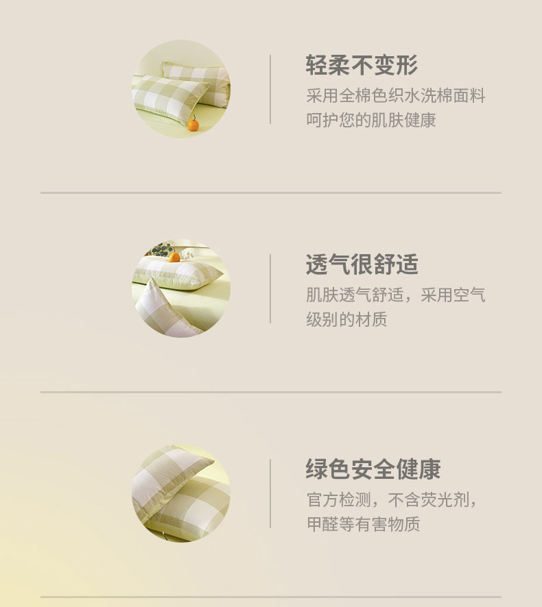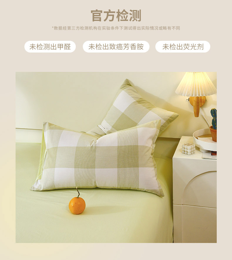 商品名称:春皖家纺 2026新款色织AB版水洗棉三件套四件套单品系列(单枕套风格一) 素雅-芳绿