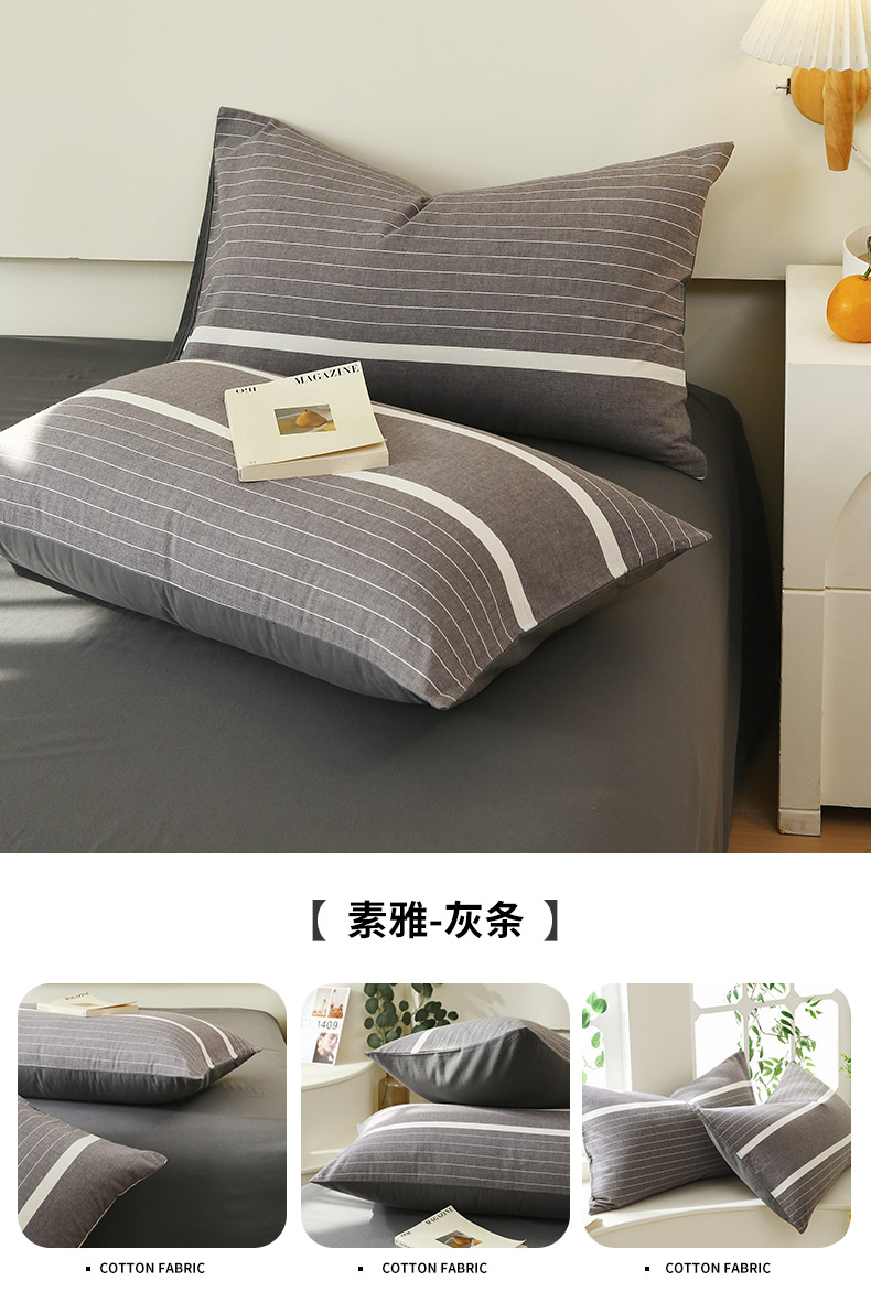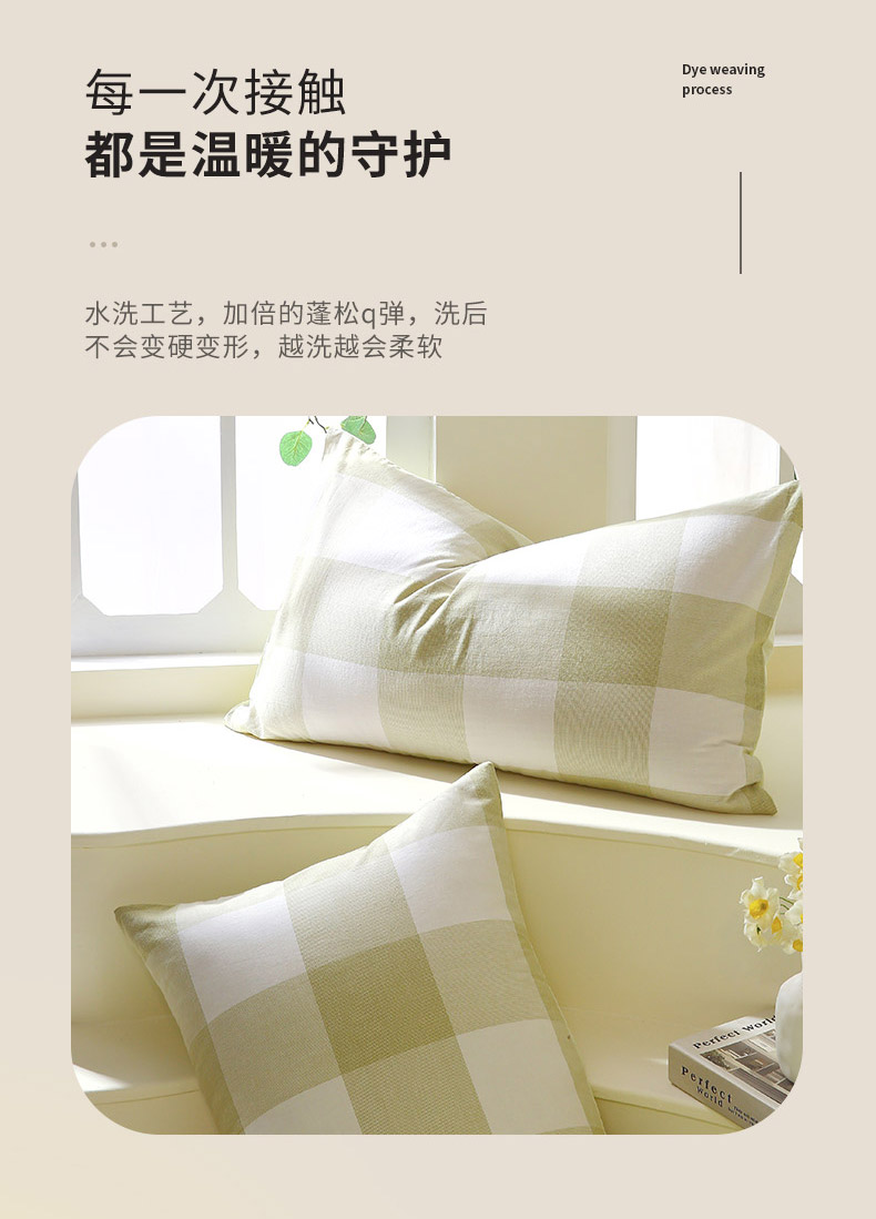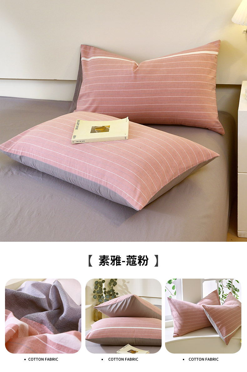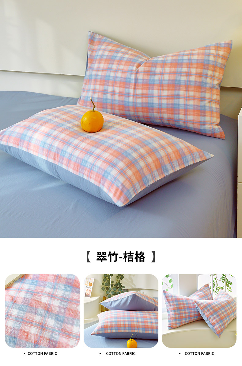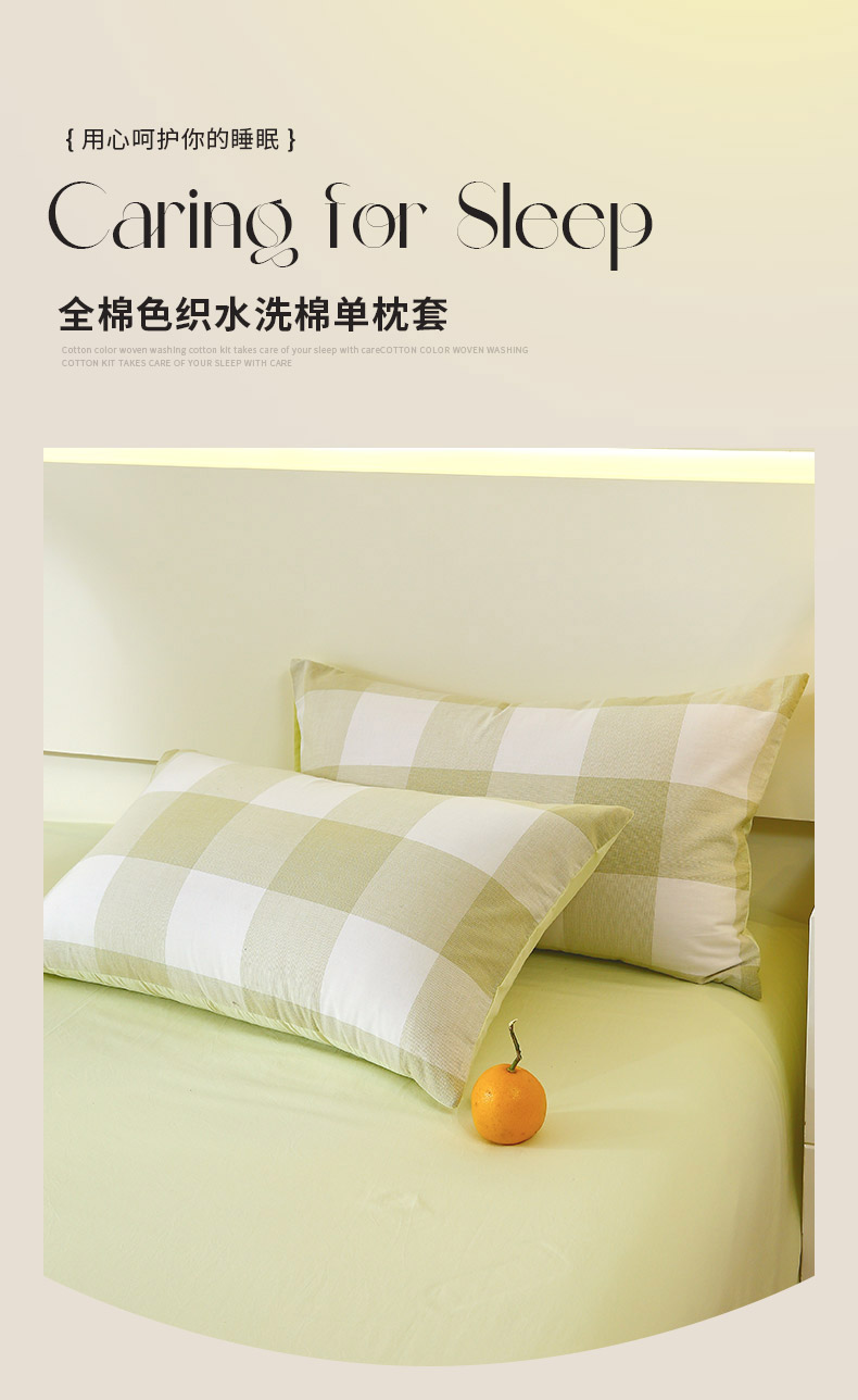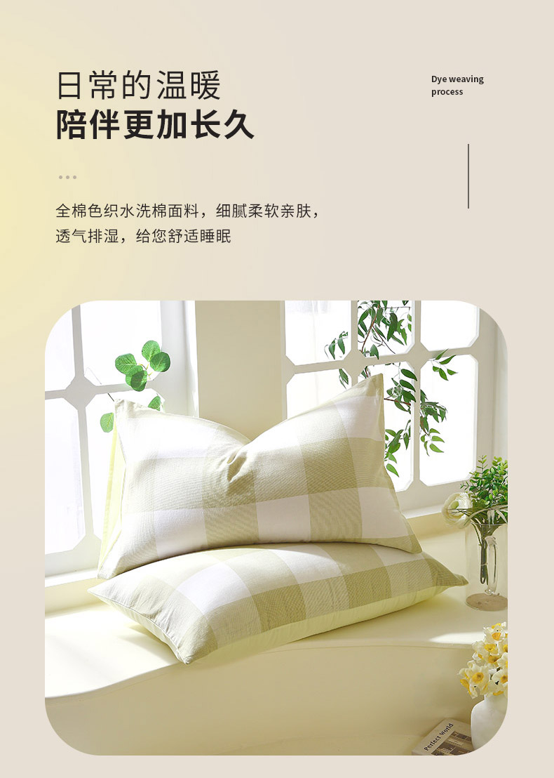 春皖家纺 2026新款色织AB版水洗棉三件套四件套单品系列(单枕套风格一) 素雅-芳绿