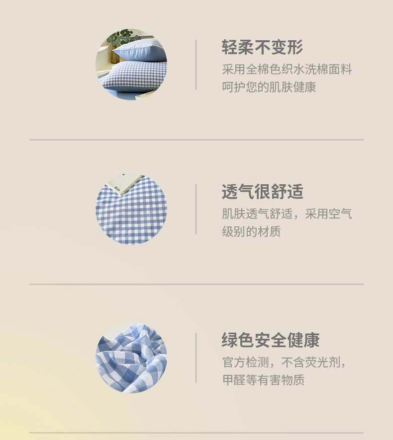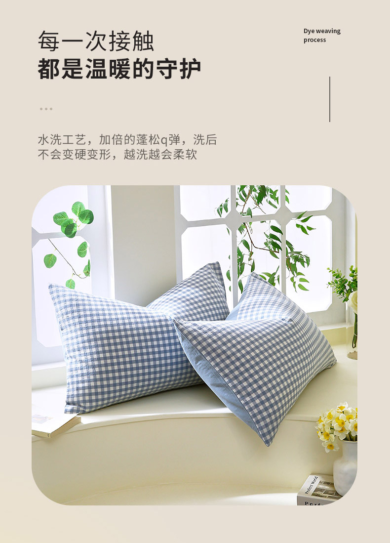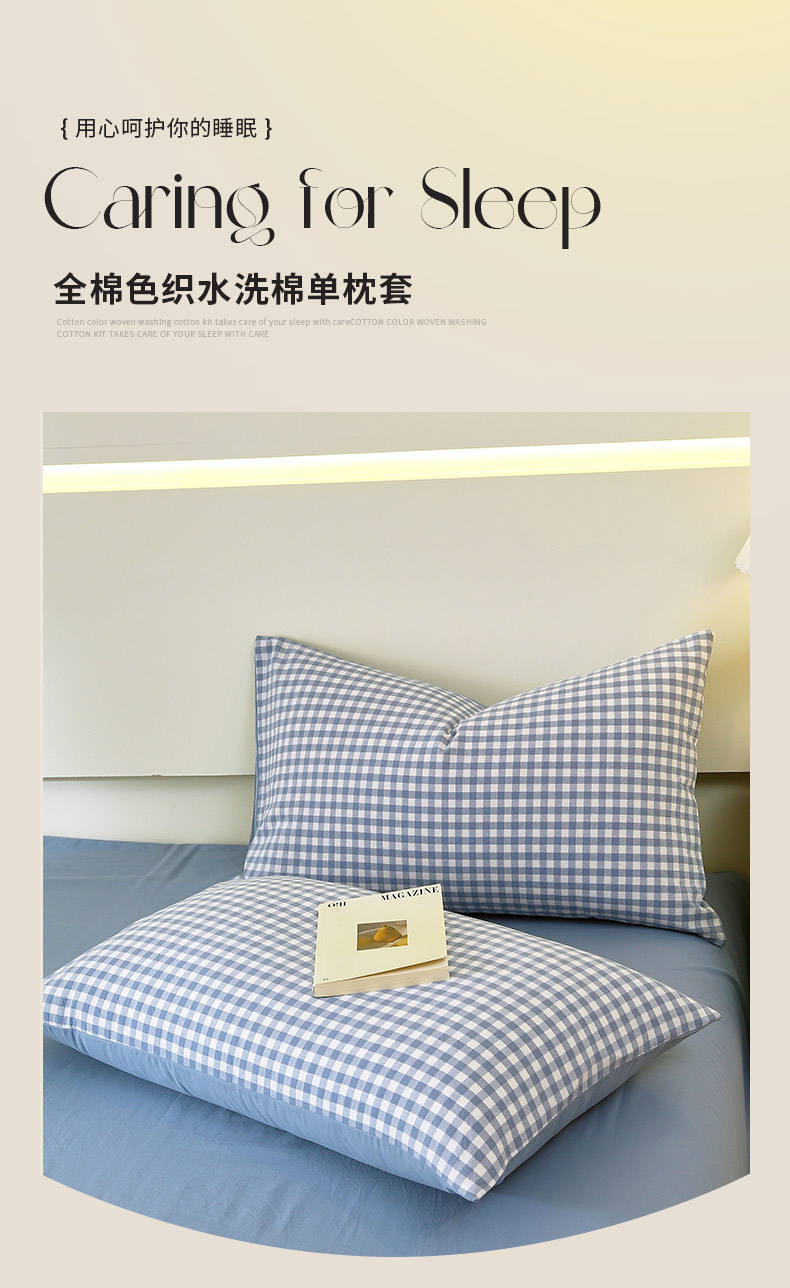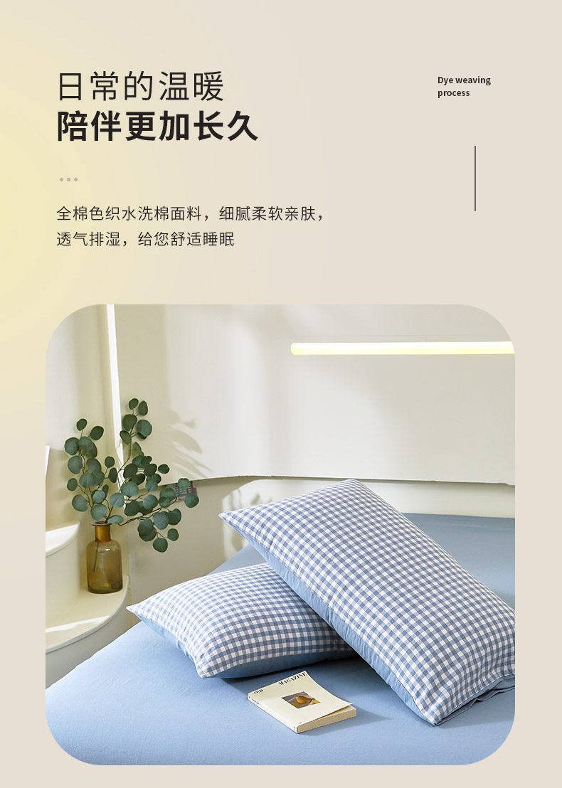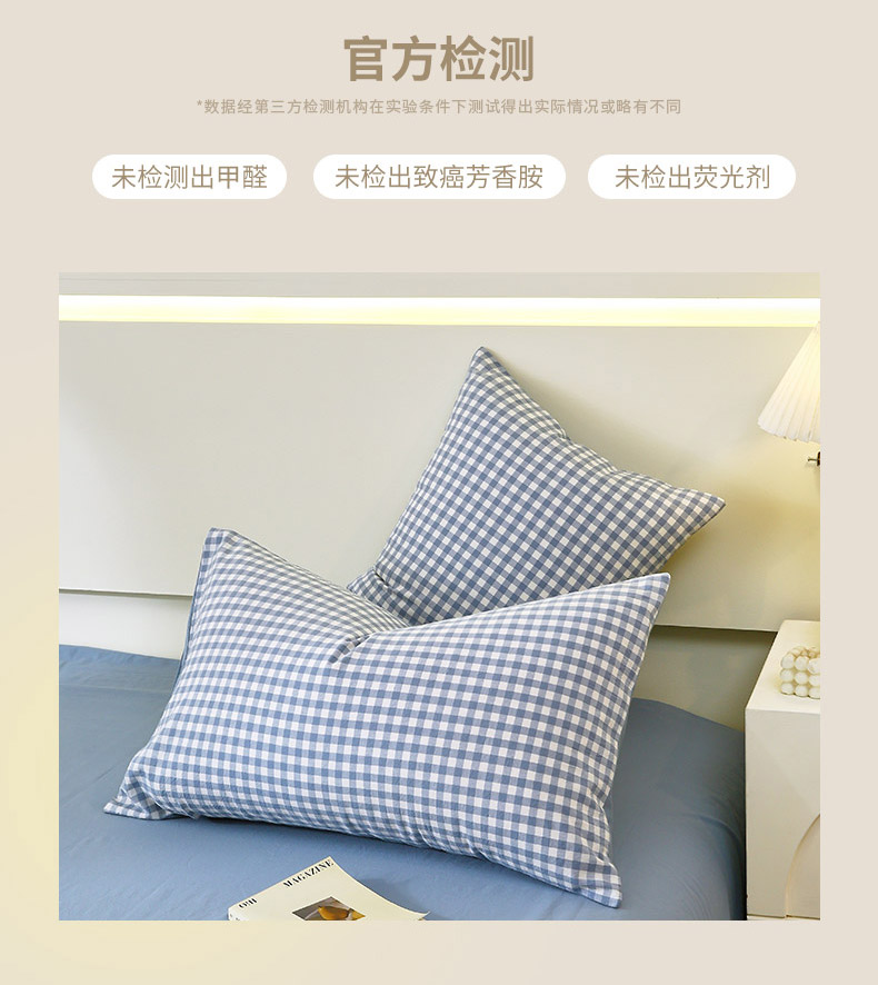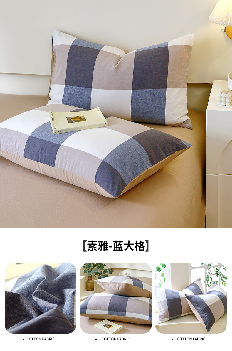 春皖家纺 2026新款色织AB版水洗棉三件套四件套单品系列(单枕套风格一) 素雅-蓝小格