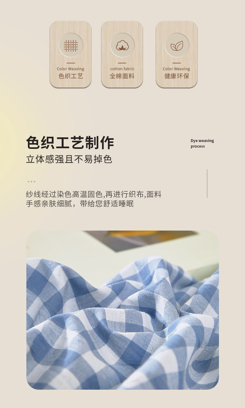 商品名称:春皖家纺 2026新款色织AB版水洗棉三件套四件套单品系列(单枕套风格一) 素雅-蓝小格