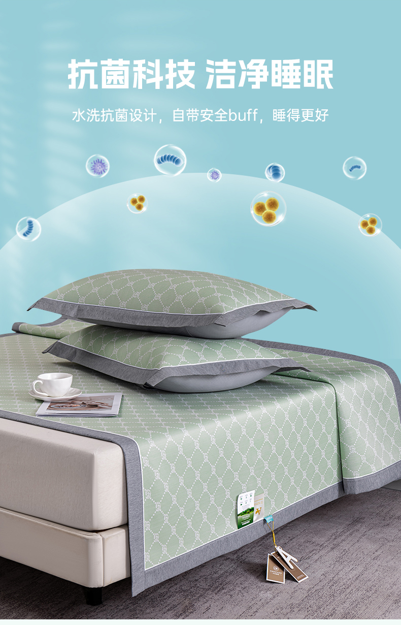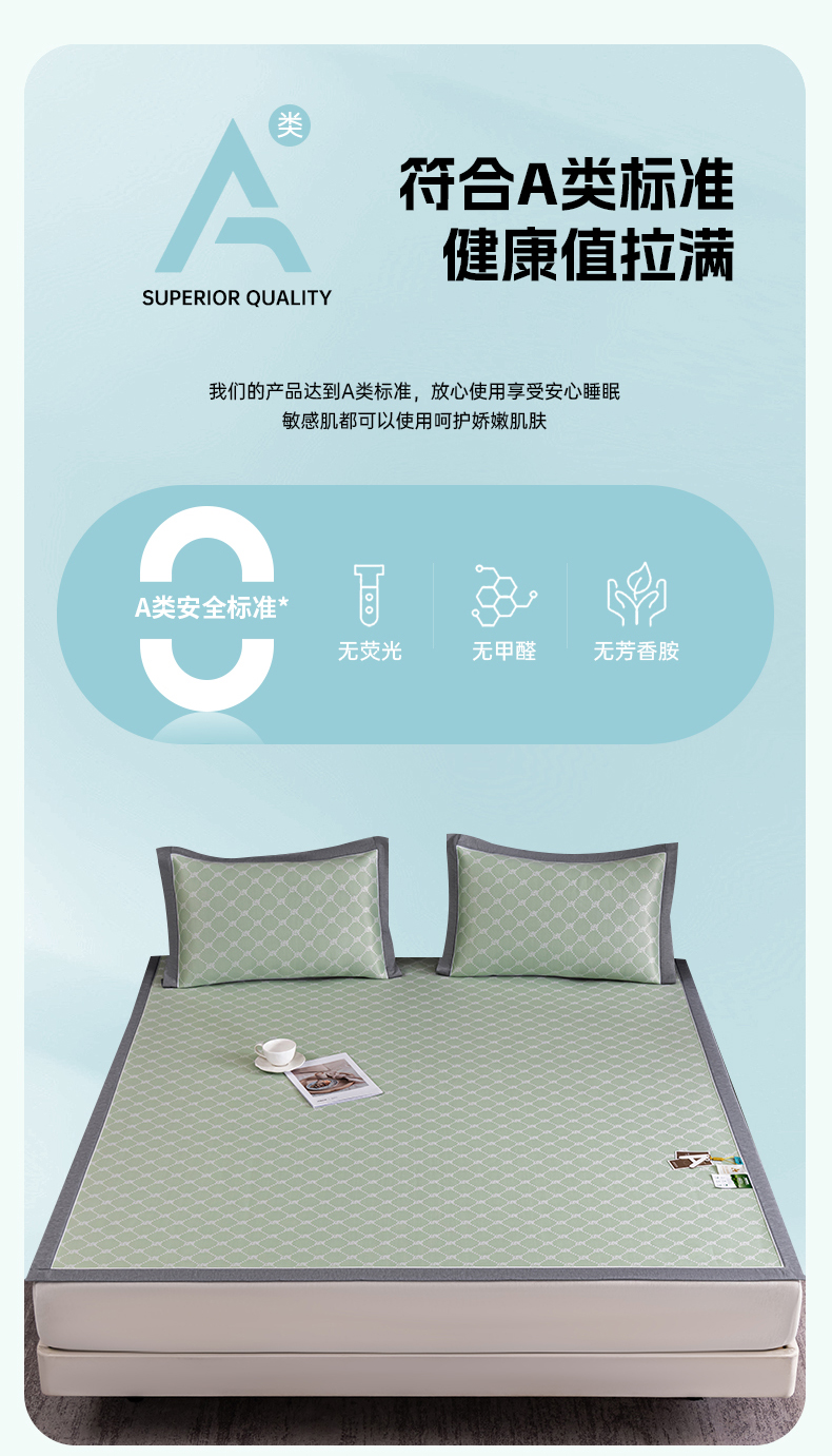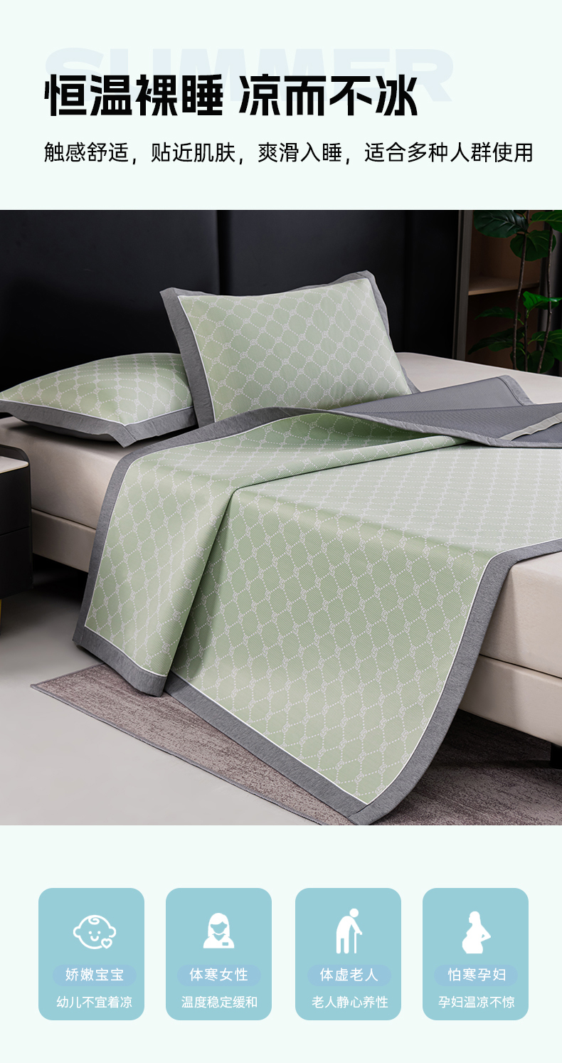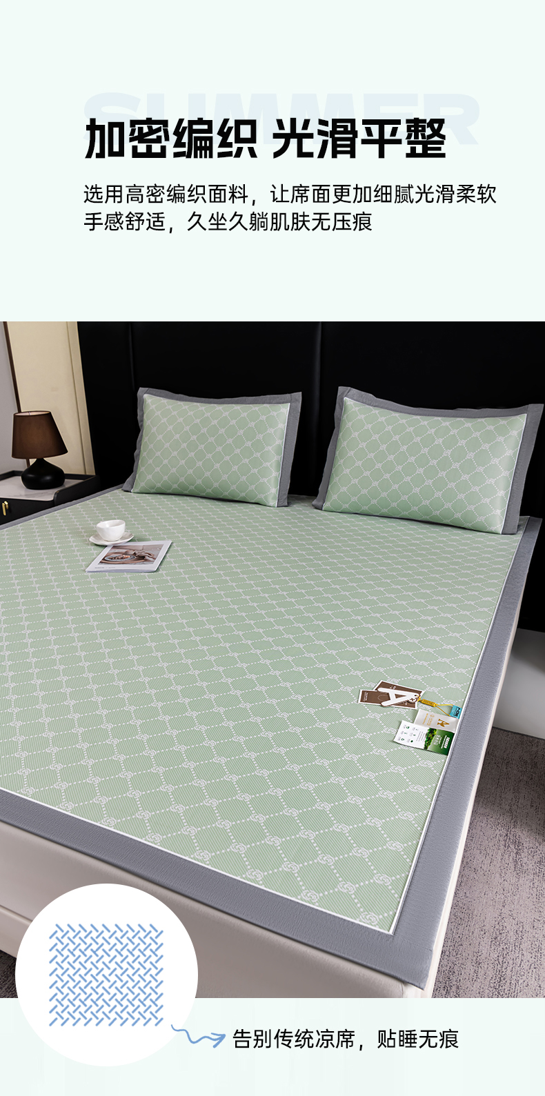 商品名称:小牛席业 2026新款轻奢风小玫瑰凉感冰丝席系列凉席藤席冰丝席冰丝席凉感席乳胶席凉感豆豆席 绿色