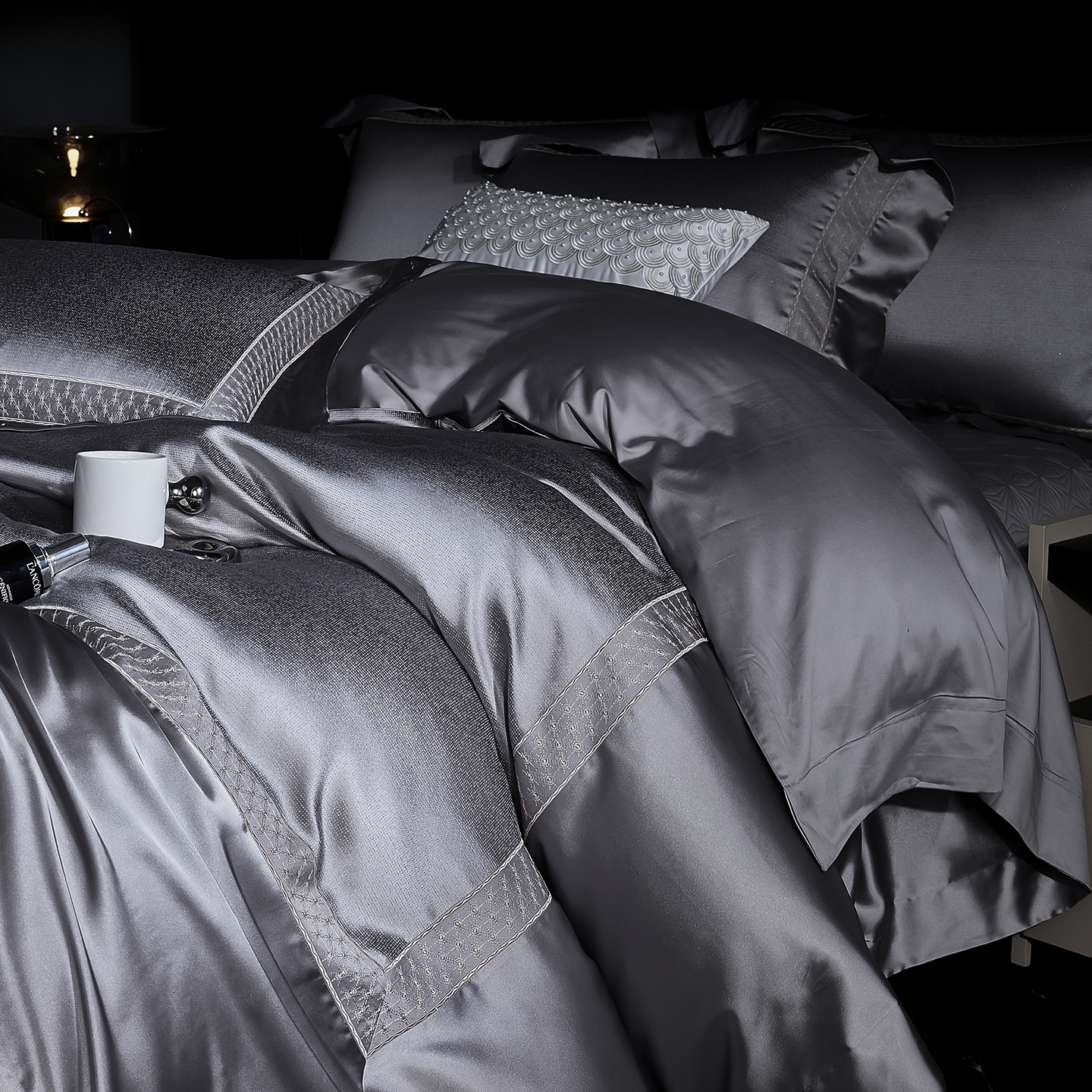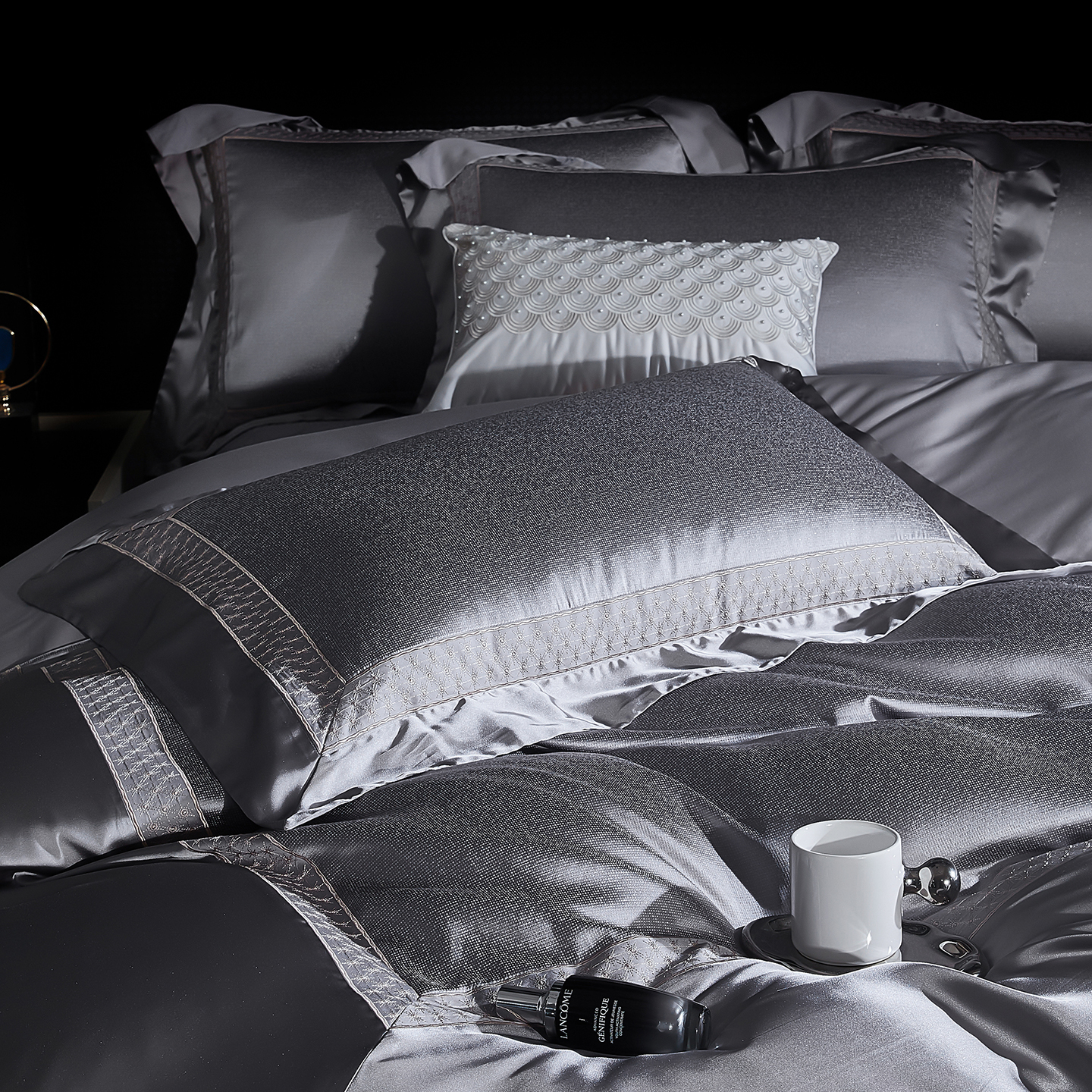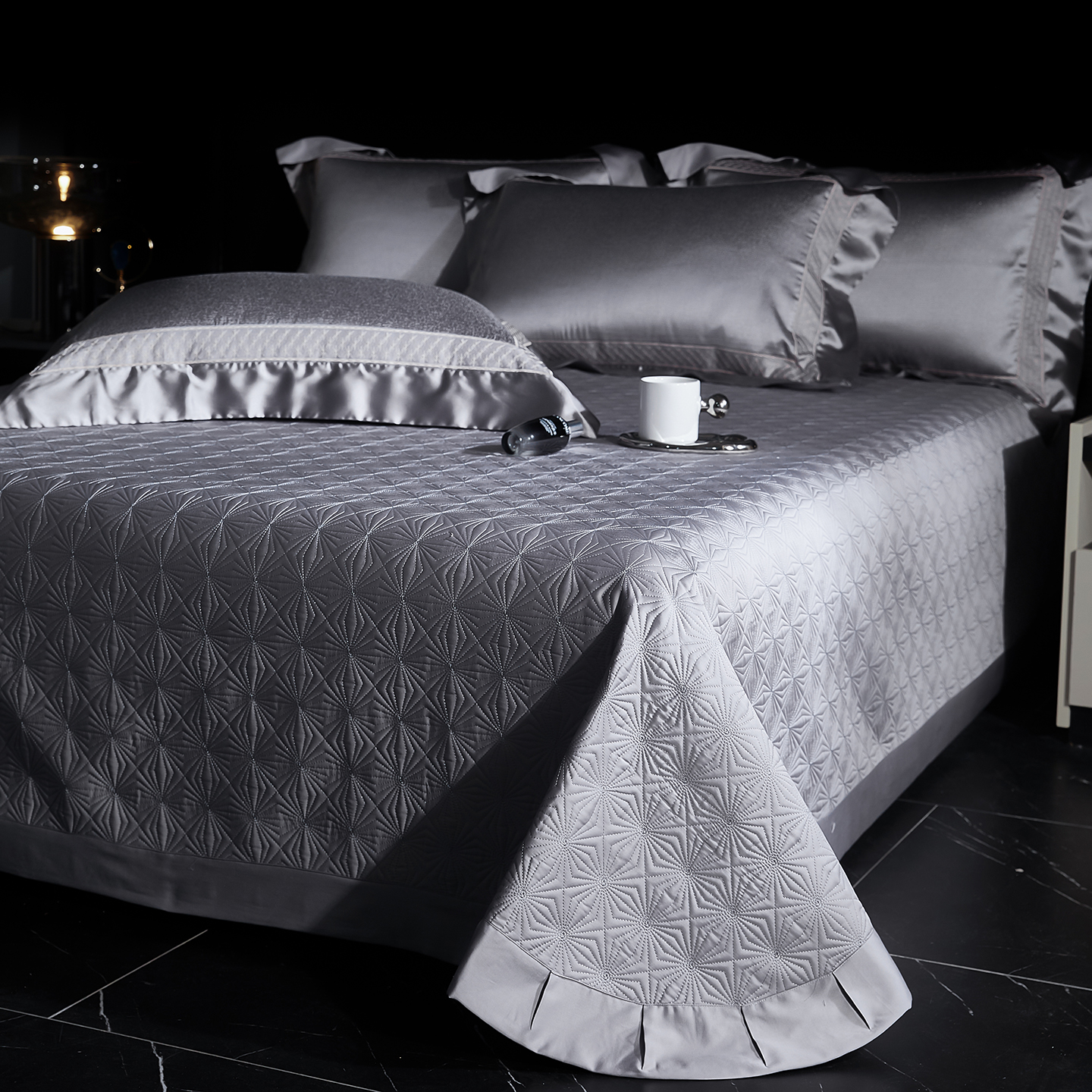 (总)edra 2026新款真丝天丝轻奢提花床盖款四件套-繁花,繁花-深灰,繁花-银灰