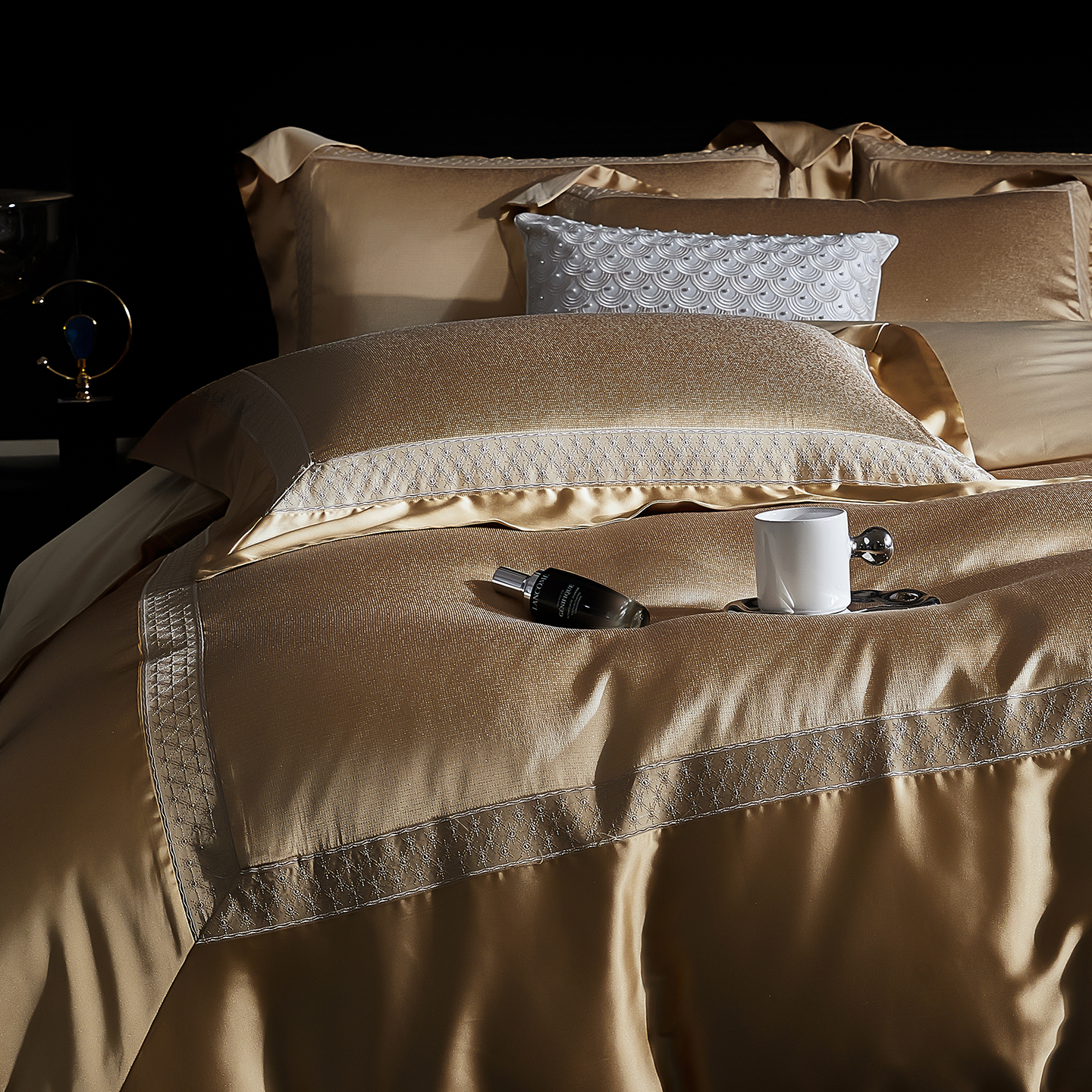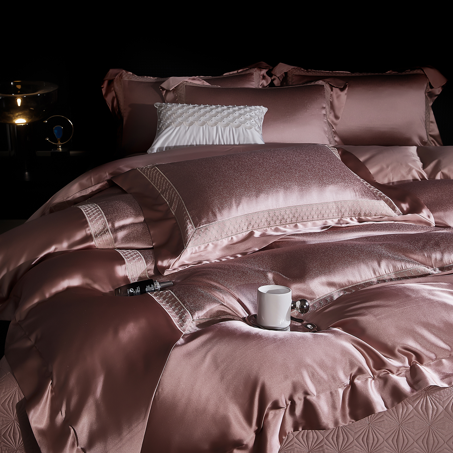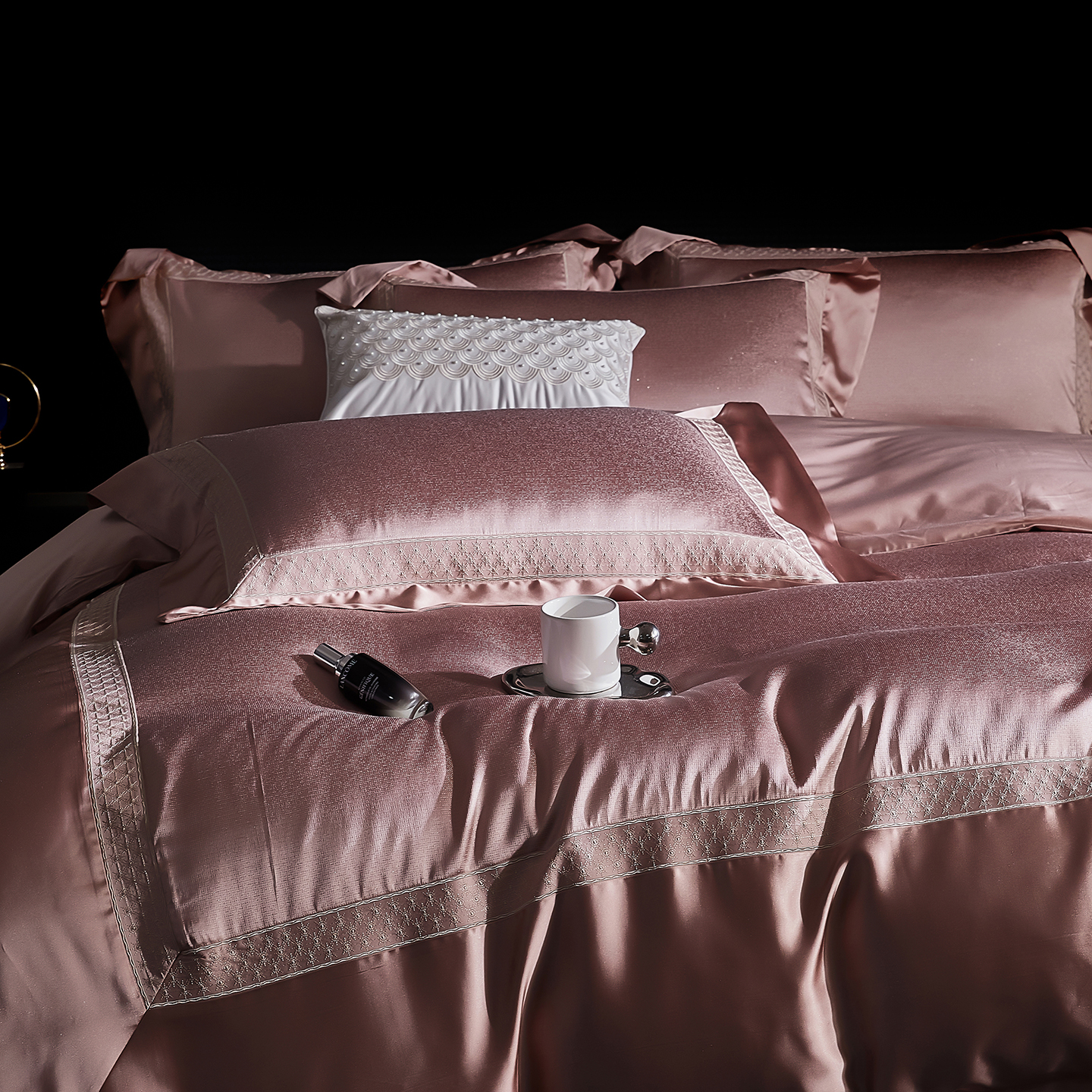 (总)edra 2026新款真丝天丝轻奢提花床盖款四件套-拉斐尔,香槟白,粉,银灰,金咖,蓝
