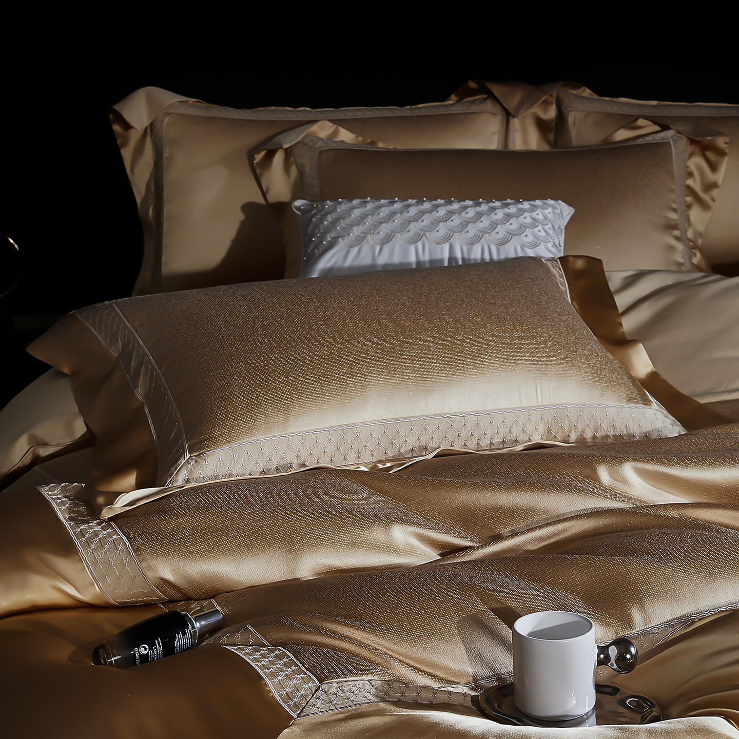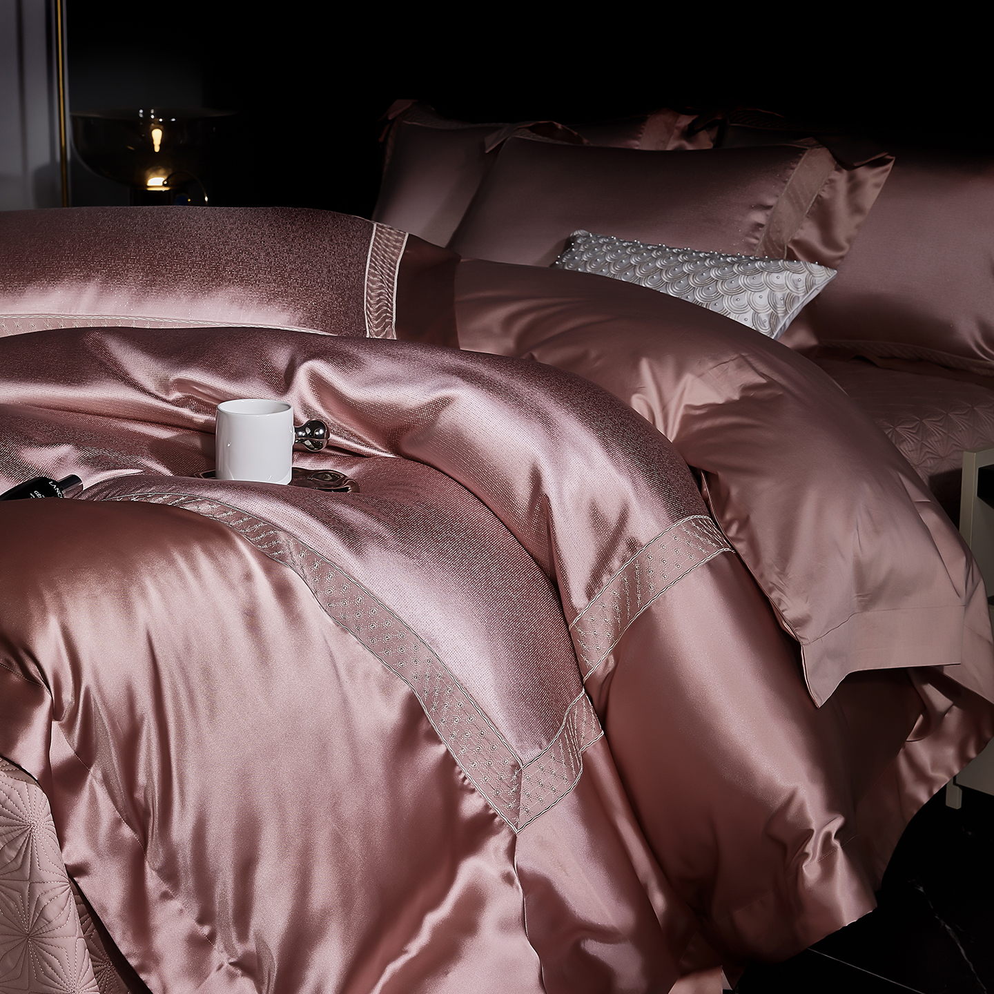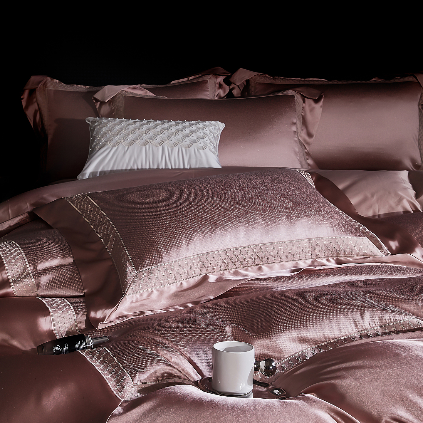 (总)edra 2026新款真丝天丝轻奢提花床盖款四件套-拉斐尔,香槟白,粉,银灰,金咖,蓝