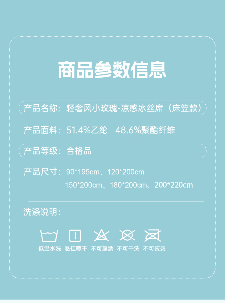 (总)小牛席业 2026新款【实拍风格】双PE高凉感-迪恩玫瑰提花冰丝席(床笠款)凉席竹席藤席冰藤席乳胶席豆豆席,粉色,灰色,蓝色,香槟