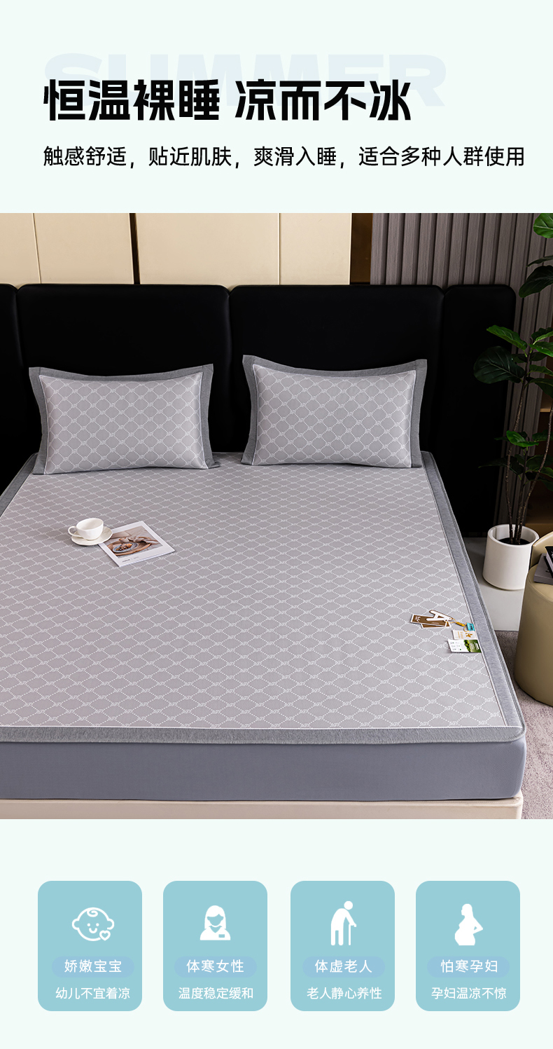 (总)小牛席业 2026新款半定位大提花凉感冰丝席(床笠款)凉席竹席藤席冰藤席乳胶席豆豆席,灰色,粉色,蓝色,香槟