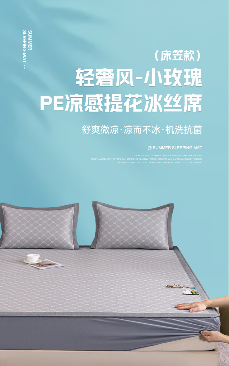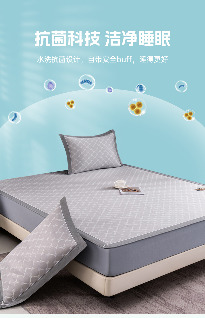 (总)2023新款超精密冰丝席-小斜纹系列-床笠款藤席凉席竹席,粉色,蓝色,绿色,银灰