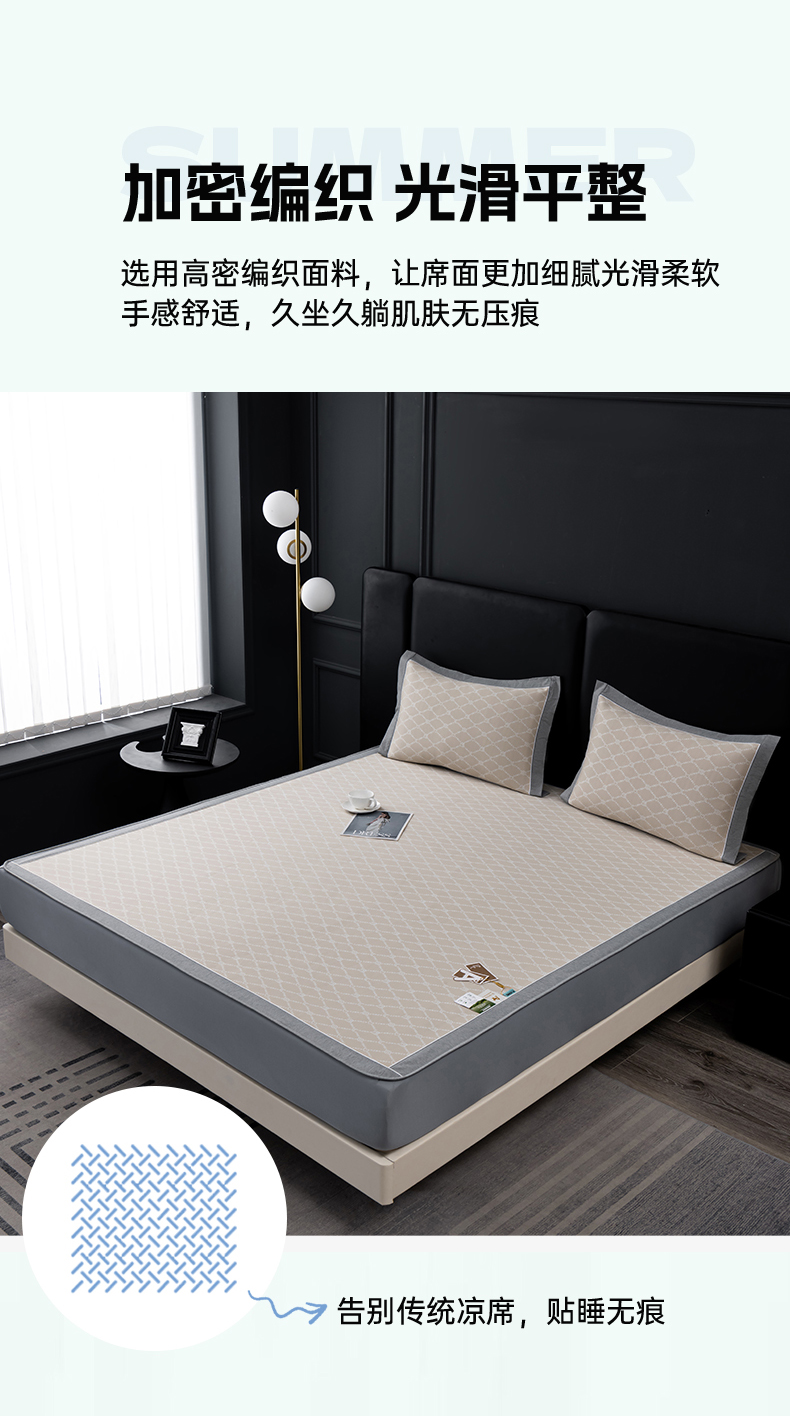 (总)2023新款超精密冰丝席-小斜纹系列-床笠款藤席凉席竹席,粉色,蓝色,绿色,银灰