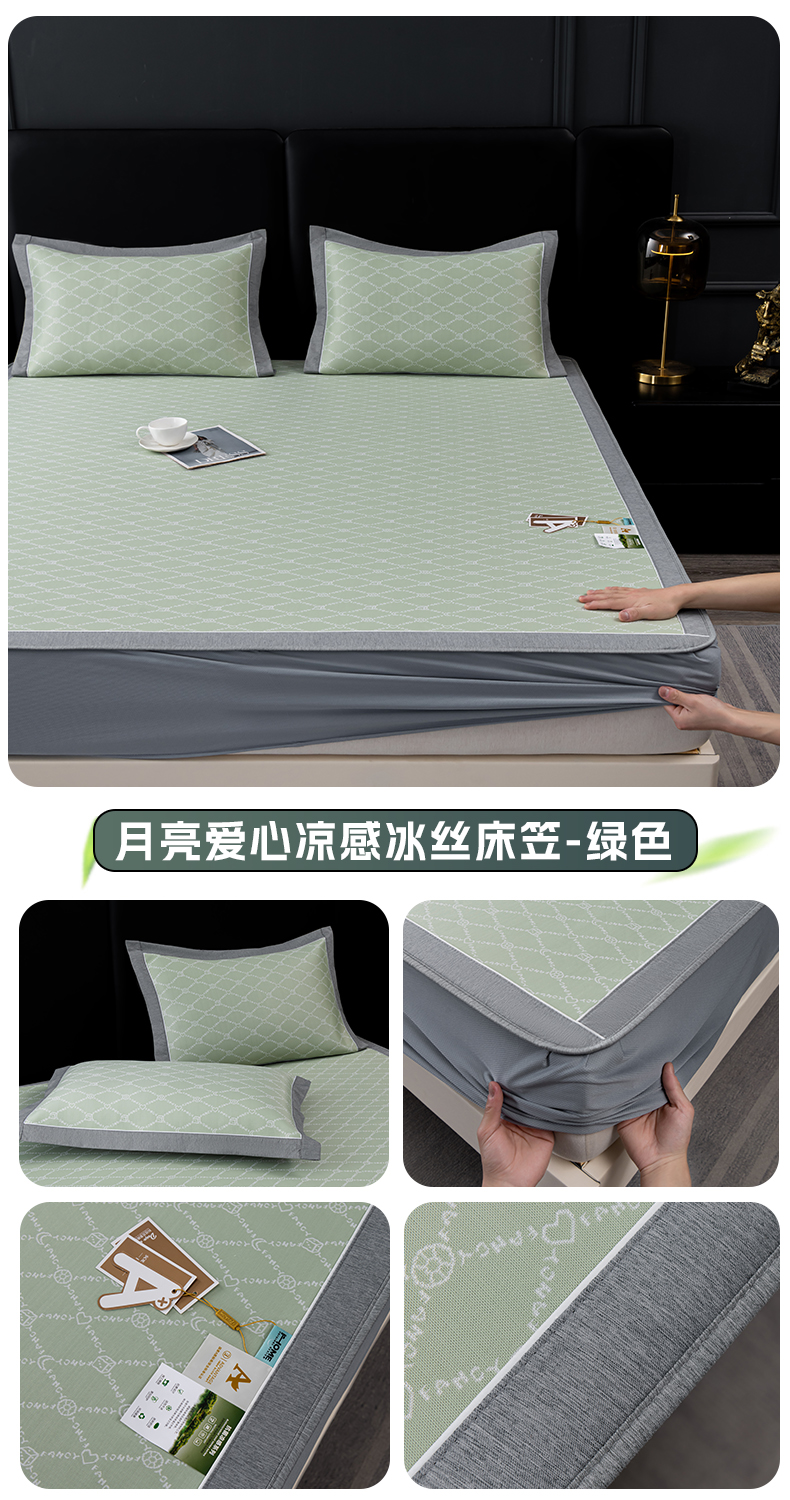 (总)小牛席业 2026春夏新款轻奢半定位凉感冰丝席凉席席子系列床笠款,轻奢半定位-粉色 床笠款,轻奢半定位-灰色 床笠款,轻奢半定位-蓝色 床笠款,轻奢半定位-抹茶 床笠款,轻奢半定位-香槟 床笠款