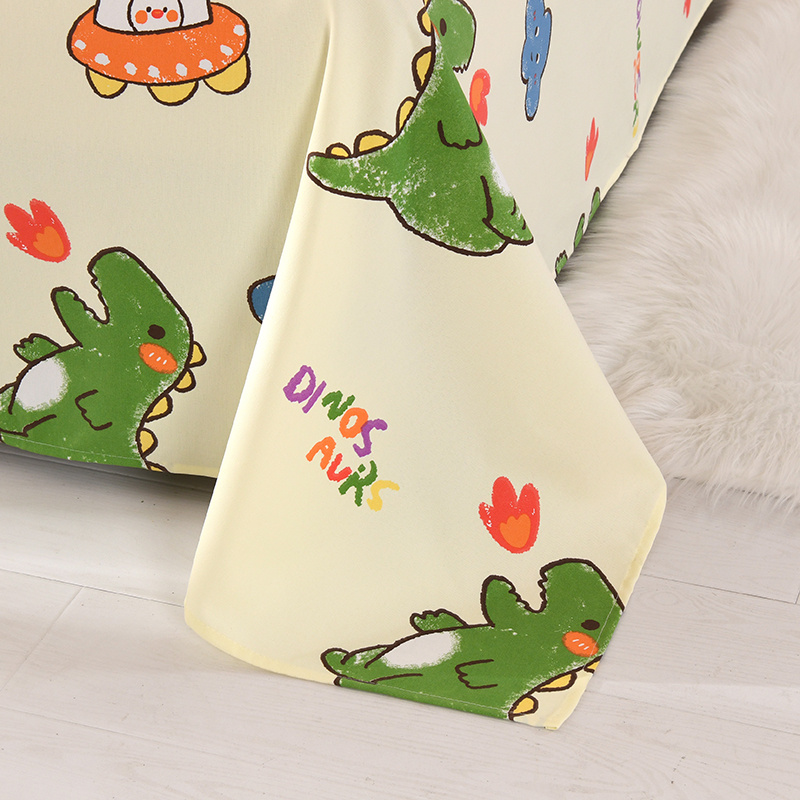 2026新款细纱老粗布床单床笠凉席席子三件套 恐龙乐园
