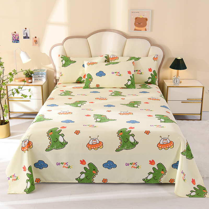 • 91家纺网 家纺一手货源 找家纺 2026新款细纱老粗布床单床笠凉席席子三件套 恐龙乐园