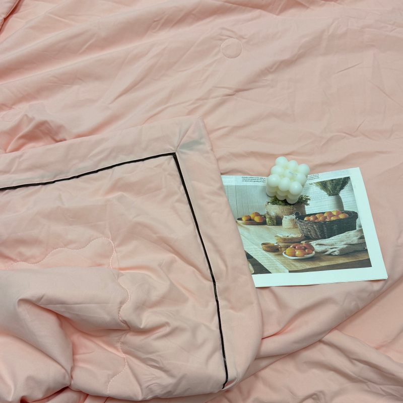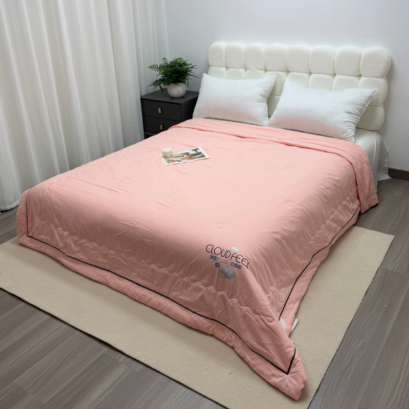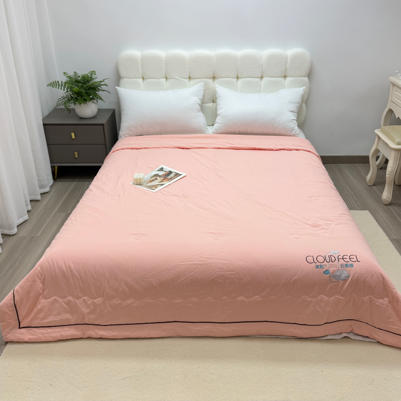 申龙家纺 2026新款云感棉斜条夏被 蜜桃粉
