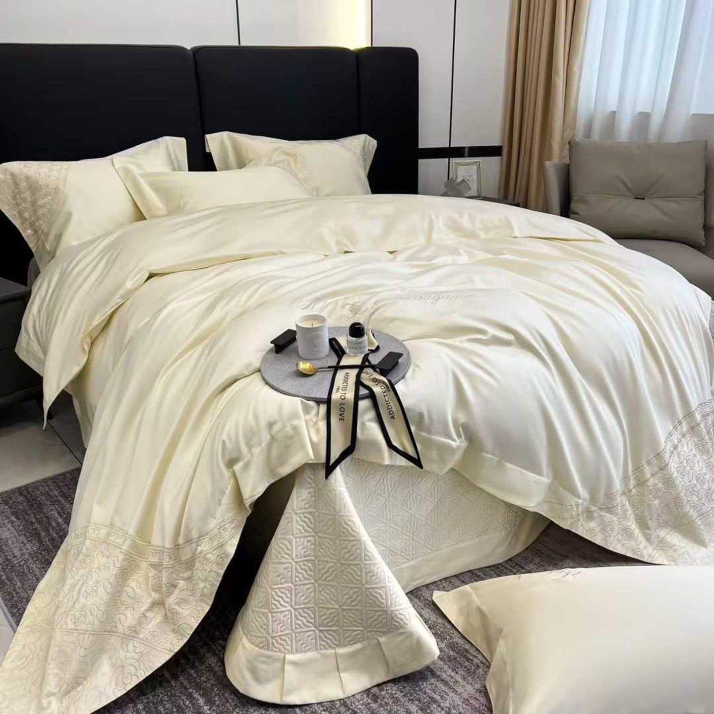 (总)edra 2026新款真丝天丝轻奢提花床盖款四件套-繁花,繁花-深灰,繁花-银灰