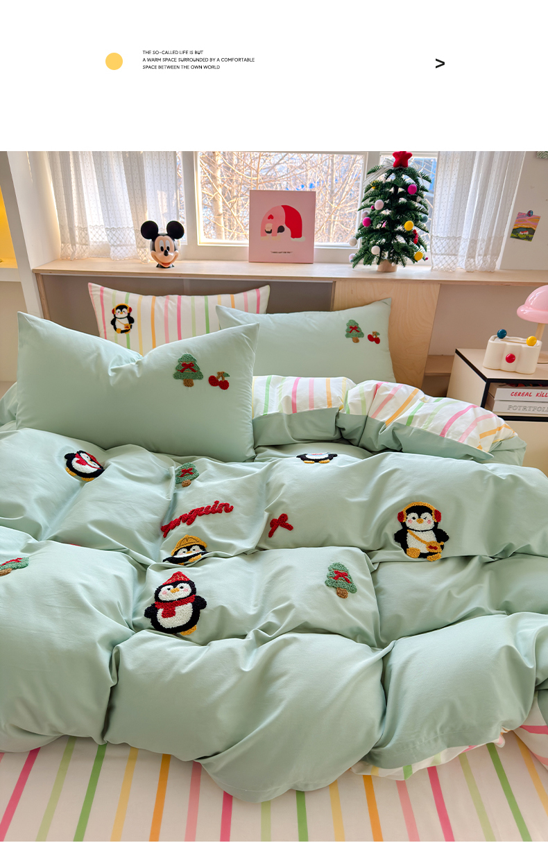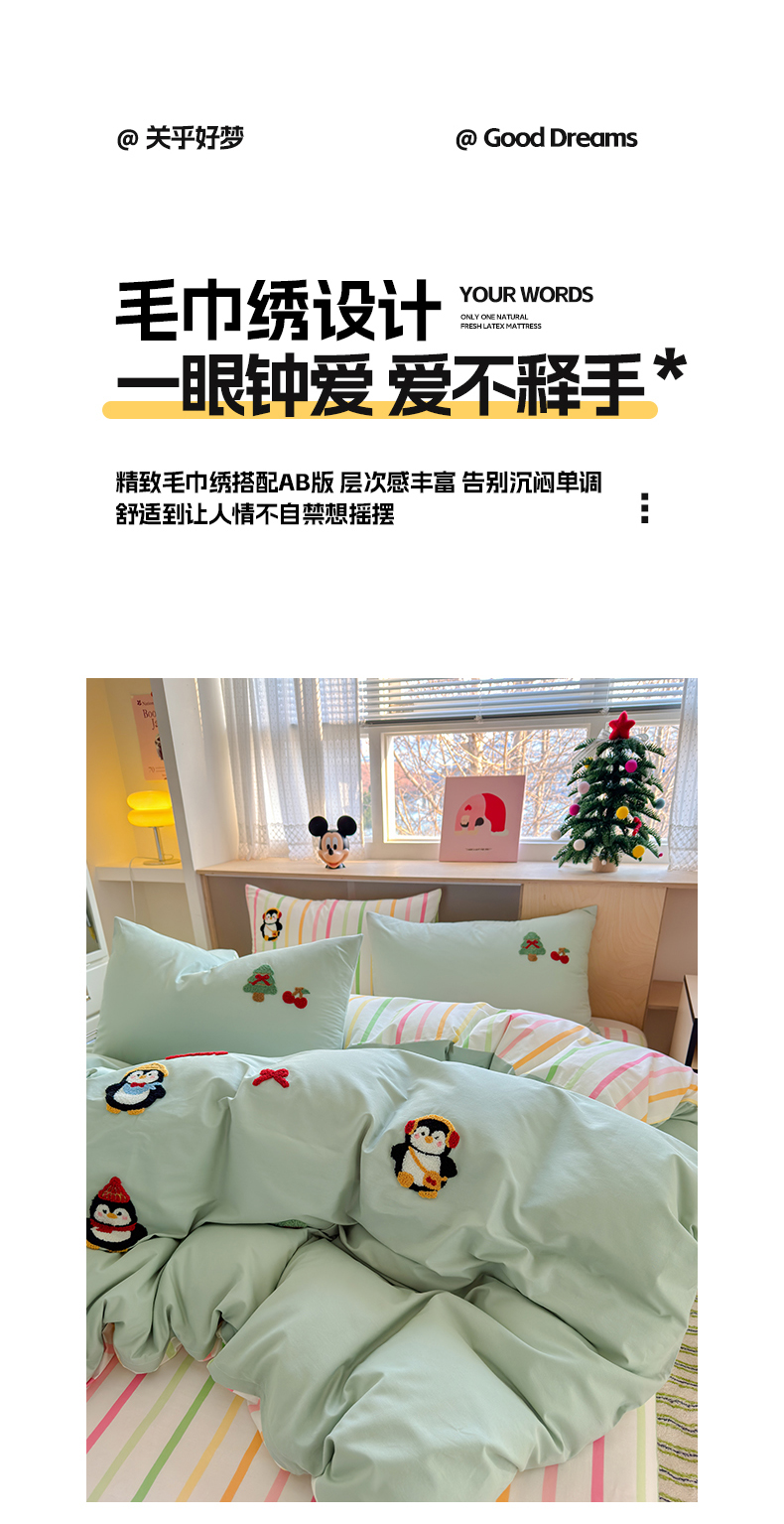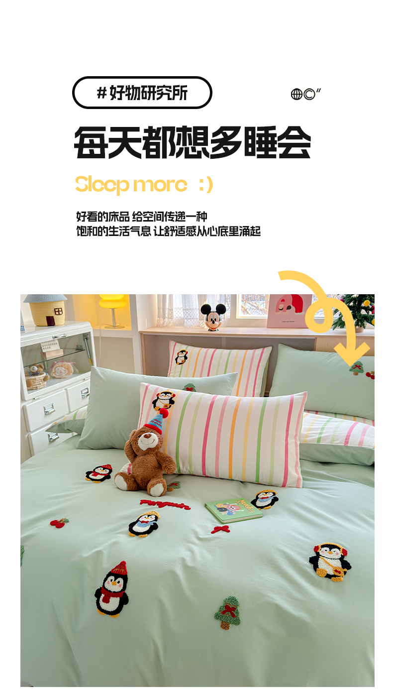 当前位置: 91家纺网 > 商品网购 > 床品套件 > 四件套 > 全棉普通四件套 > 如意朵 2026新款全棉纯棉毛巾绣四件套(第二批) 小企鹅