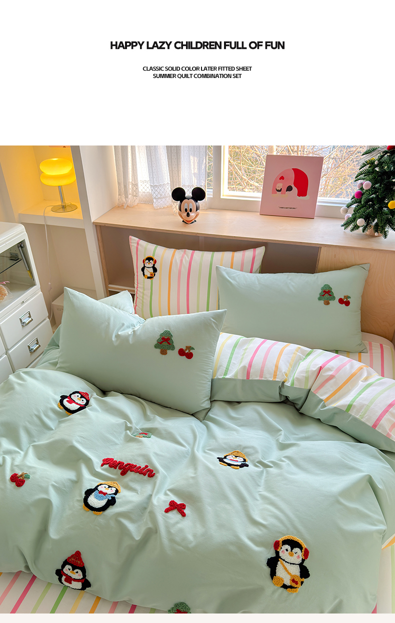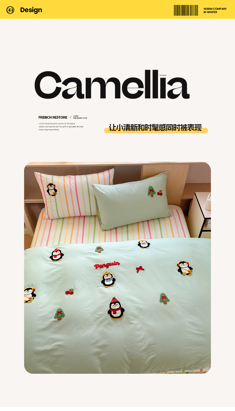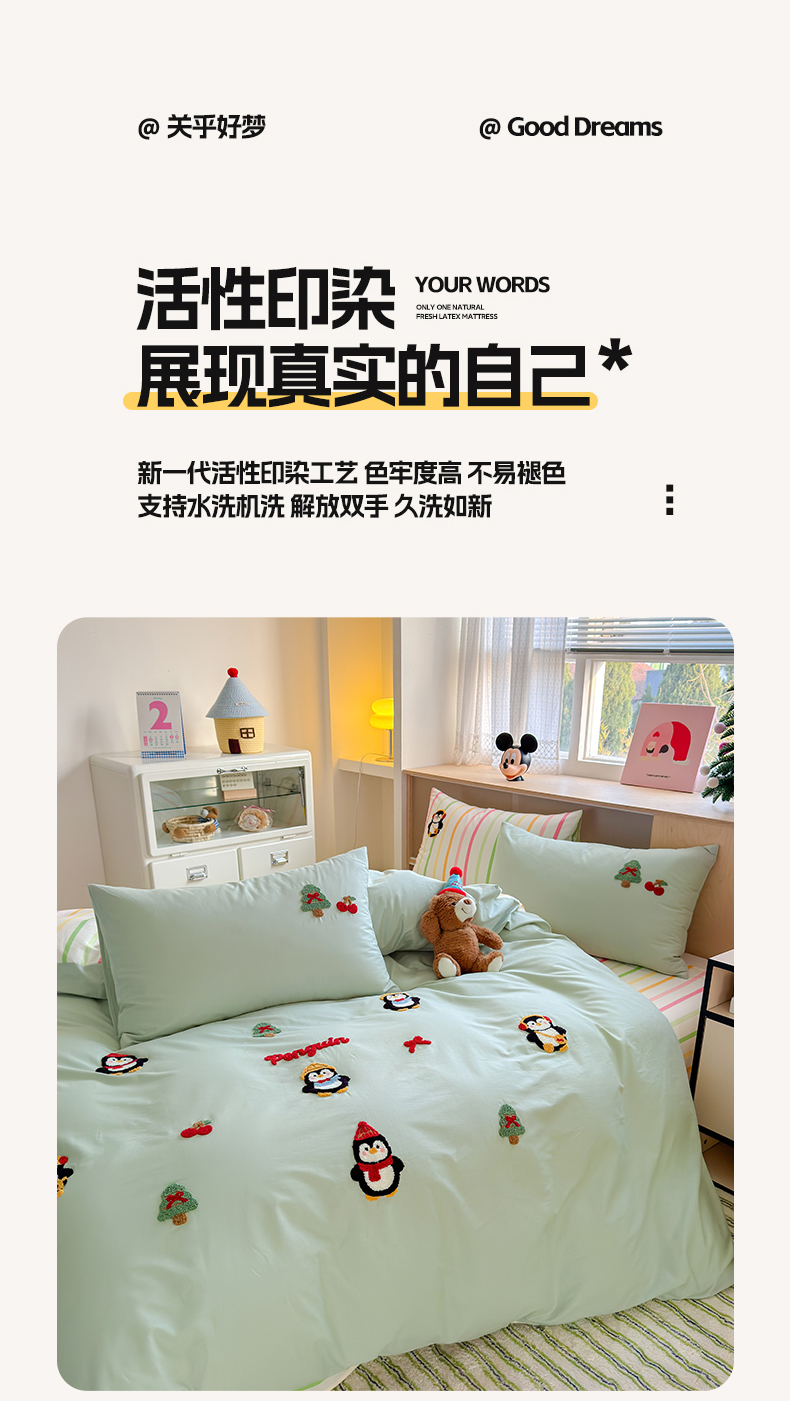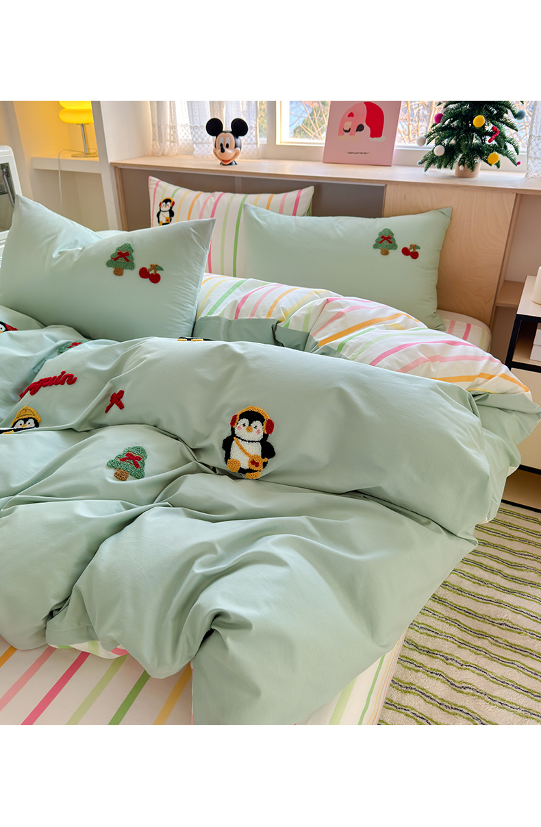 当前位置: 91家纺网 > 商品网购 > 床品套件 > 四件套 > 全棉普通四件套 > 如意朵 2026新款全棉纯棉毛巾绣四件套(第二批) 小企鹅