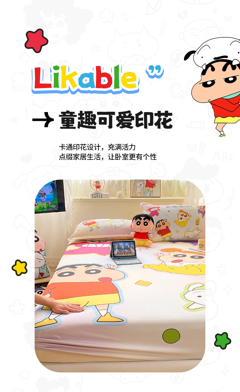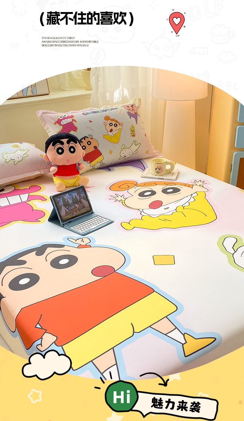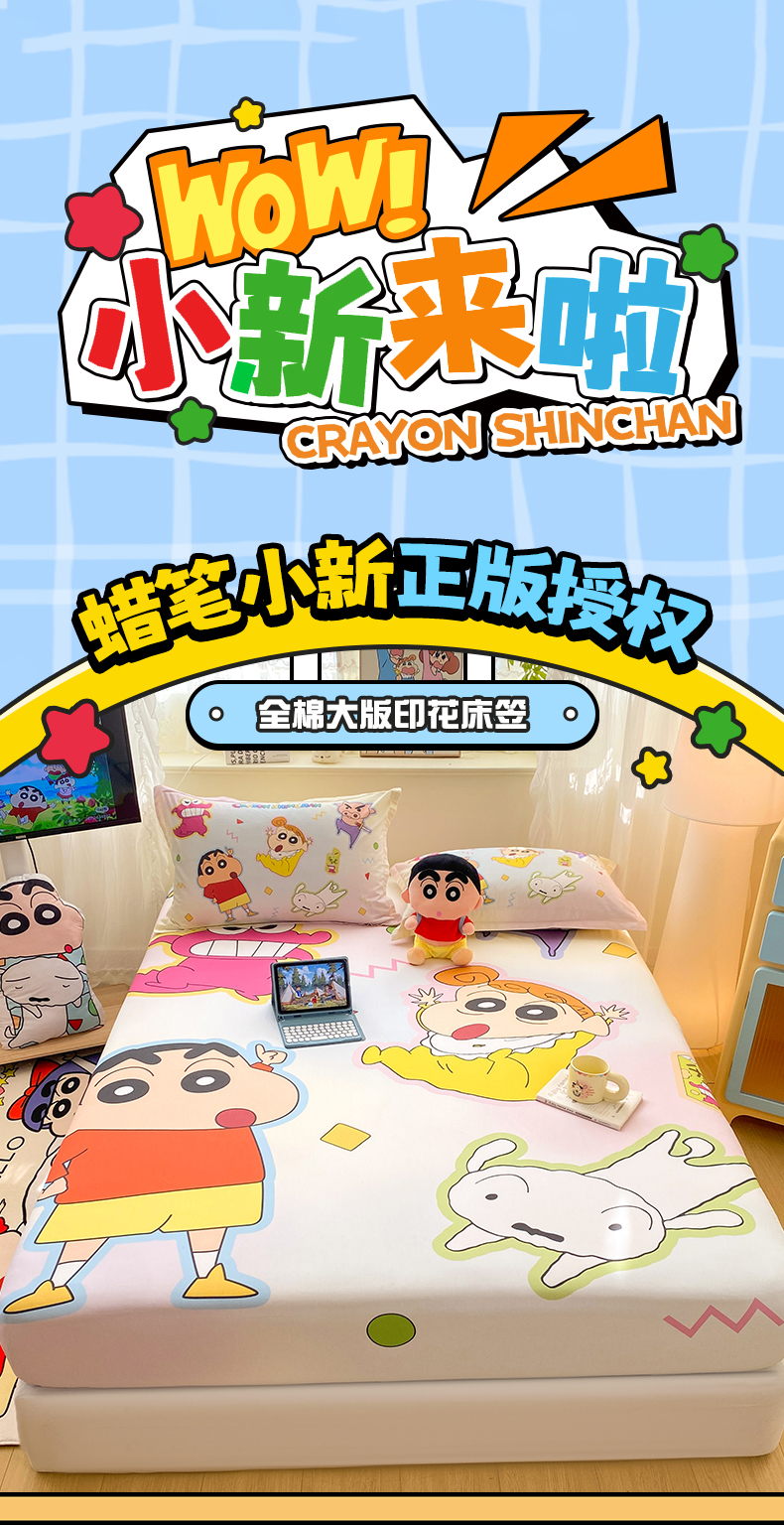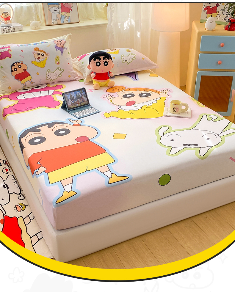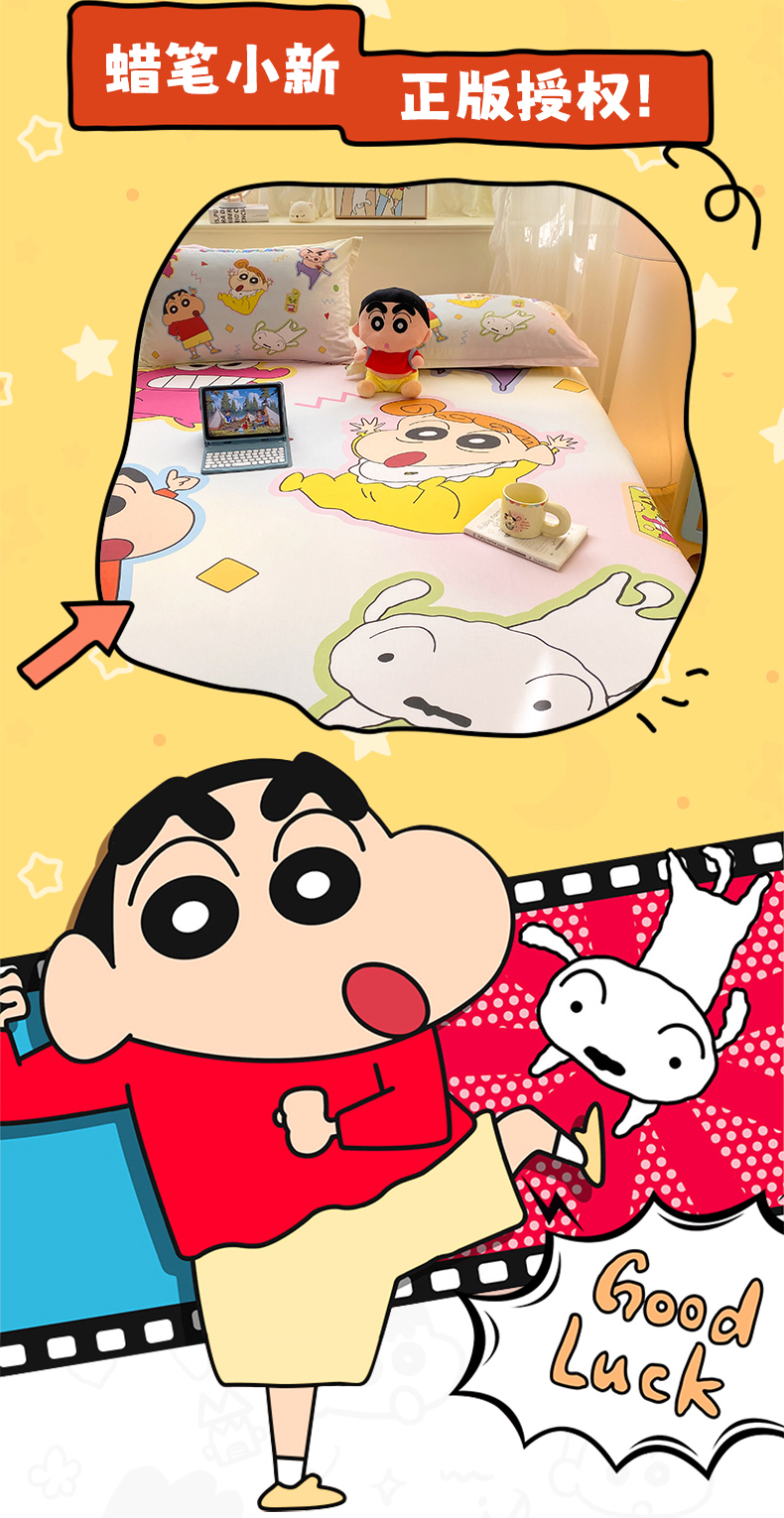 • 91家纺网 家纺一手货源 找家纺 博雅 2026新款蜡笔小新正版授权全棉纯棉大版床笠单件床笠单品单床笠 大版-快乐小新