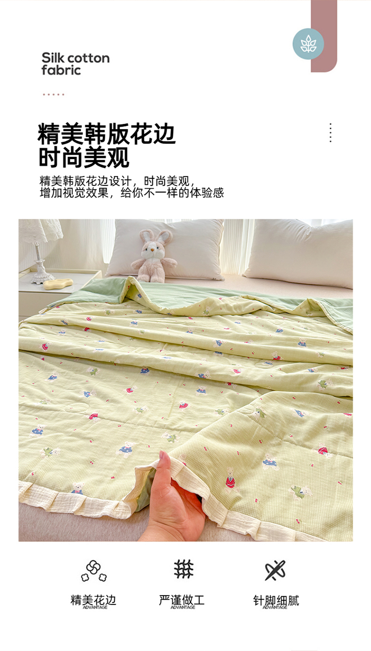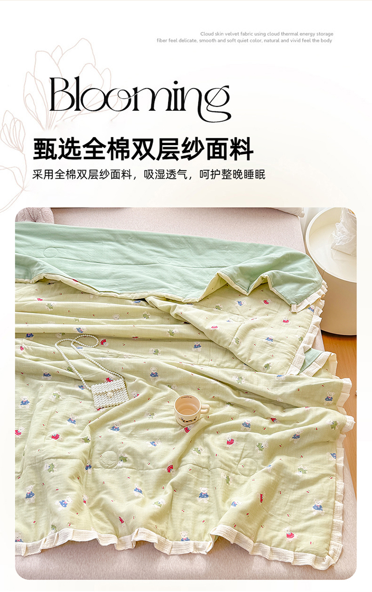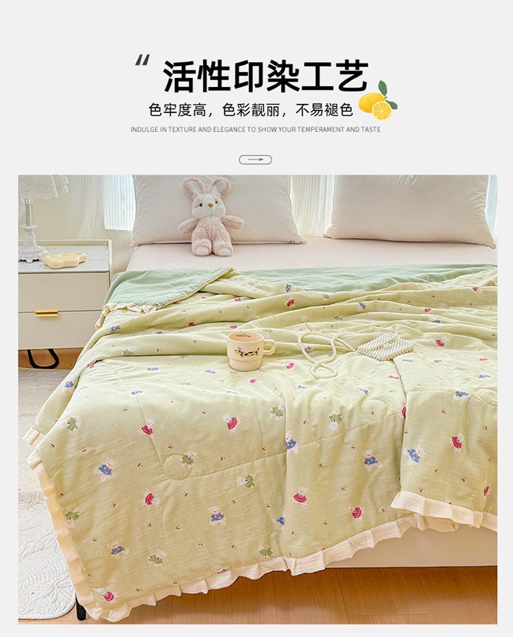 商品名称:(总)2026高端法式韩版花边A类母婴级印花全棉双层纱单夏被子清新公主风荷叶边纯棉双层纱夏凉被空调被春秋被