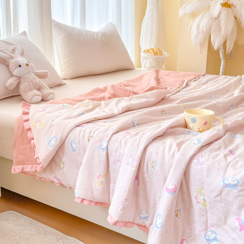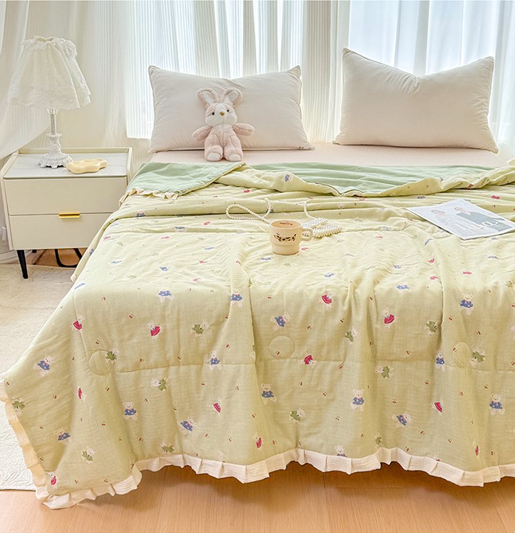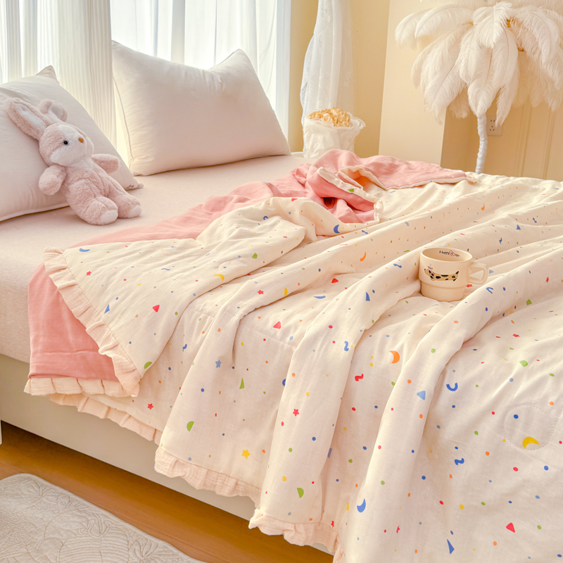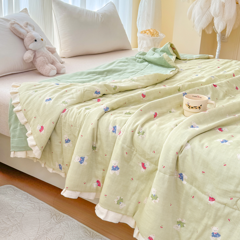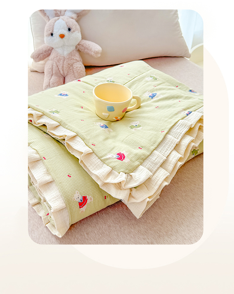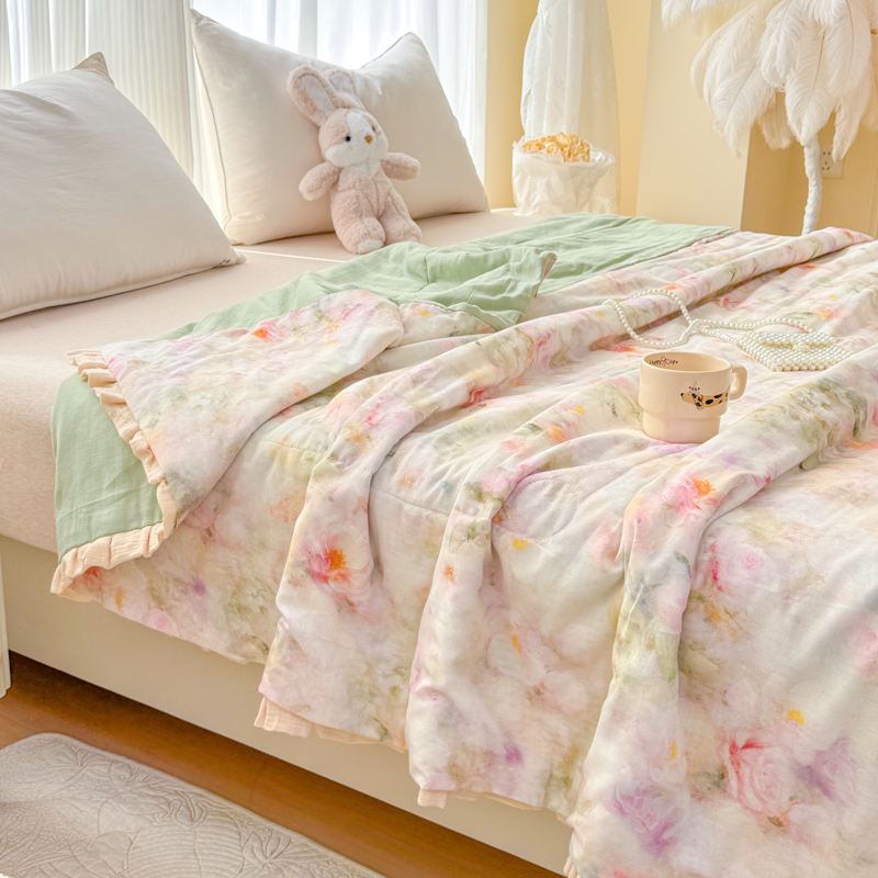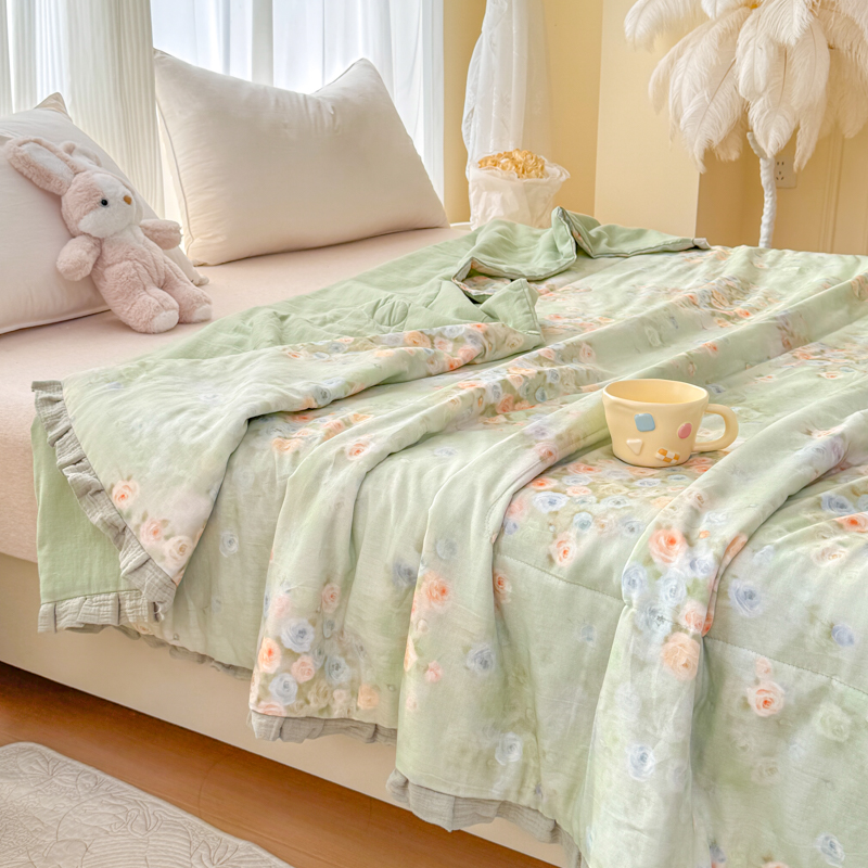 被子 > 夏被 > (总)2026高端法式韩版花边A类母婴级印花全棉双层纱单夏被子清新公主风荷叶边纯棉双层纱夏凉被空调被春秋被