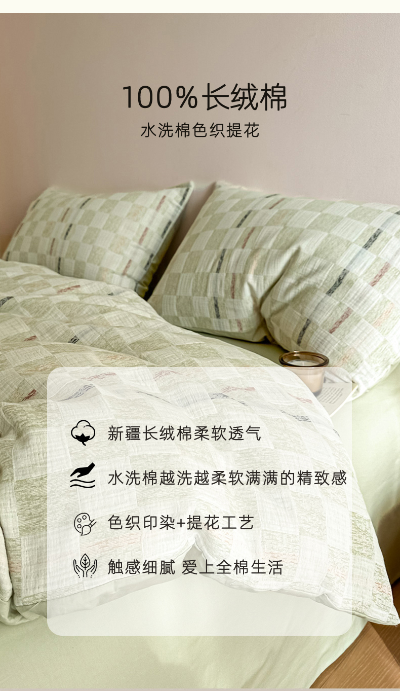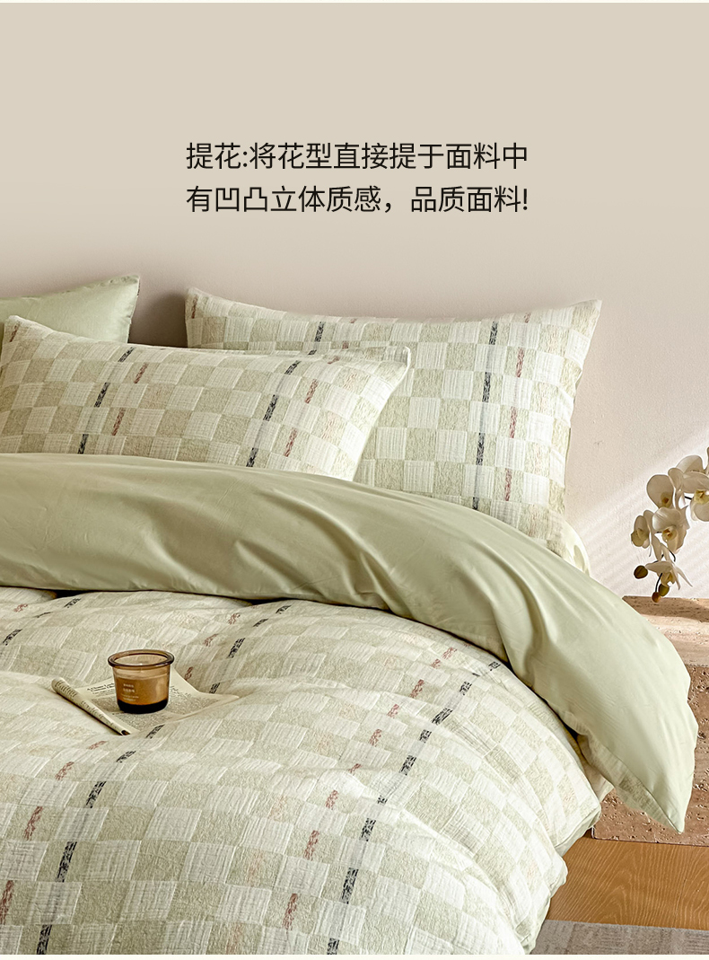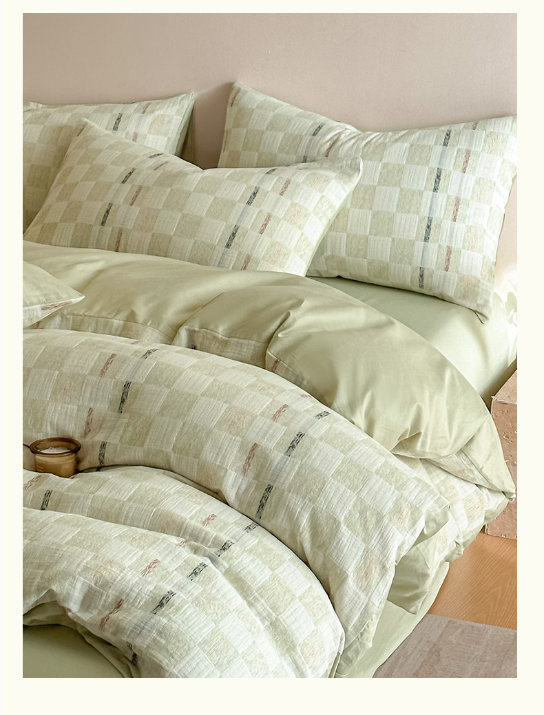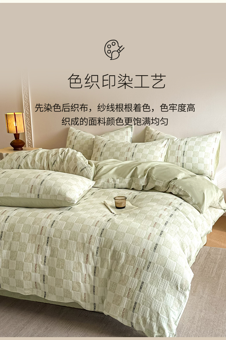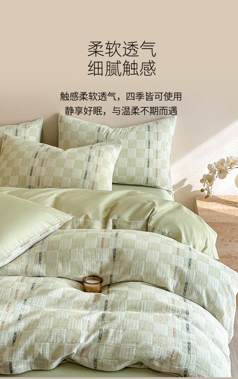 当前位置: 91家纺网 > 商品网购 > 床品套件 > 四件套 > 色织四件套 > 眠博士 2026新款色织水洗双层纱提花四件套 曲奇绿格