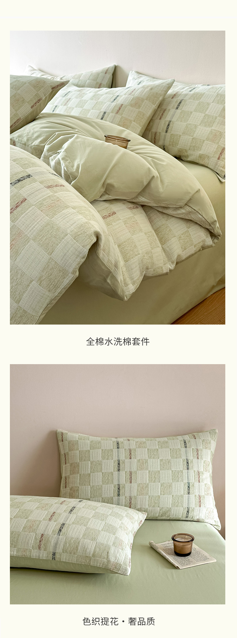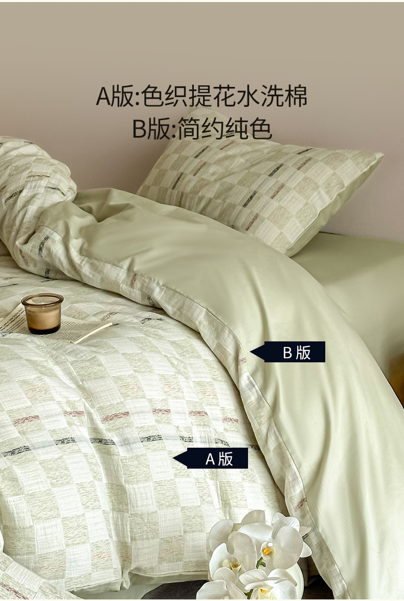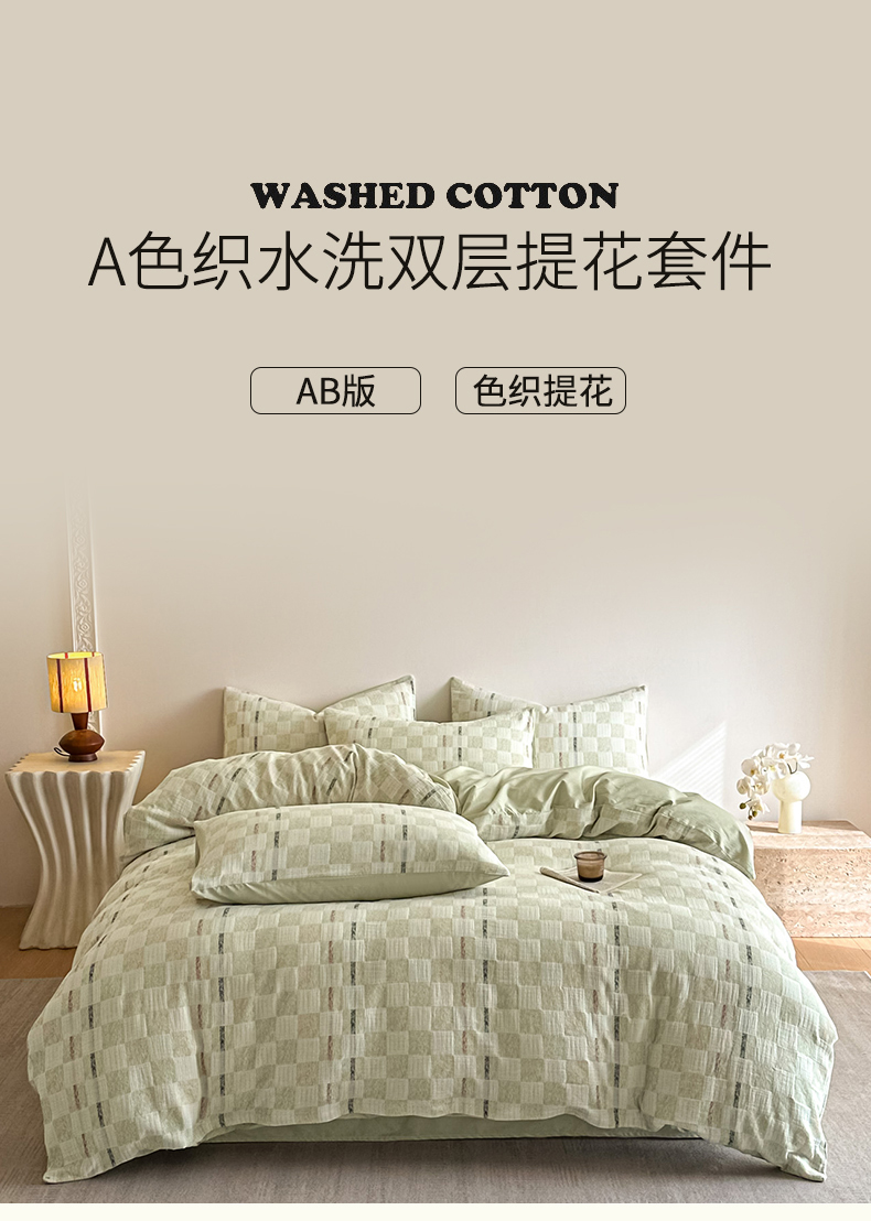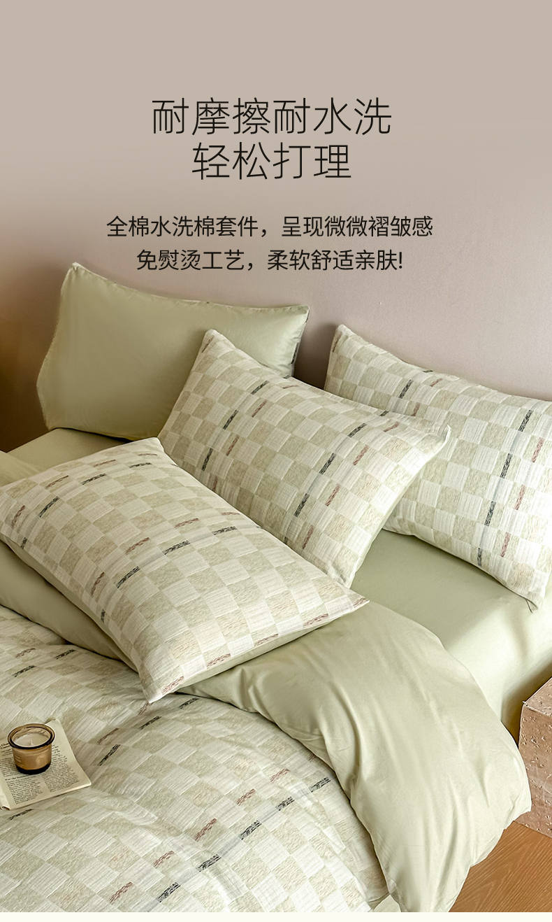 当前位置: 91家纺网 > 商品网购 > 床品套件 > 四件套 > 色织四件套 > 眠博士 2026新款色织水洗双层纱提花四件套 曲奇绿格