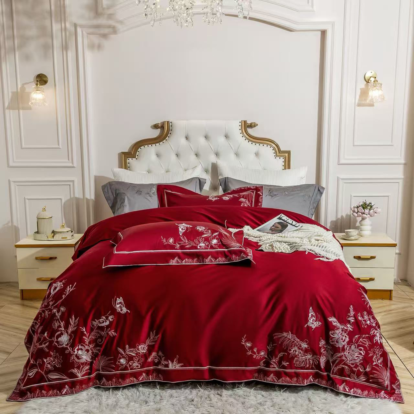 (总)edra 2026新款纯棉长绒棉轻奢刺绣床盖款四件套-蝴蝶,蝴蝶红,蝴蝶粉,蝴蝶灰,蝴蝶奶白,蝴蝶紫