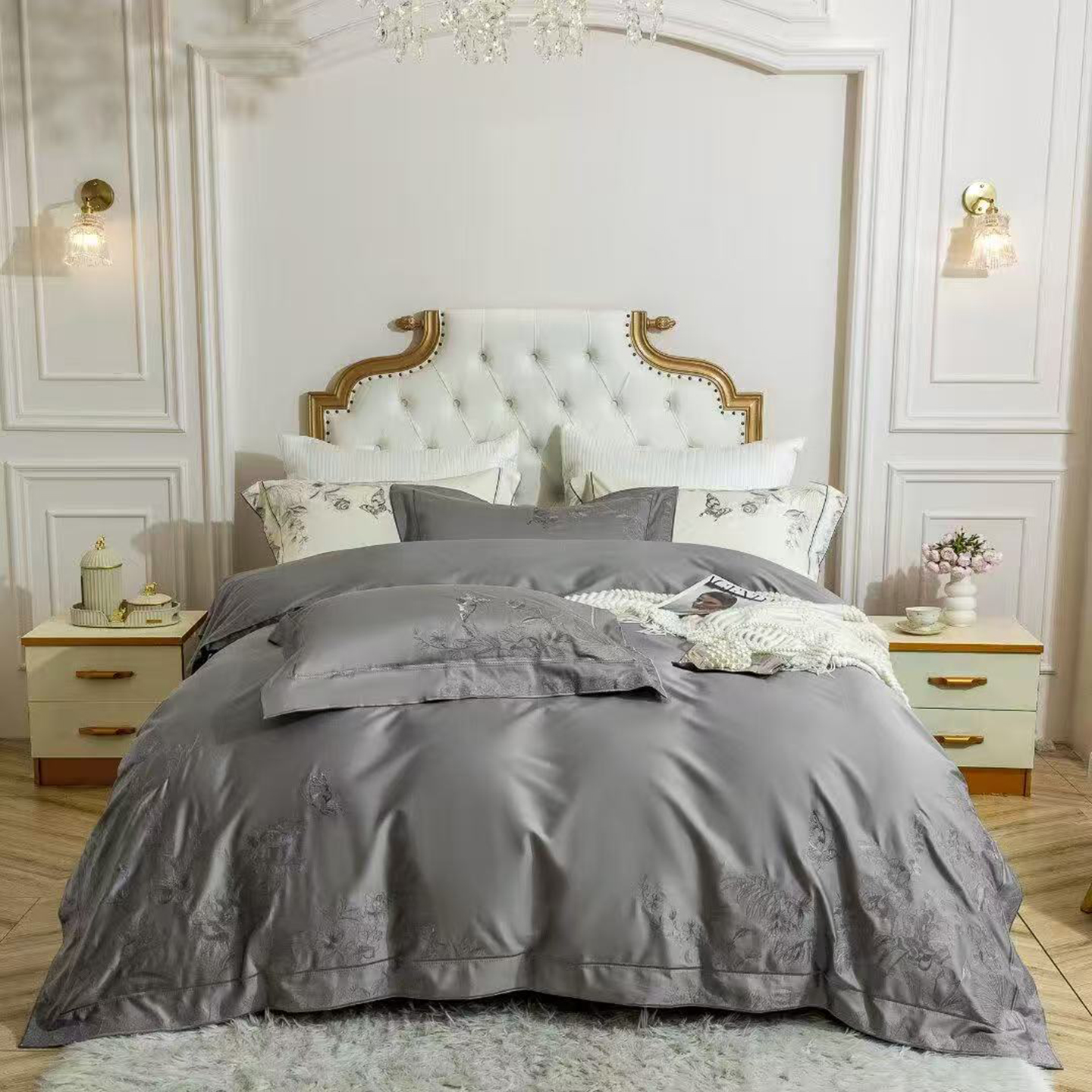 (总)edra 2026新款真丝天丝轻奢提花床盖款四件套-繁花,繁花-深灰,繁花-银灰