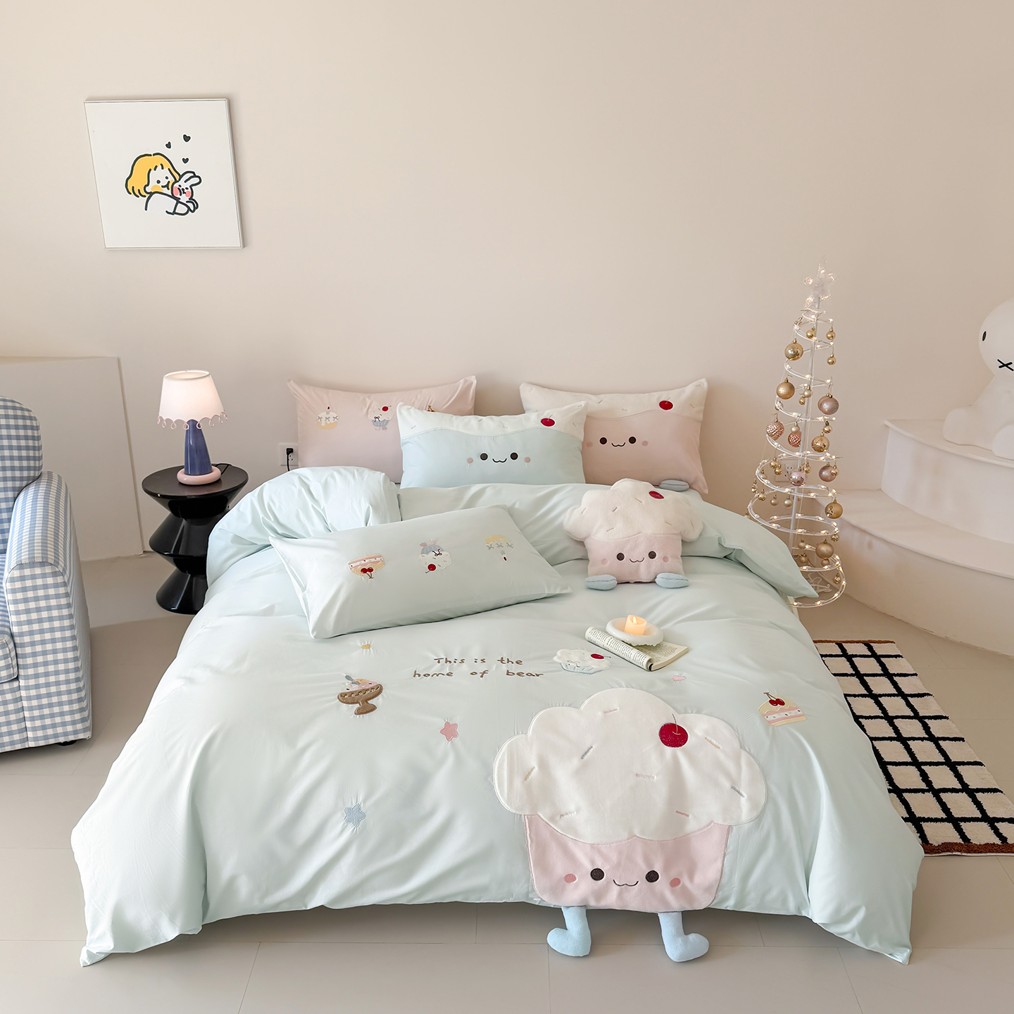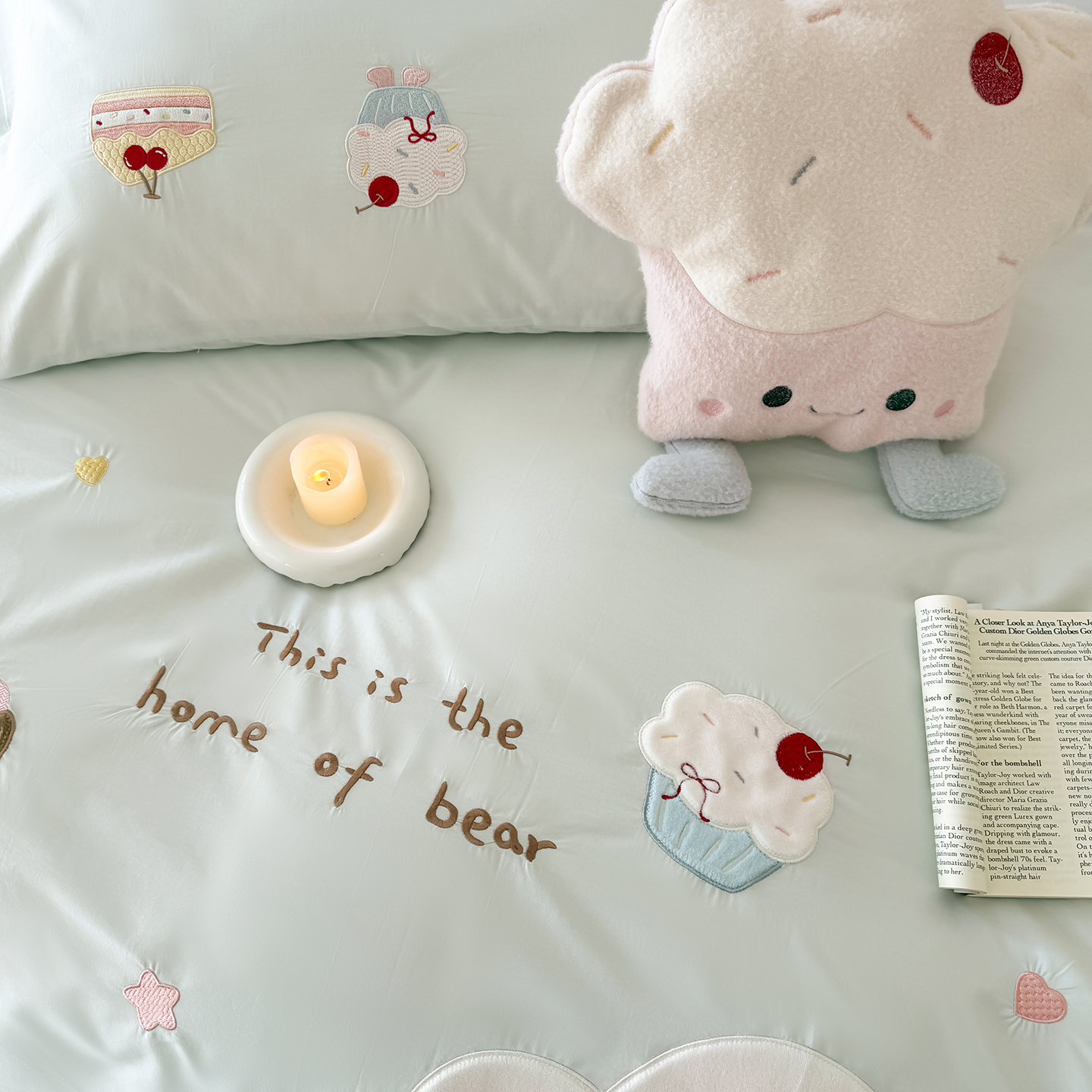 (总)嗨购家纺 2026新款40S水洗棉贴布刺绣四件套-半糖萌新系列(送同款抱枕 淘宝劵后控价:小号298元 标准348元 大号368元),半糖萌新-粉,半糖萌新-蓝