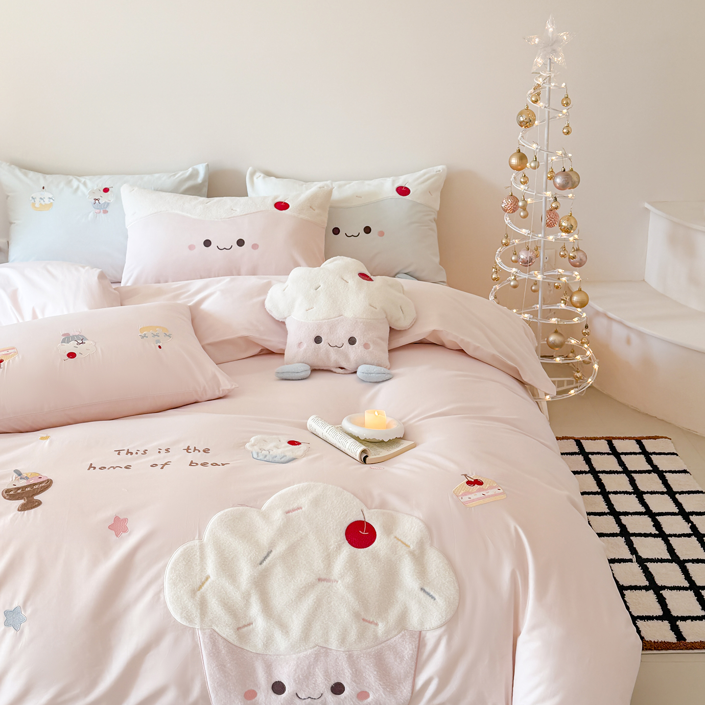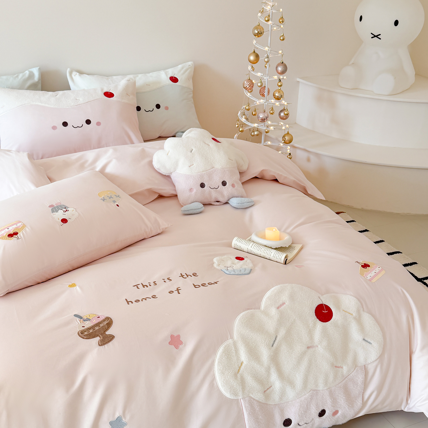 商品名称:嗨购家纺 2026新款40S水洗棉贴布刺绣四件套-半糖萌新系列(送同款抱枕 淘宝劵后控价:小号298元 标准348元 大号368元) 半糖萌新-粉