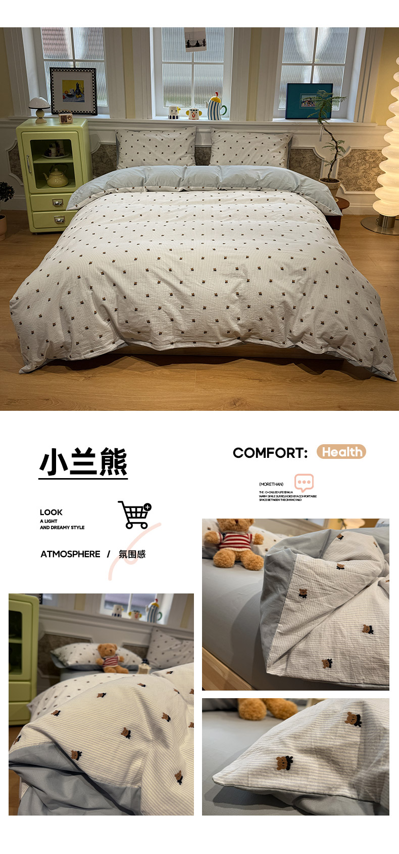 (总)怡家居 2025新款色织大提花贴布绣四件套,呆萌熊-黑,呆萌熊-蓝,可爱兔-粉,可爱兔-蓝,酷酷熊猫,贪吃帽子熊,围巾小兔,小红帽