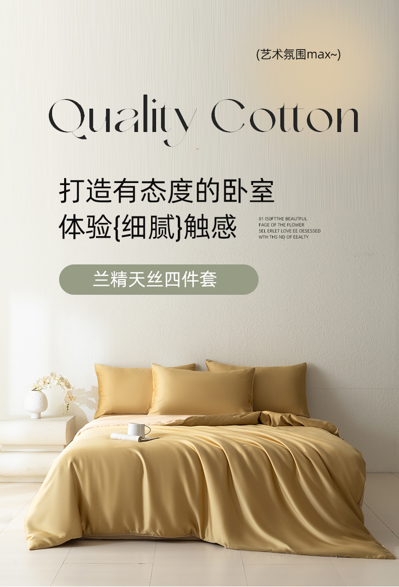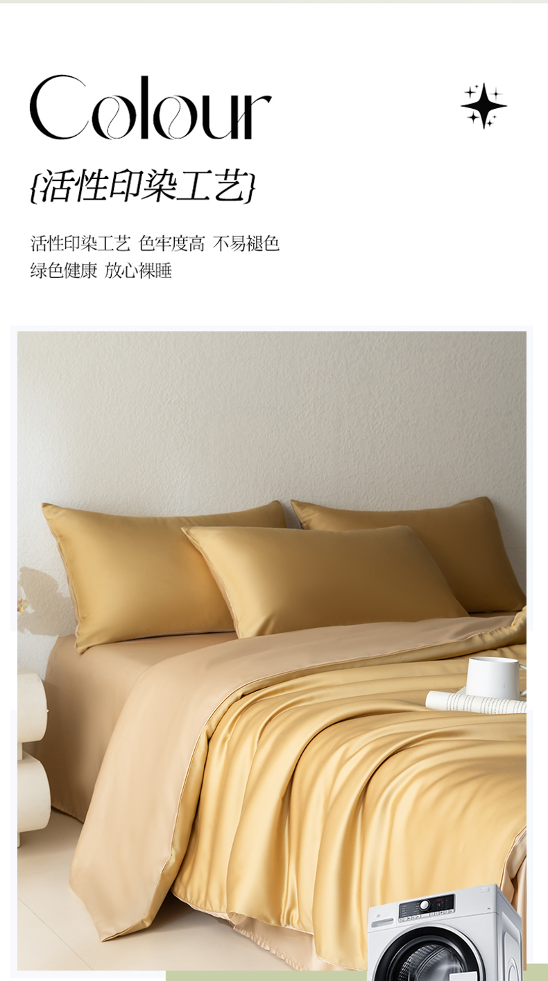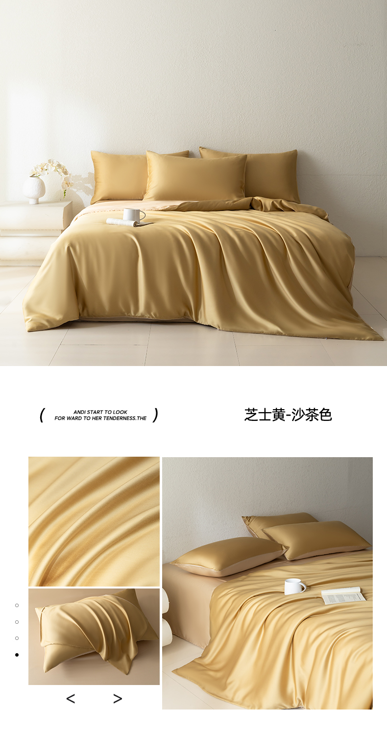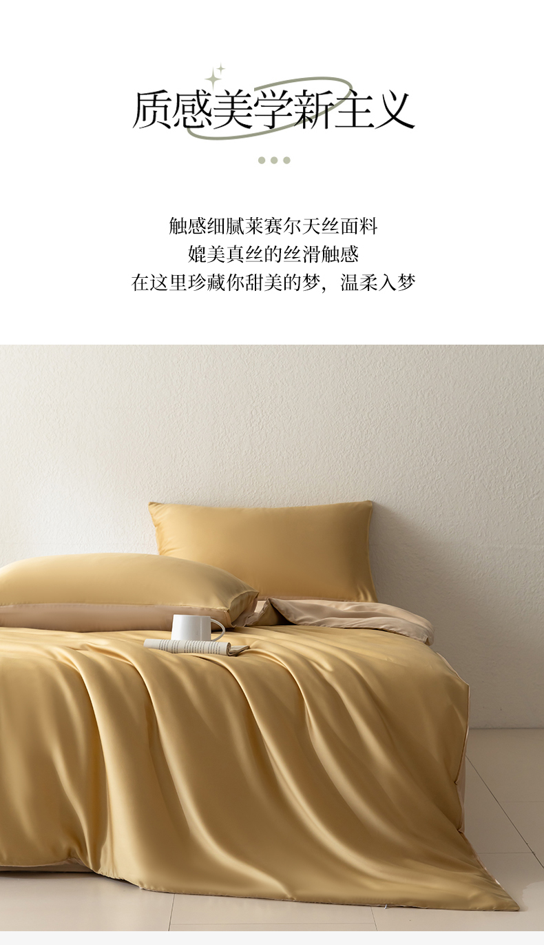 当前位置: 91家纺网 > 商品网购 > 床品套件 > 四件套 > 莱赛尔四件套 > 禾时 2026新款60支奥地利兰精双拼纯色天丝四件套 芝士黄-沙茶色