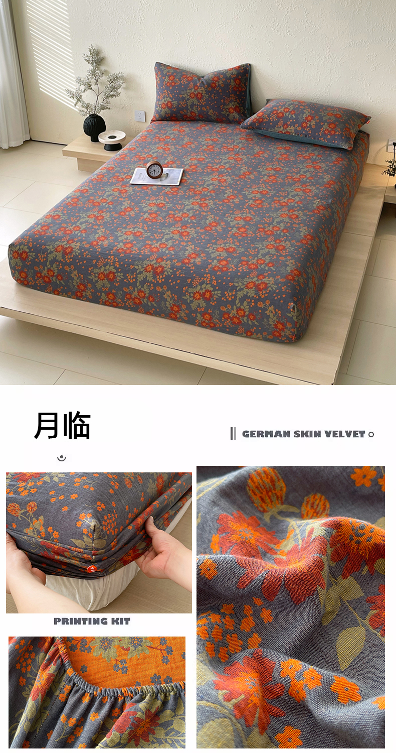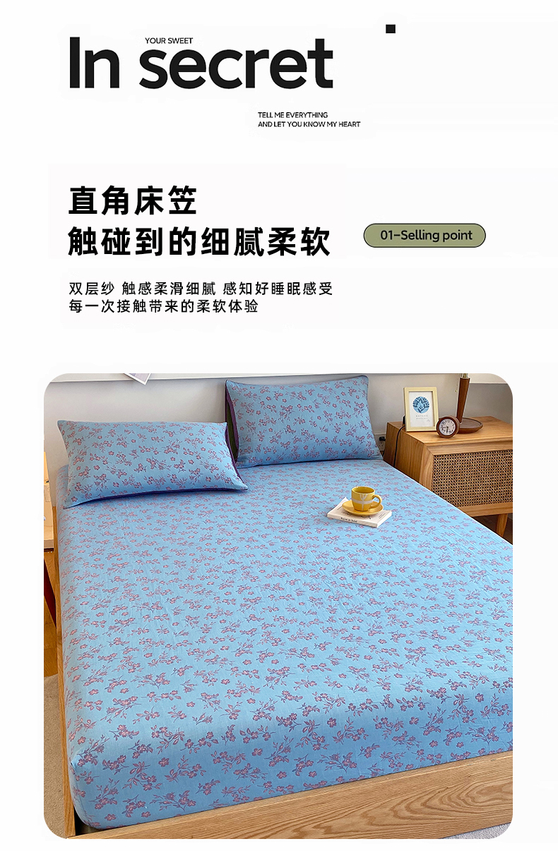 • 91家纺网 家纺一手货源 找家纺 春皖家纺 2026新款全棉纯棉拉链款双层纱床笠单床笠床笠单件 花漾兰