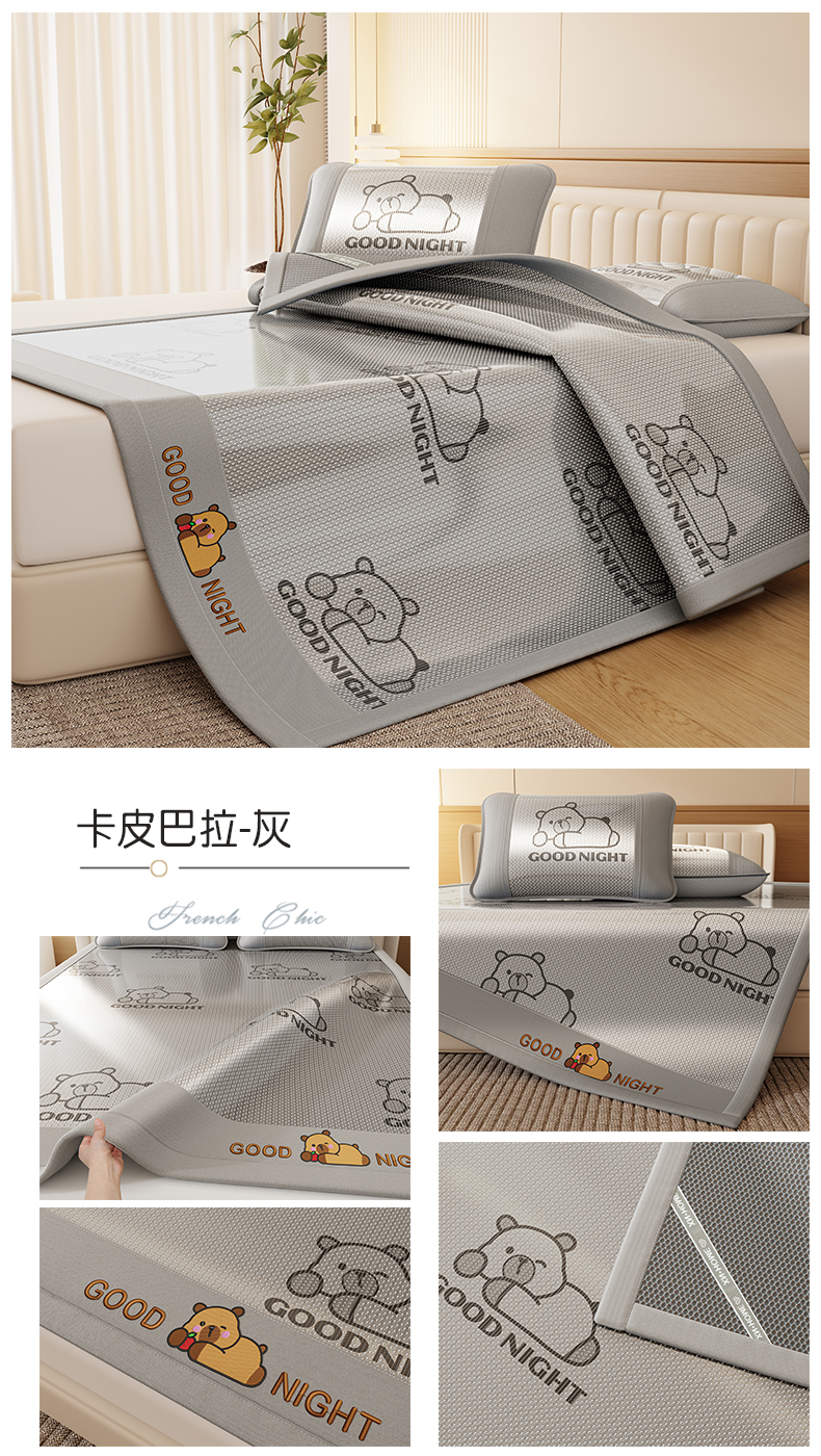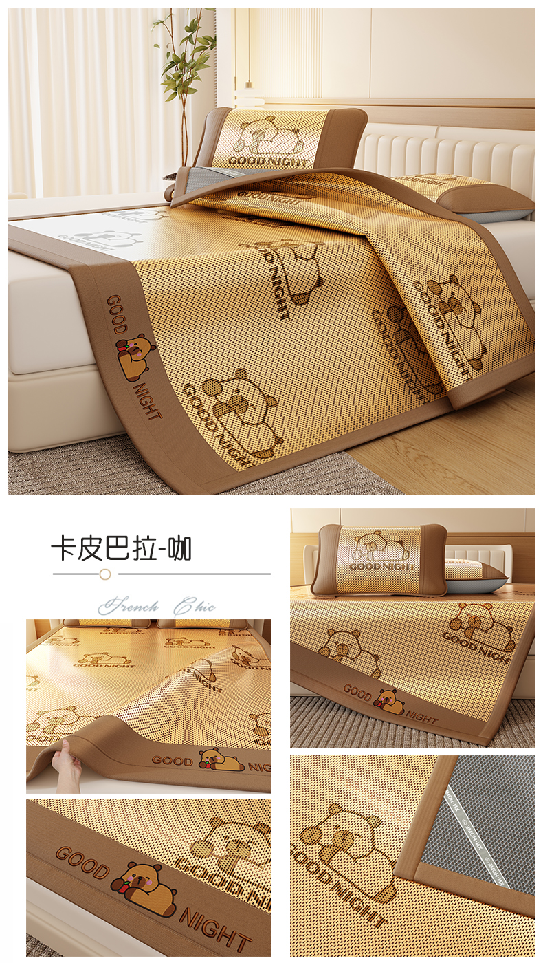 当前位置: 91家纺网 > 商品网购 > 床上用品 > 凉席 > 藤席 > 福来临家纺 2026新款卡皮巴拉小熊款冰藤刺绣凉感席席子凉席-床笠款 冰藤小熊-蓝-床笠款