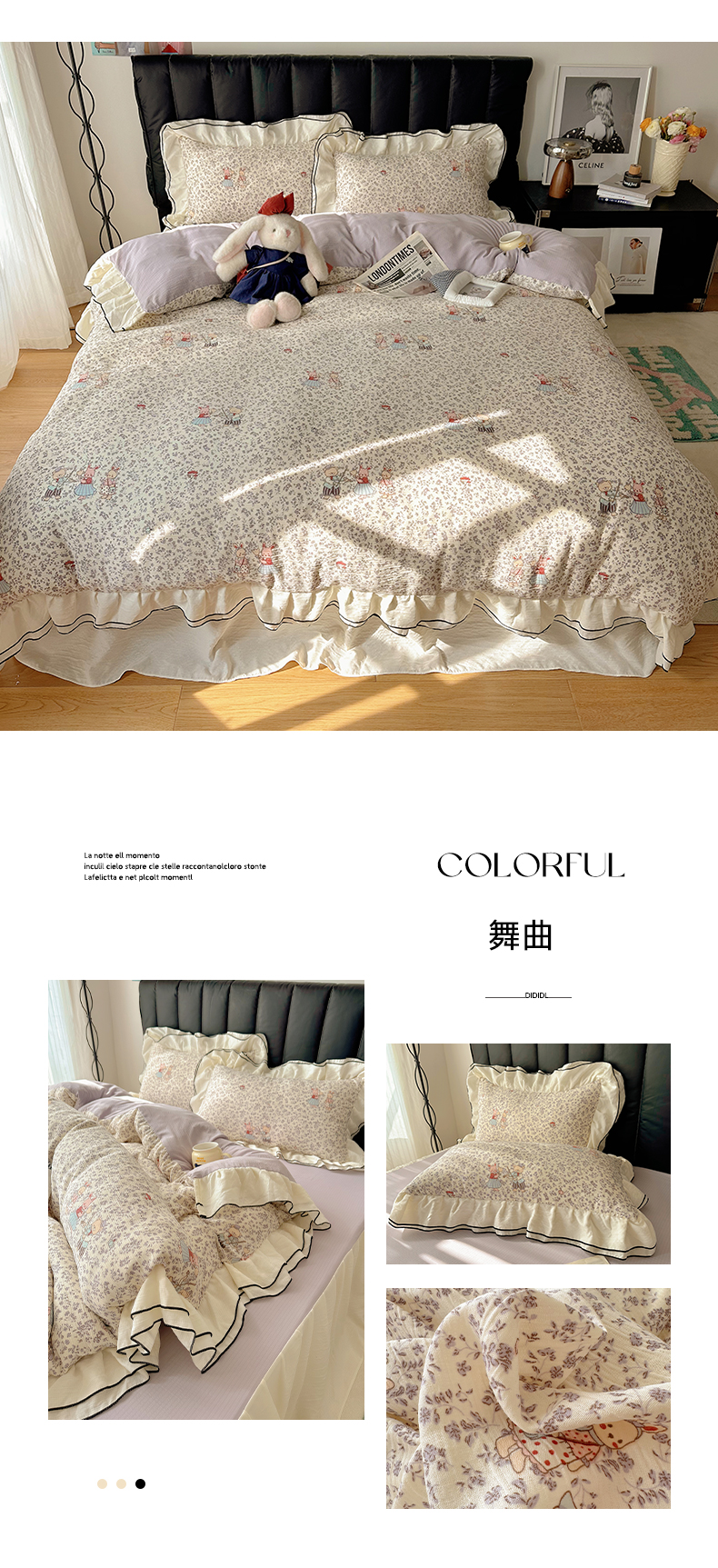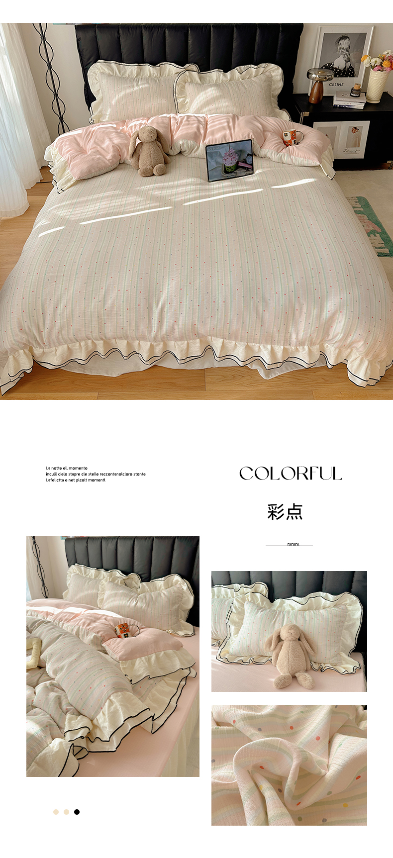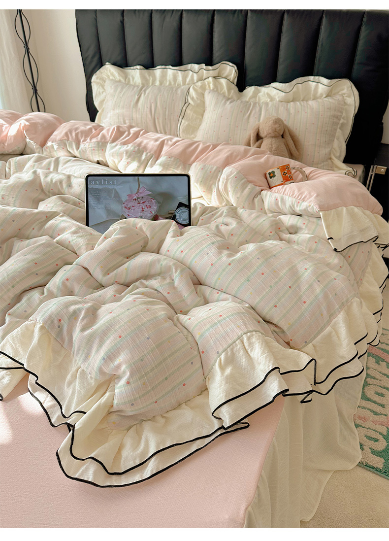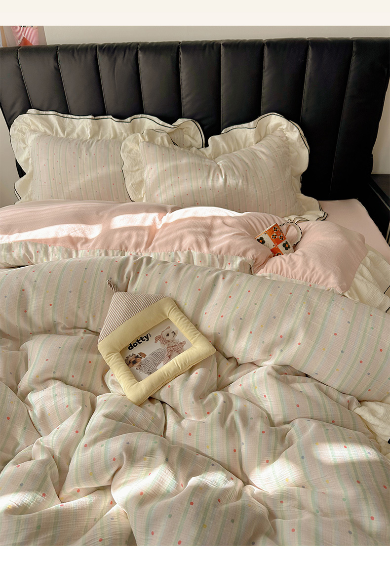 当前位置: 91家纺网 > 商品网购 > 床品套件 > 四件套 > 其它四件套 > 韩都家居 2026春夏新款双层纱皱皱纱韩系清新风四件套 彩点