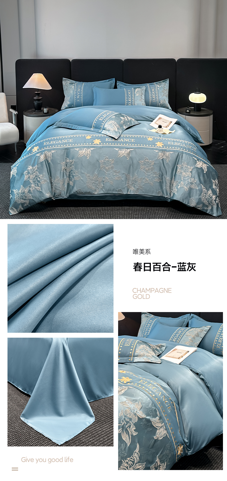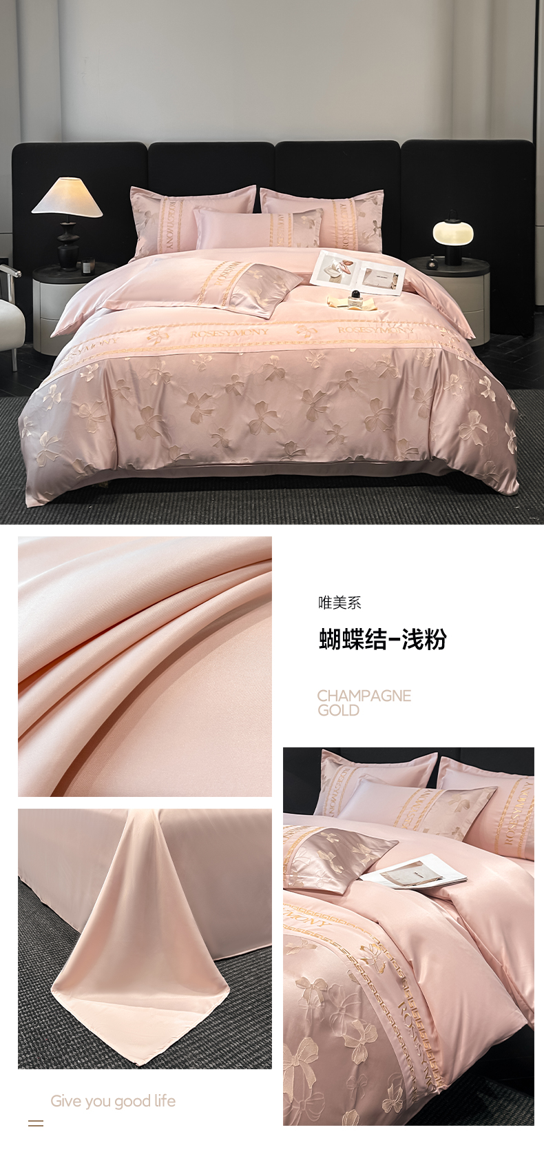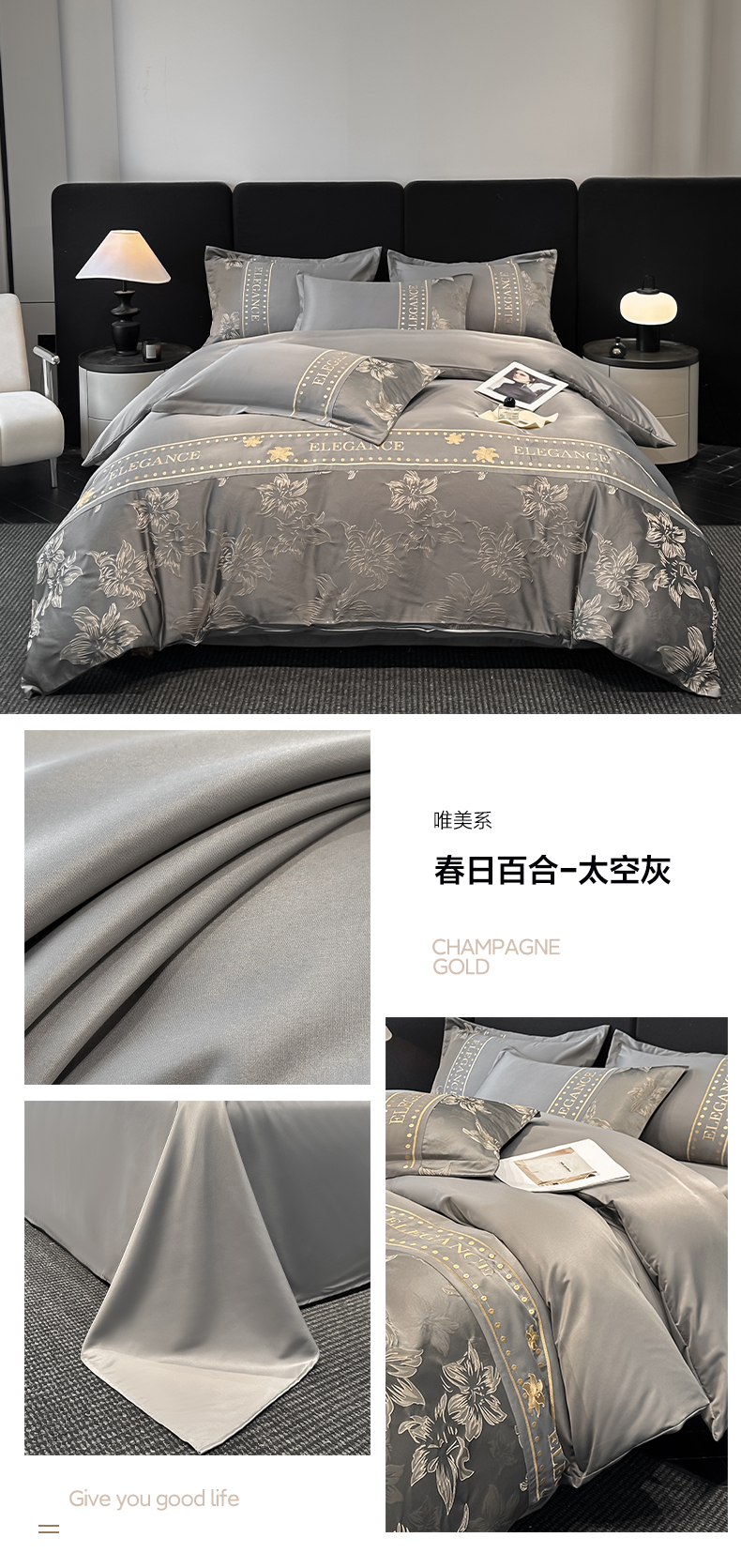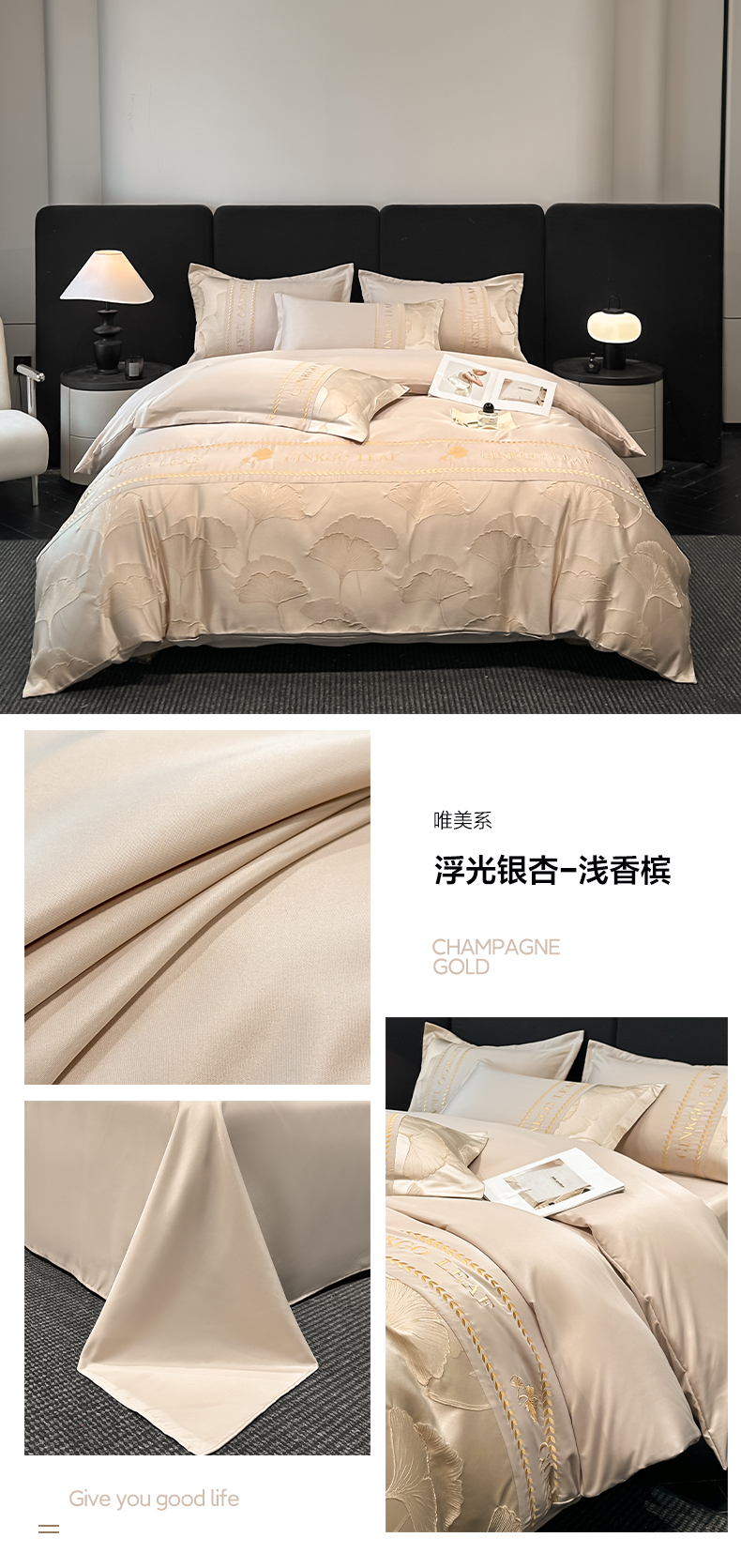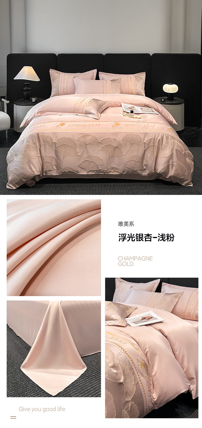 (总)宇航家纺 2026新款金丝立体浮雕提花水洗真丝天丝四件套,春日百合-浅粉,春日百合-蓝灰,春日百合-太空灰,浮光银杏-浅粉,浮光银杏-浅香槟,蝴蝶结-浅粉,蝴蝶结-深灰,蝴蝶结-香槟