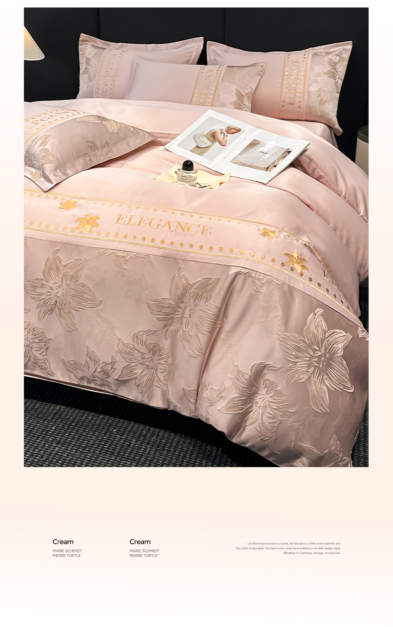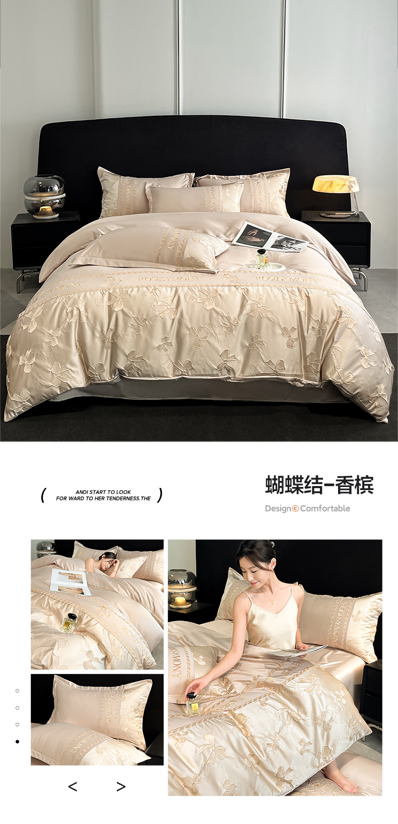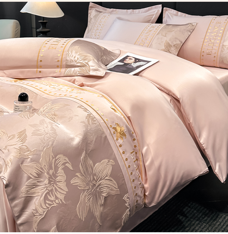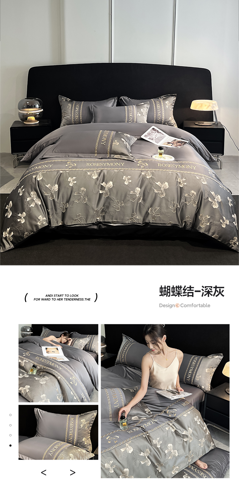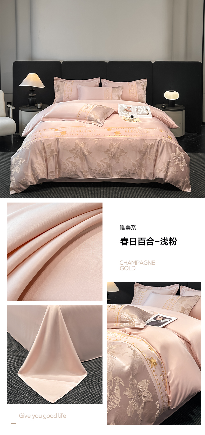 (总)宇航家纺 2026新款金丝立体浮雕提花水洗真丝天丝四件套,春日百合-浅粉,春日百合-蓝灰,春日百合-太空灰,浮光银杏-浅粉,浮光银杏-浅香槟,蝴蝶结-浅粉,蝴蝶结-深灰,蝴蝶结-香槟