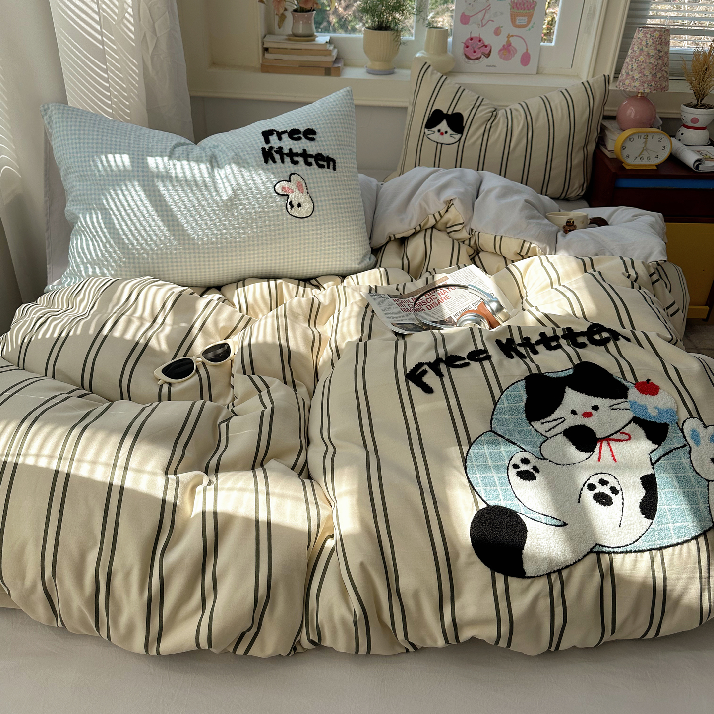 当前位置: 91家纺网 > 商品网购 > 床品套件 > 四件套 > 其它四件套 > 顾里家纺 2026春夏新款ins可爱风云朵毛巾绣四件套(会员-3元 床笠定制不退换0 木马猫咪