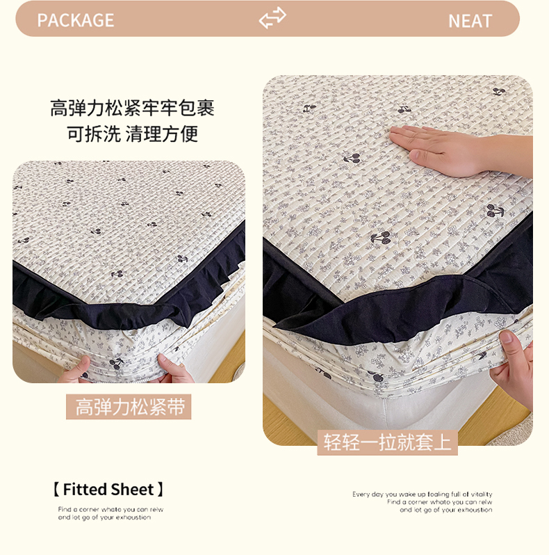 商品名称:(总)布柔 2026春夏新款全棉印花夹棉单床笠床垫保护套罩 床笠单件
