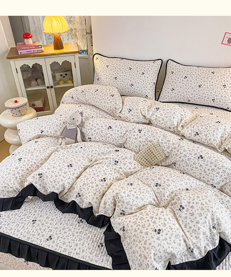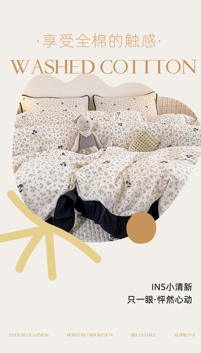 (总)布柔 2026春夏新款13070纯棉全棉印花绣花床笠三件套四件套,曲奇粉,曲奇黄,曲奇蓝
